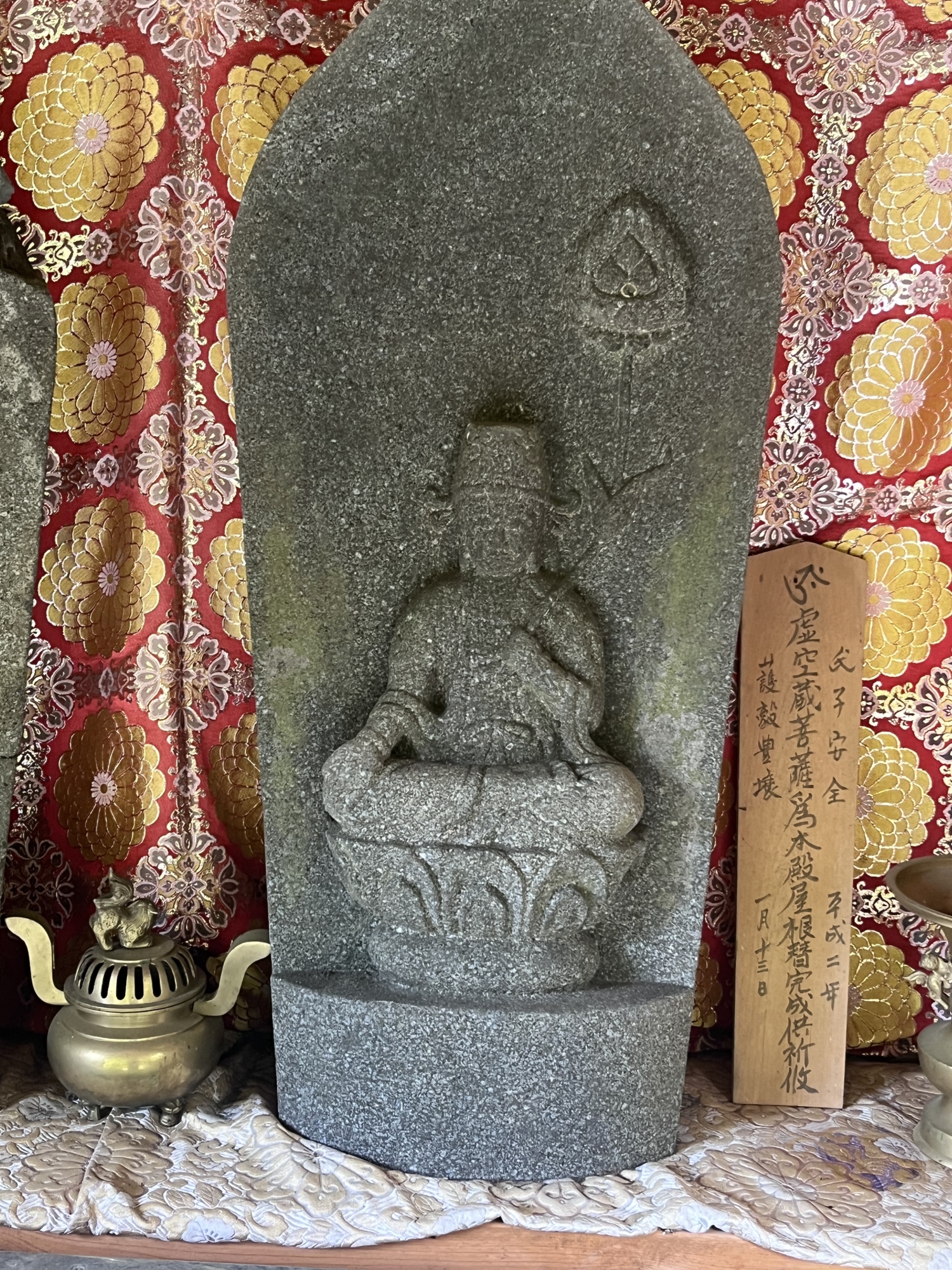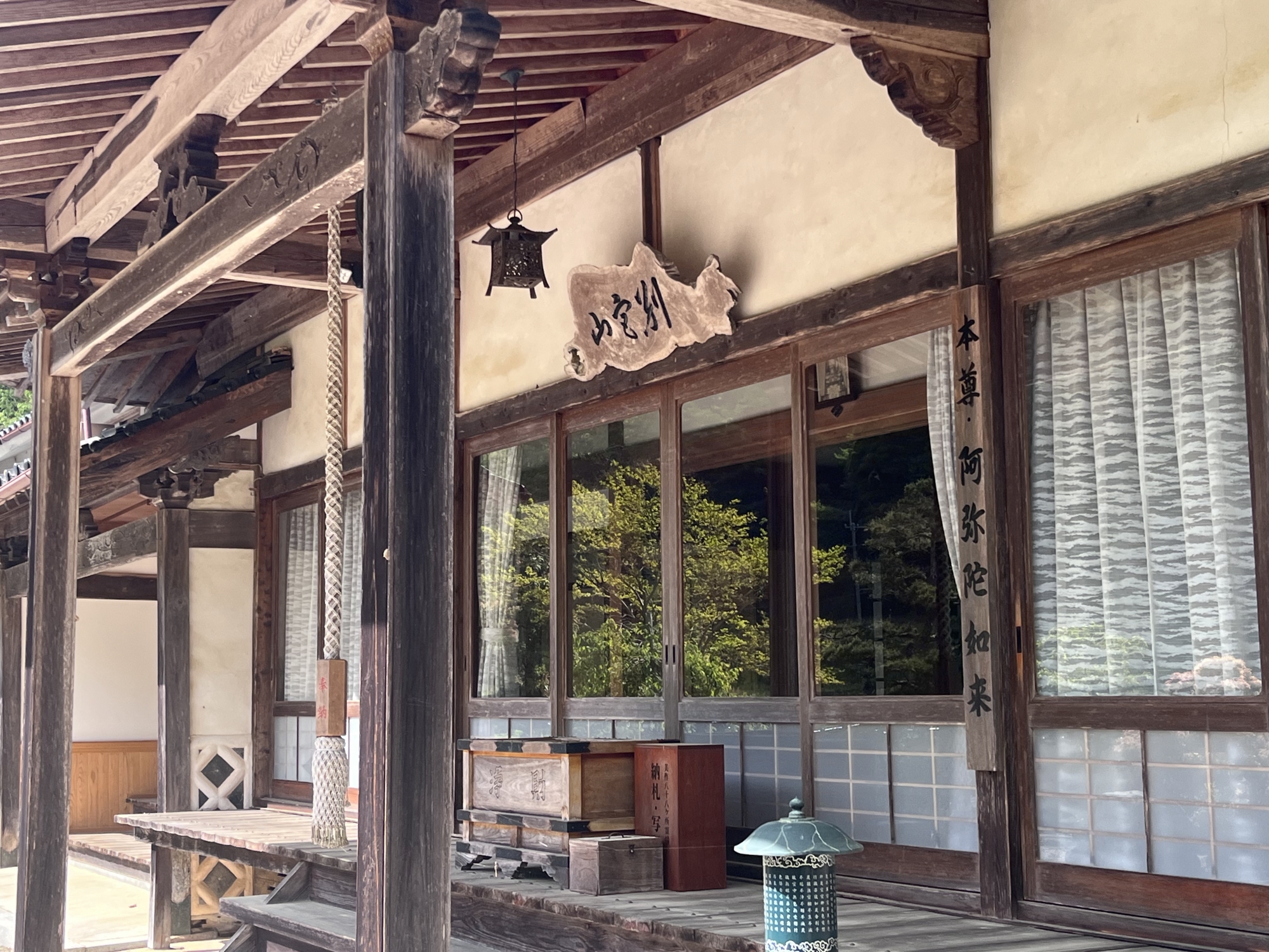 【本堂宮殿には本尊阿弥陀如来、両脇仏様に弘法大師、地蔵菩薩が厨子にお奉りされています。他に十三佛尊が厨子にお奉りされています。】
