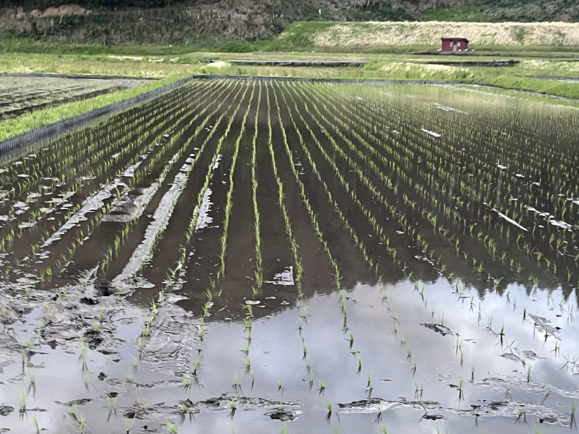 田圃も青空を映し出しています.