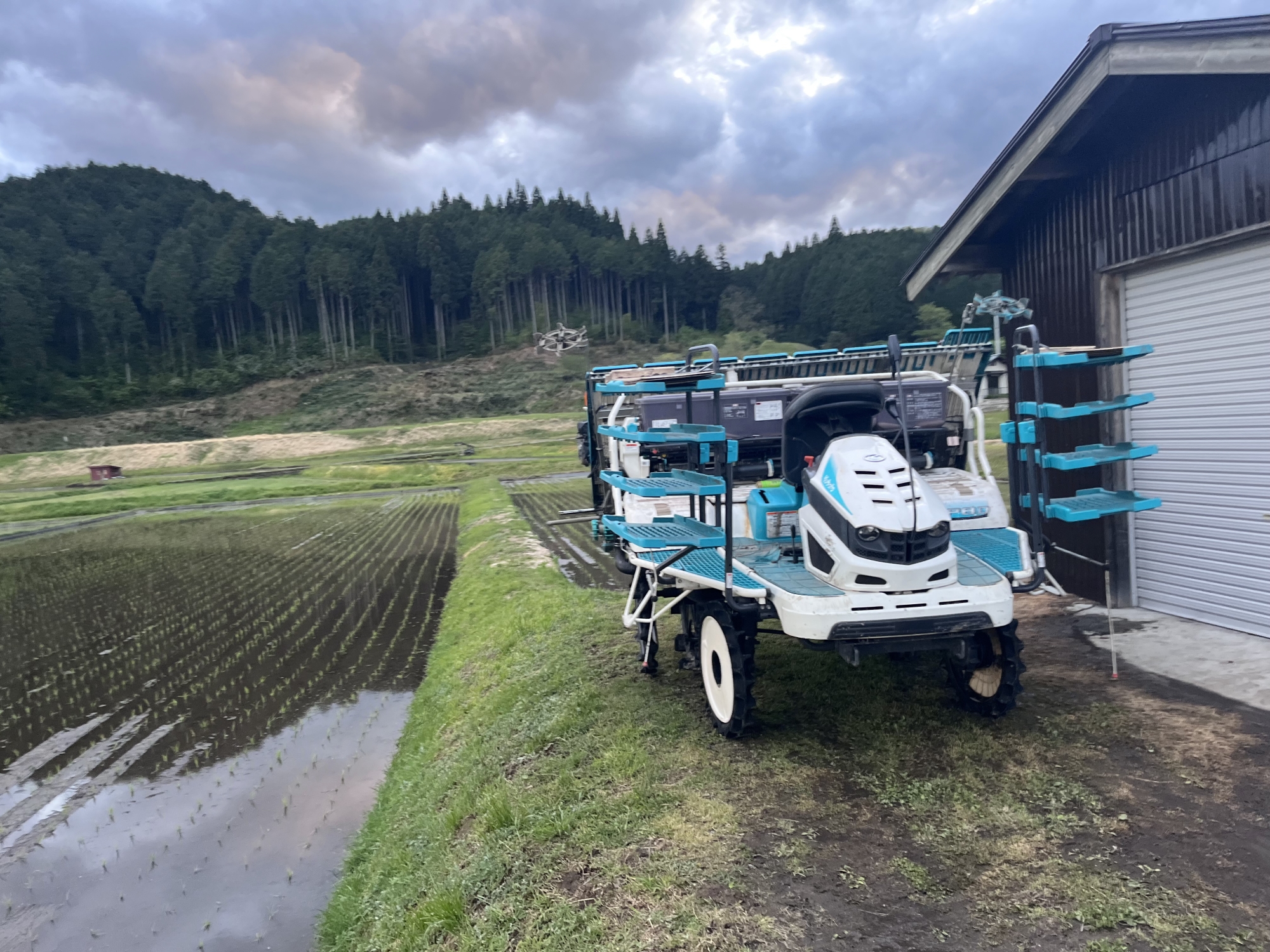 お向かいのIさん……地区内のSさんの田植えが始まっているみたい.
