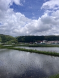 さて、県南へ……向こうから「まにわくん」、ありがとうございます、いつも.