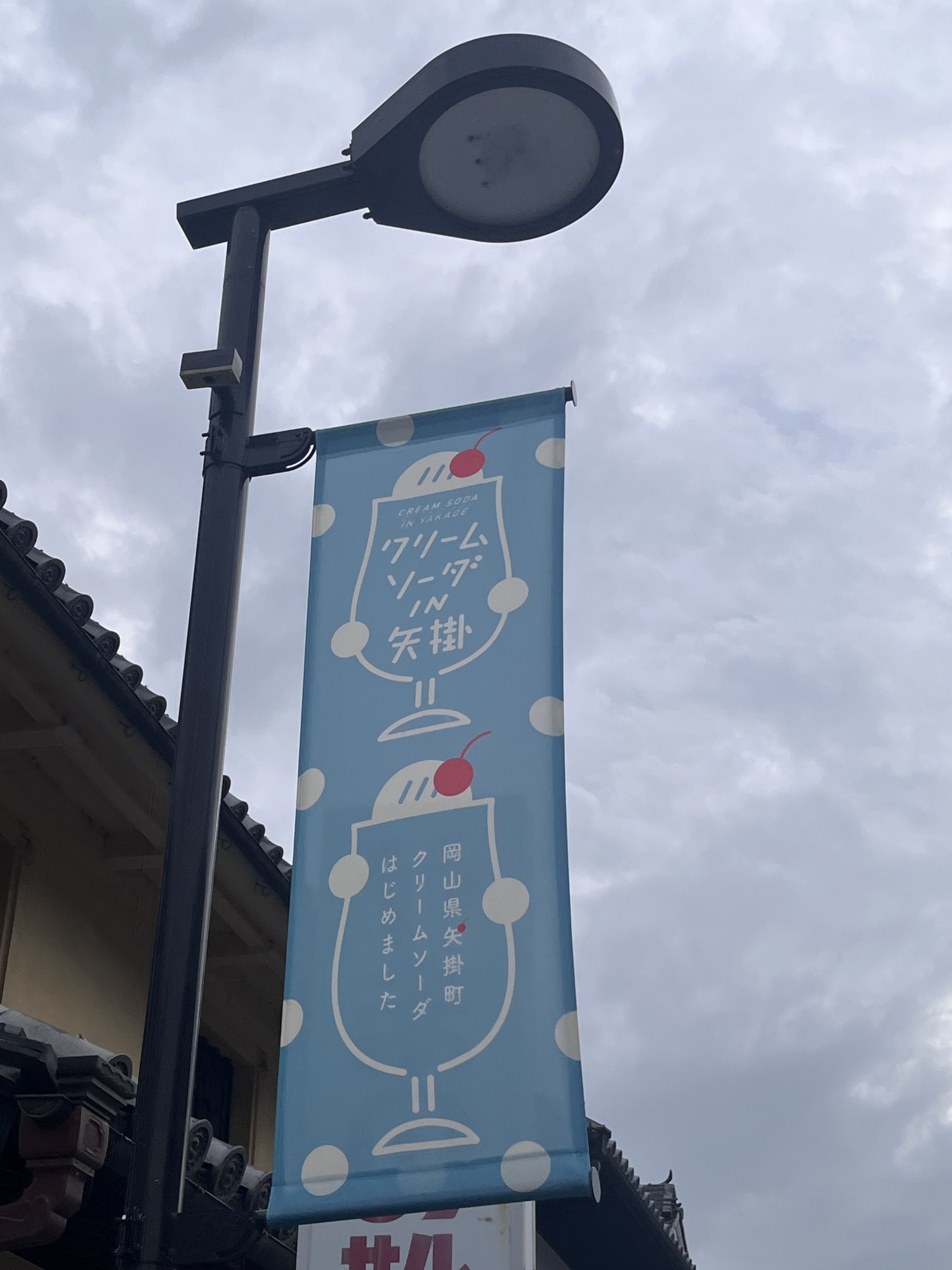 今、矢掛は町あげて「クリームソーダ」推し!! パッションフルーツ・クリームソーダを頂戴しました.