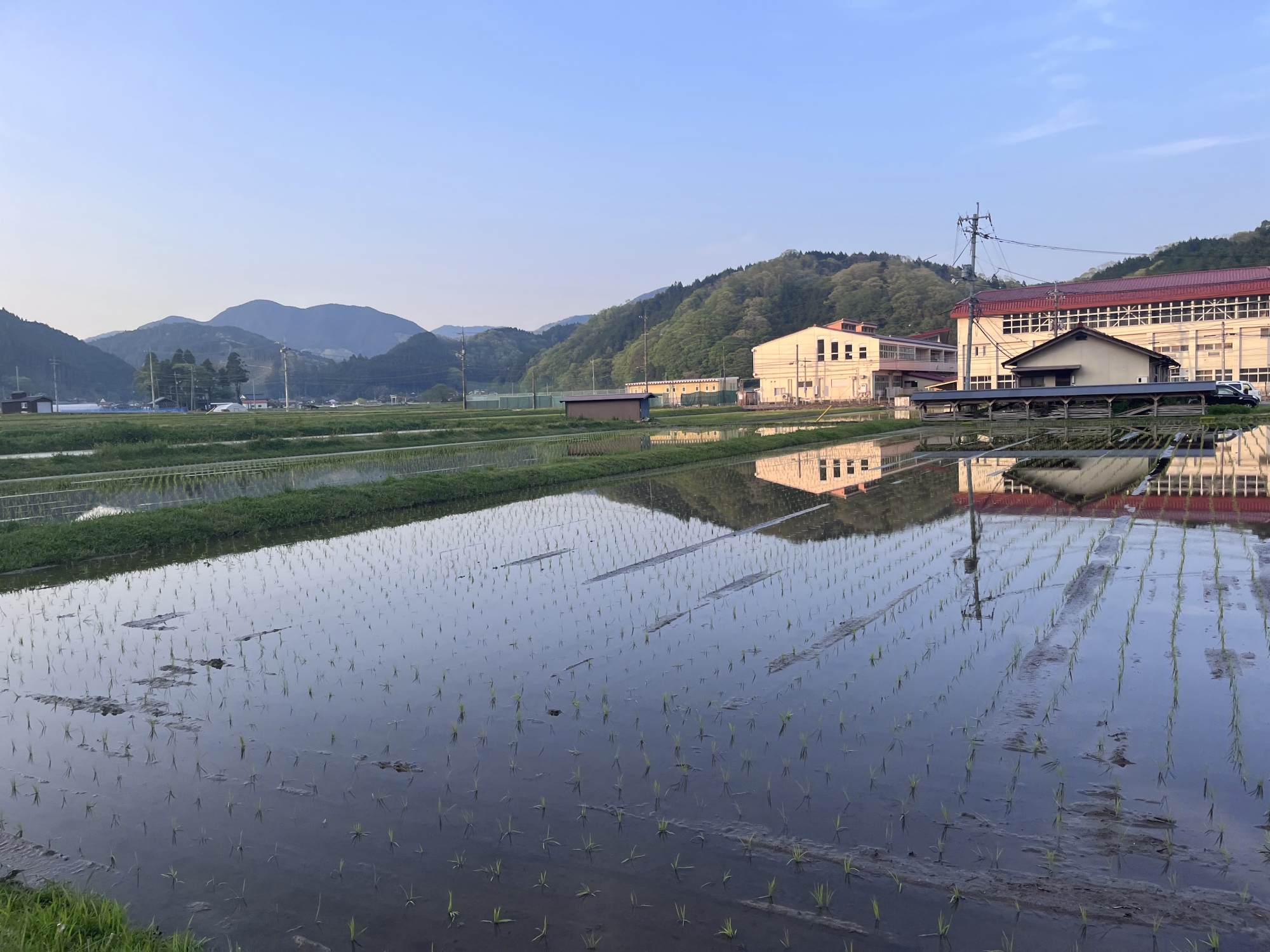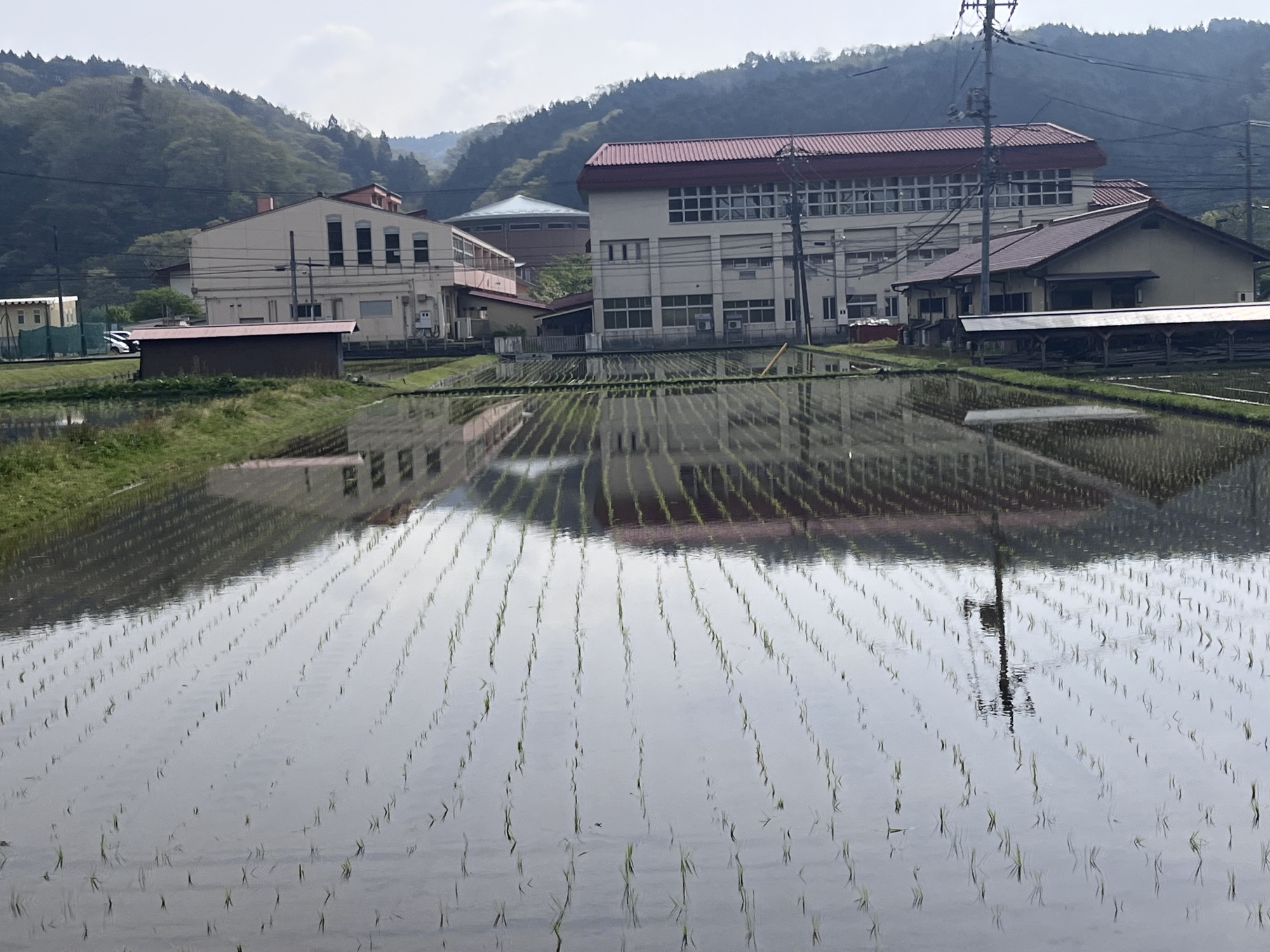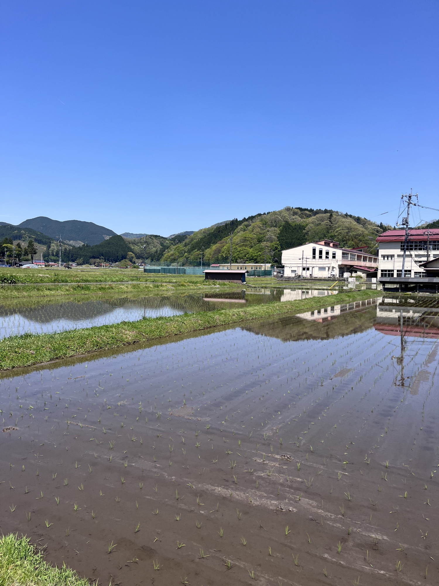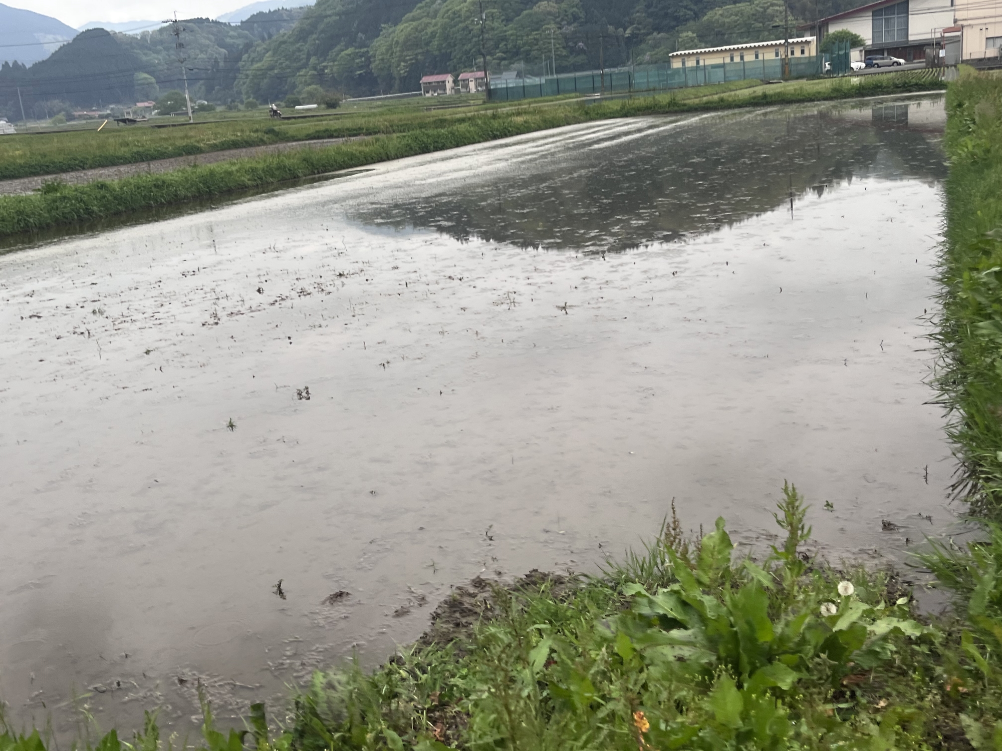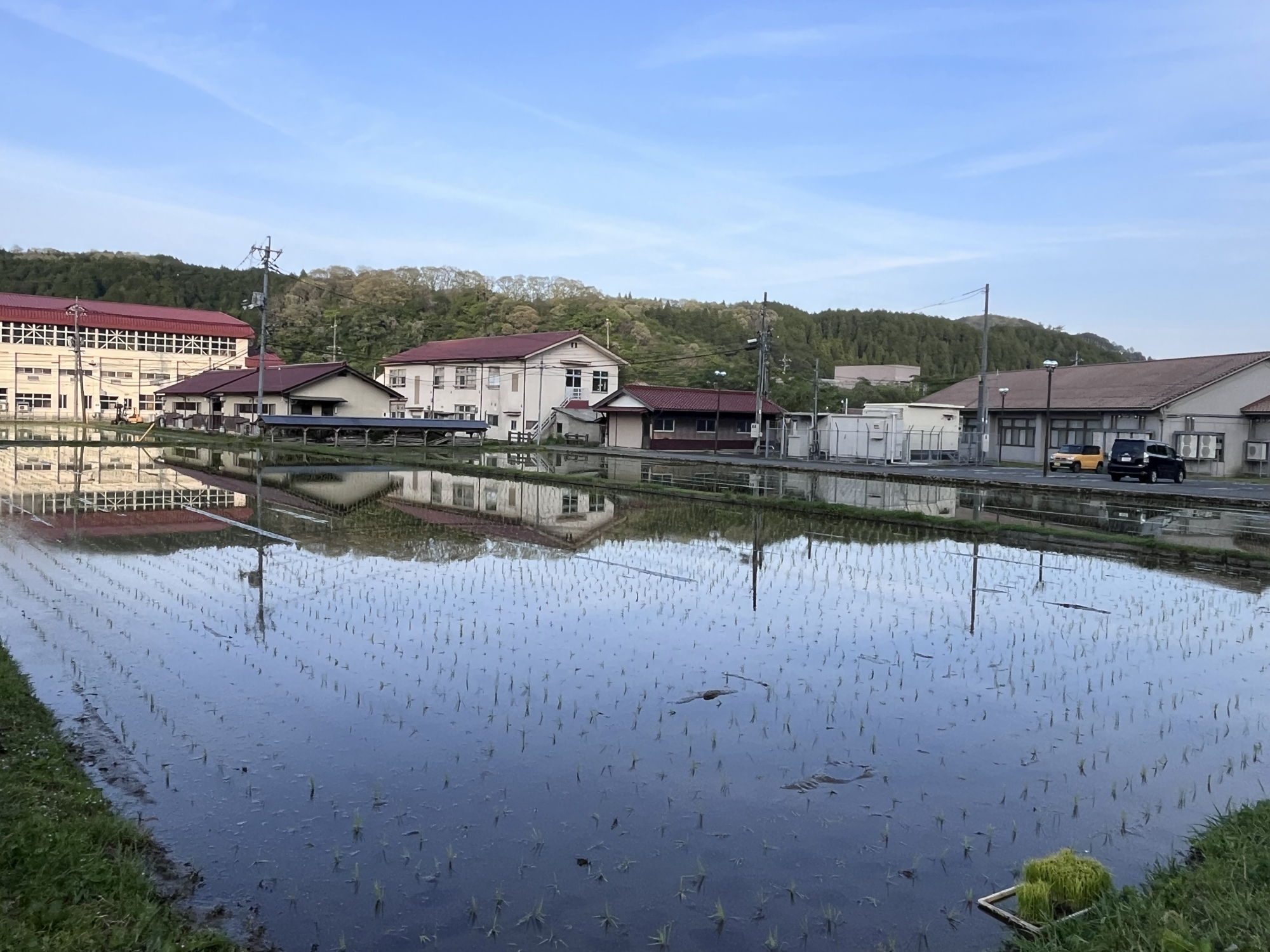 小学校の田圃は……少しだけ終わってて、まだ、苗が残ってて……岳ねんのグループで少しずつするのかな??