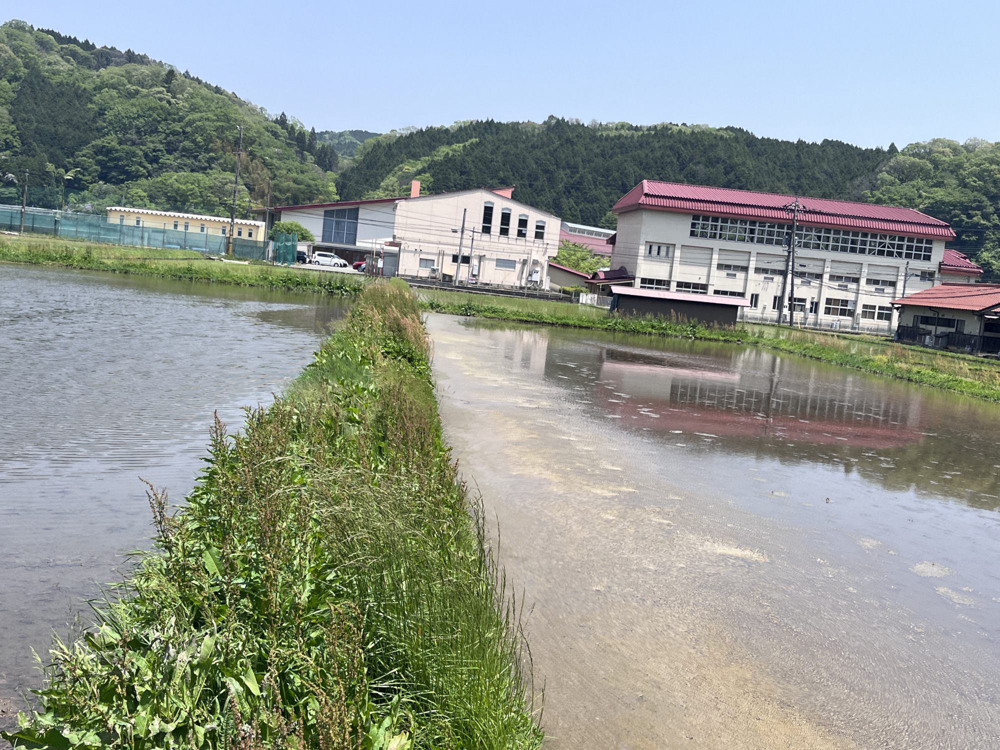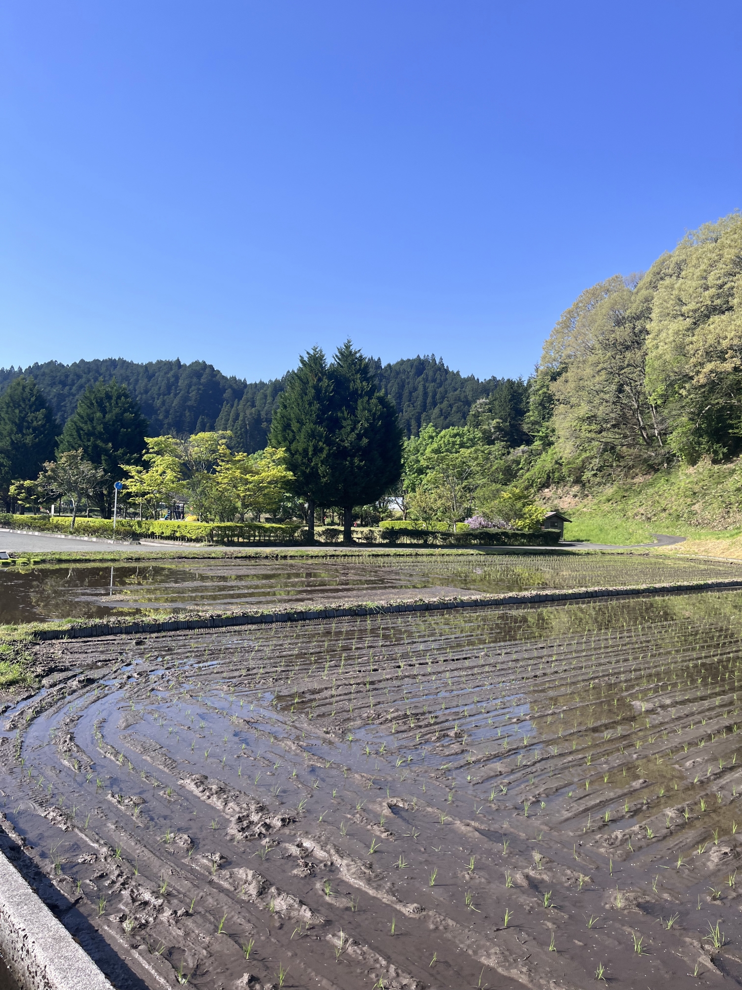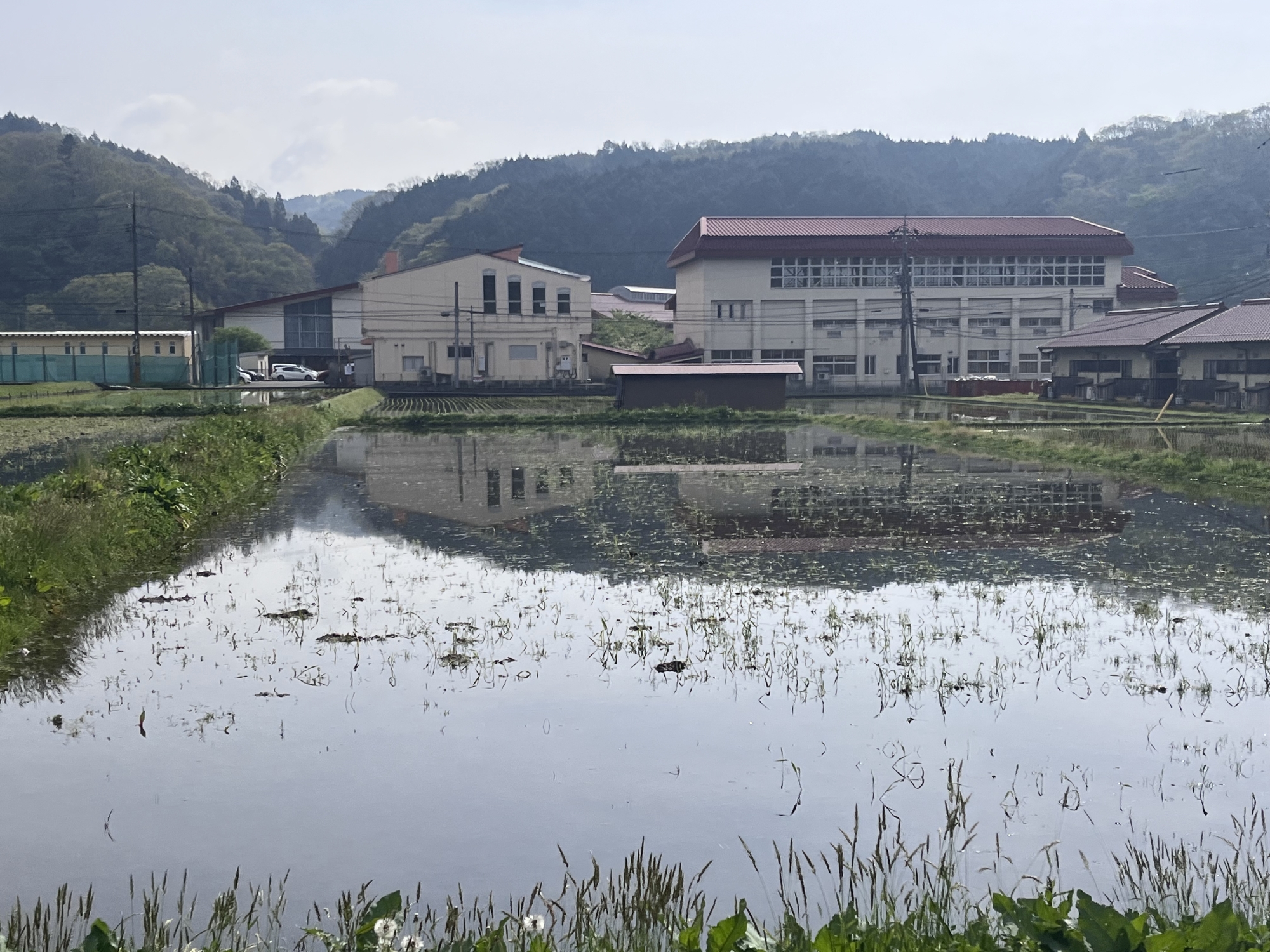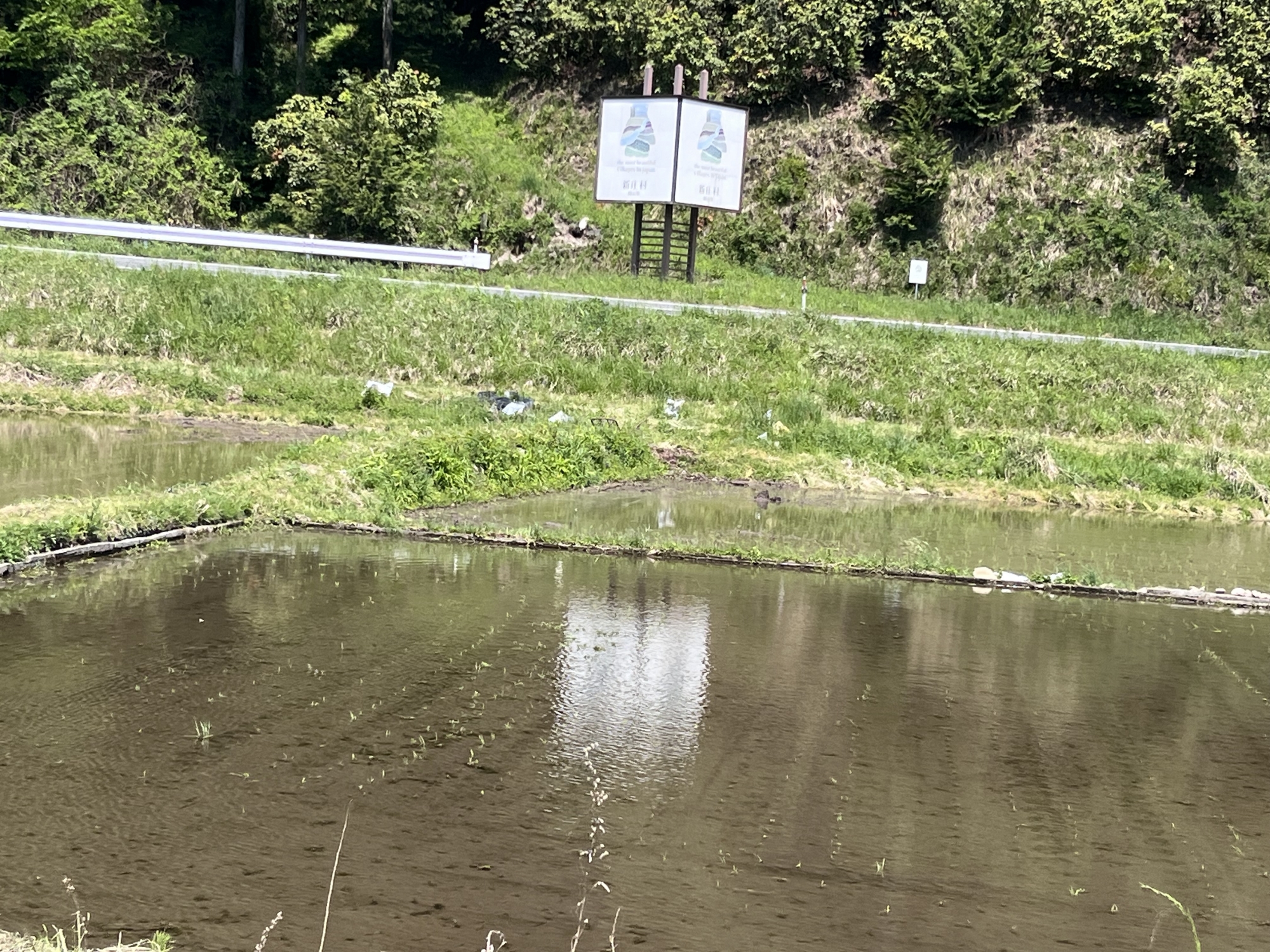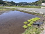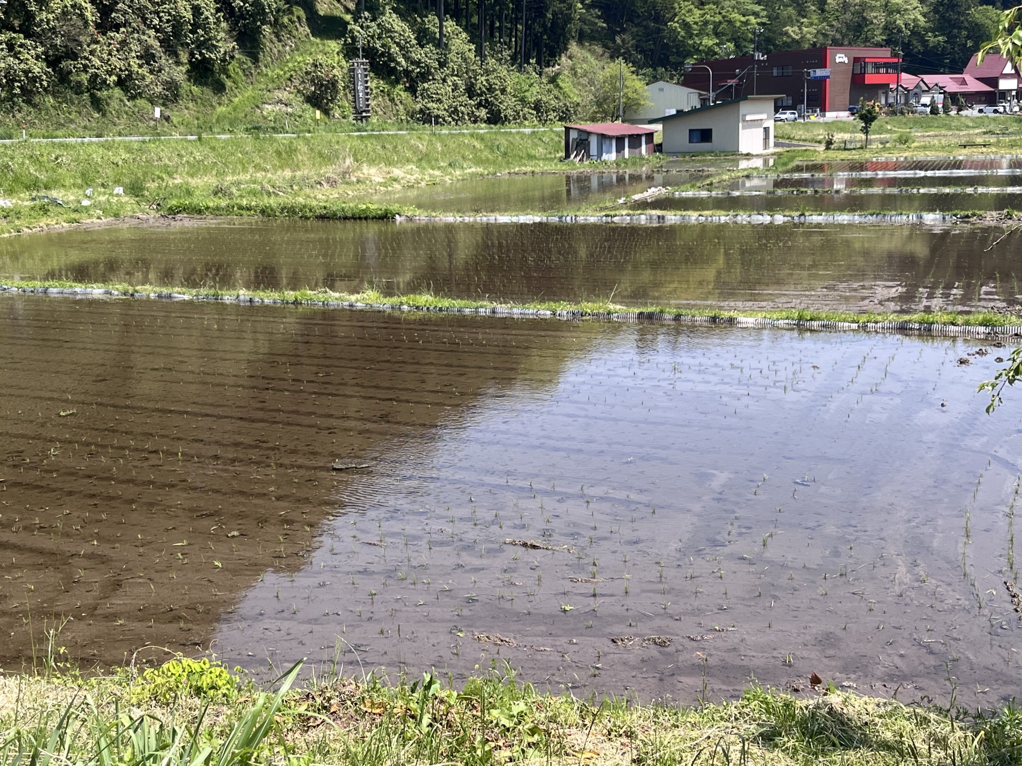 小学校の田圃は……少しだけ終わってて、まだ、苗が残ってて……岳ねんのグループで少しずつするのかな??