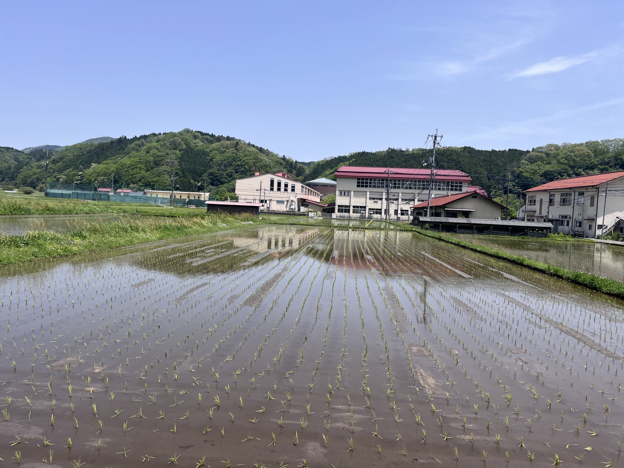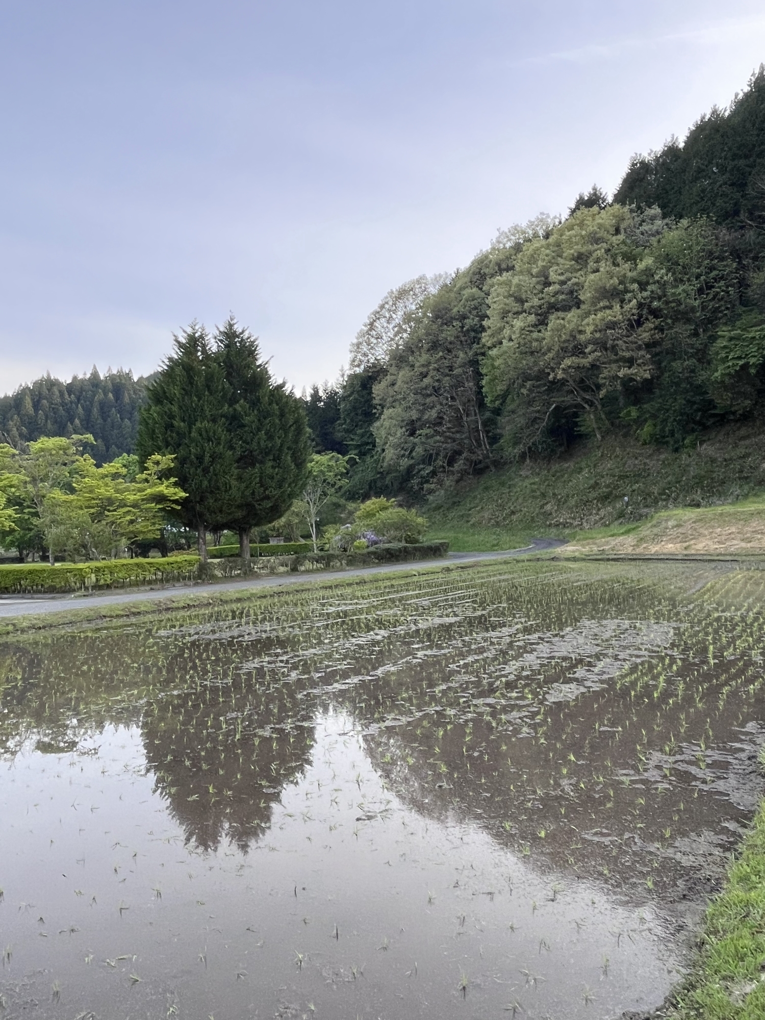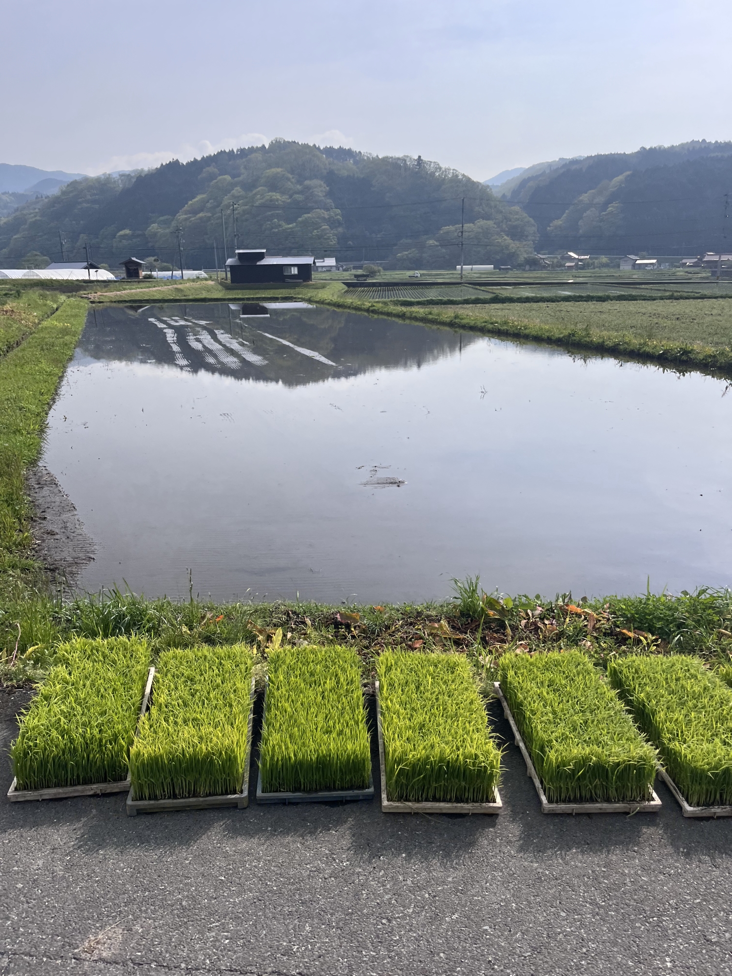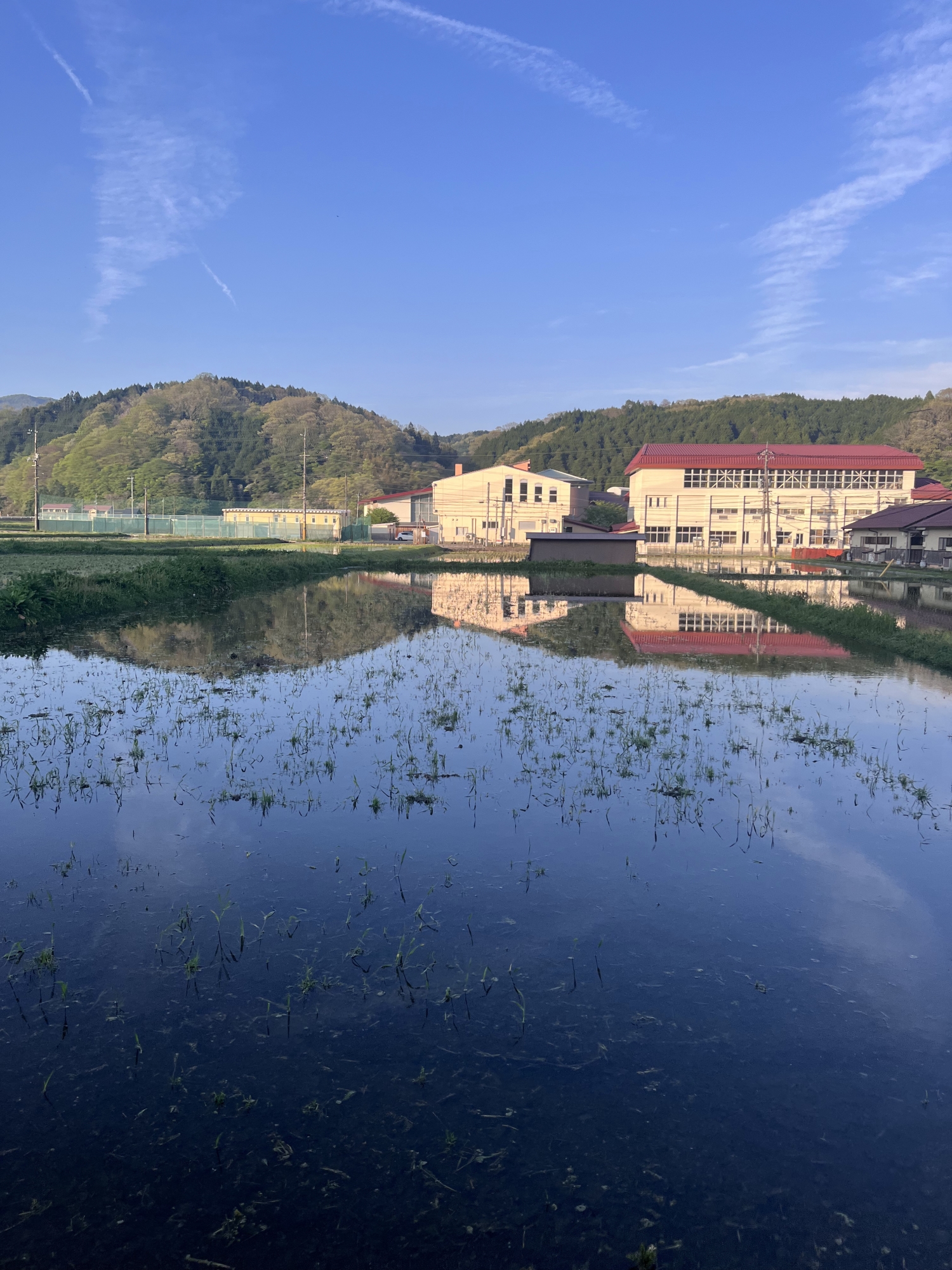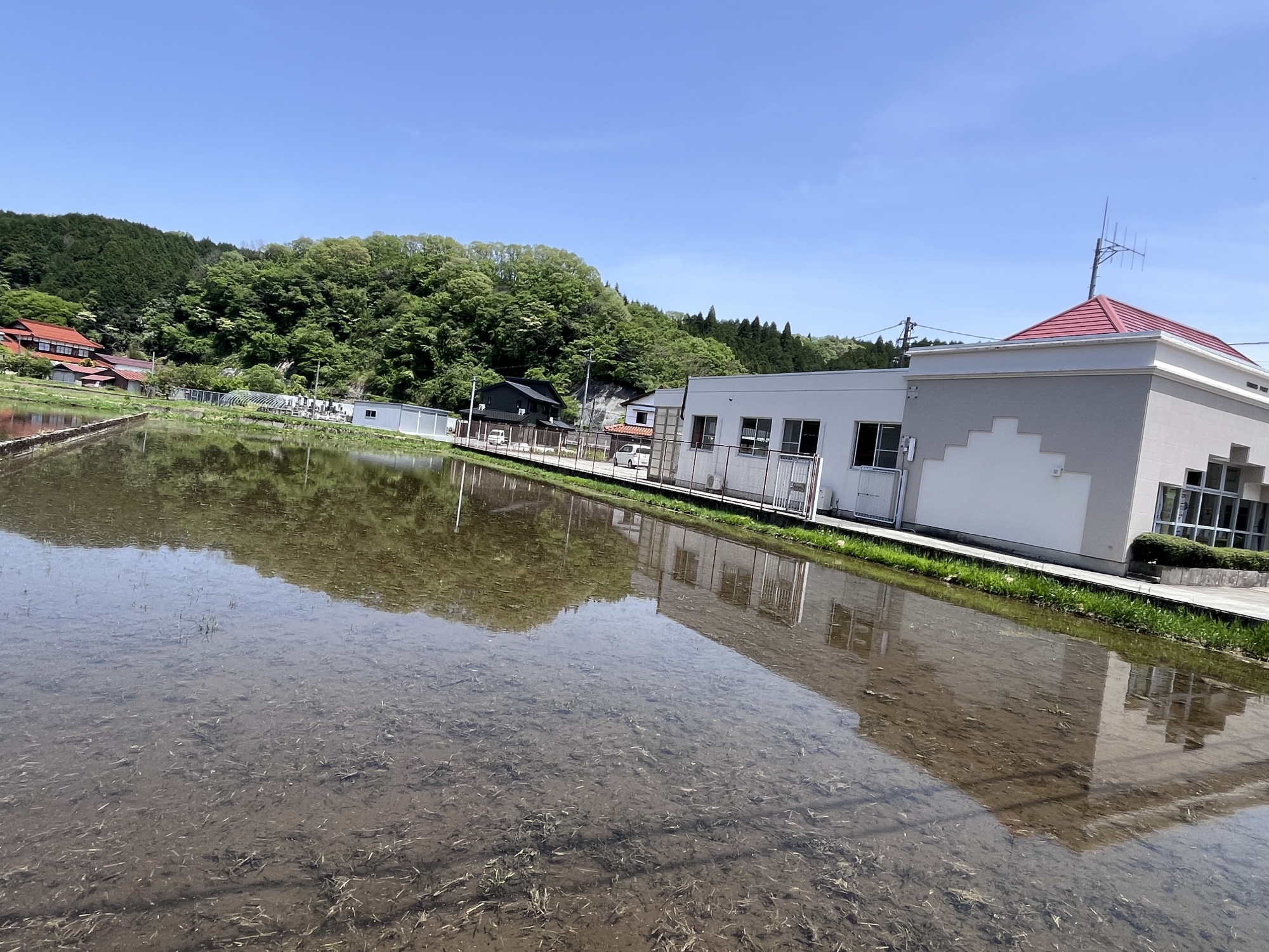 小学校の田圃は……少しだけ終わってて、まだ、苗が残ってて……岳ねんのグループで少しずつするのかな??