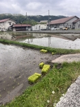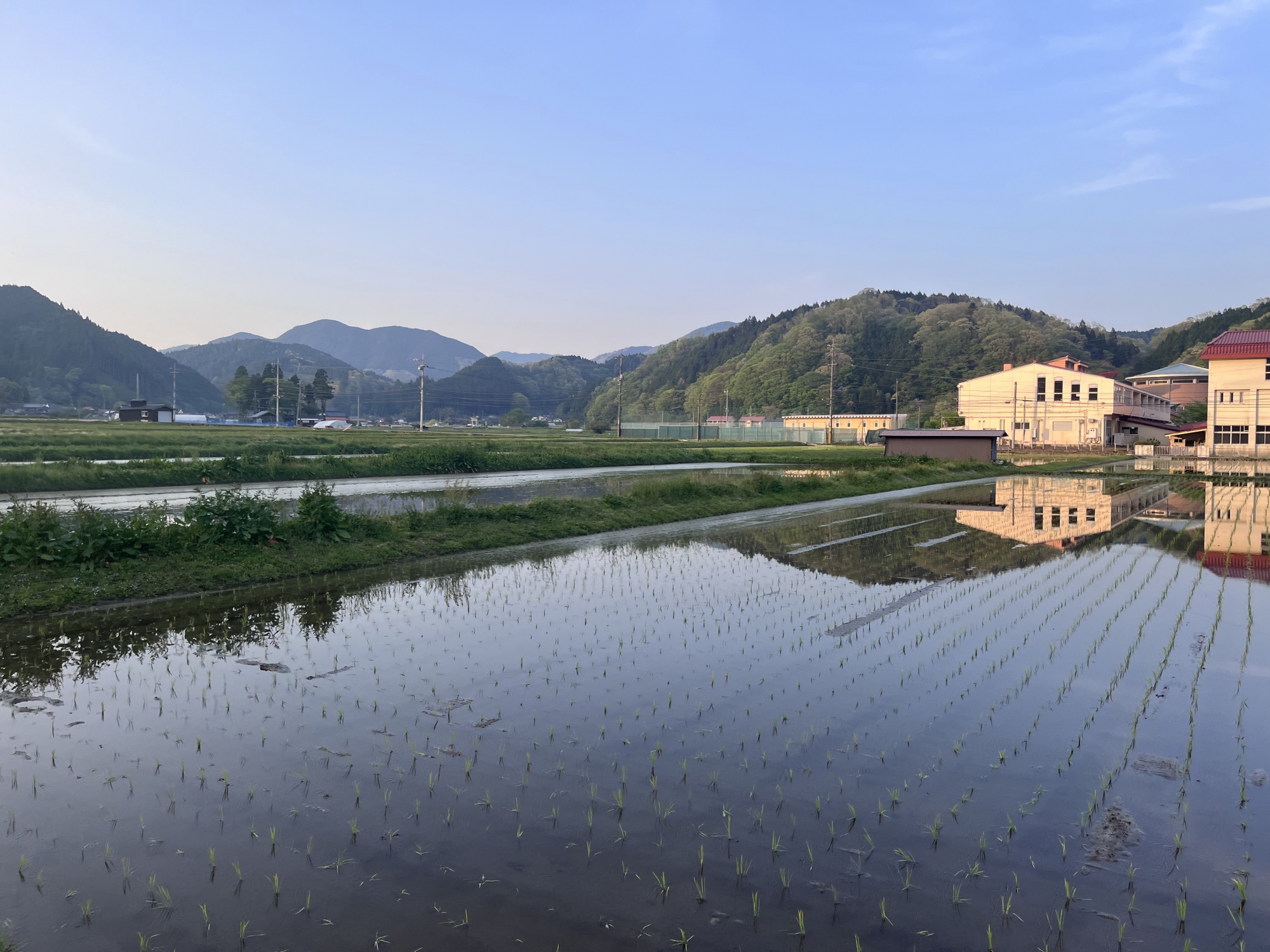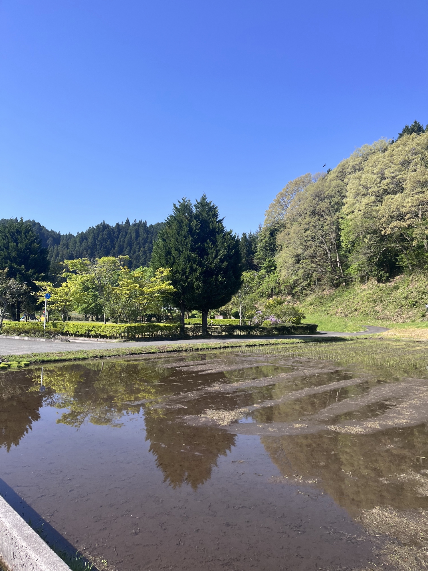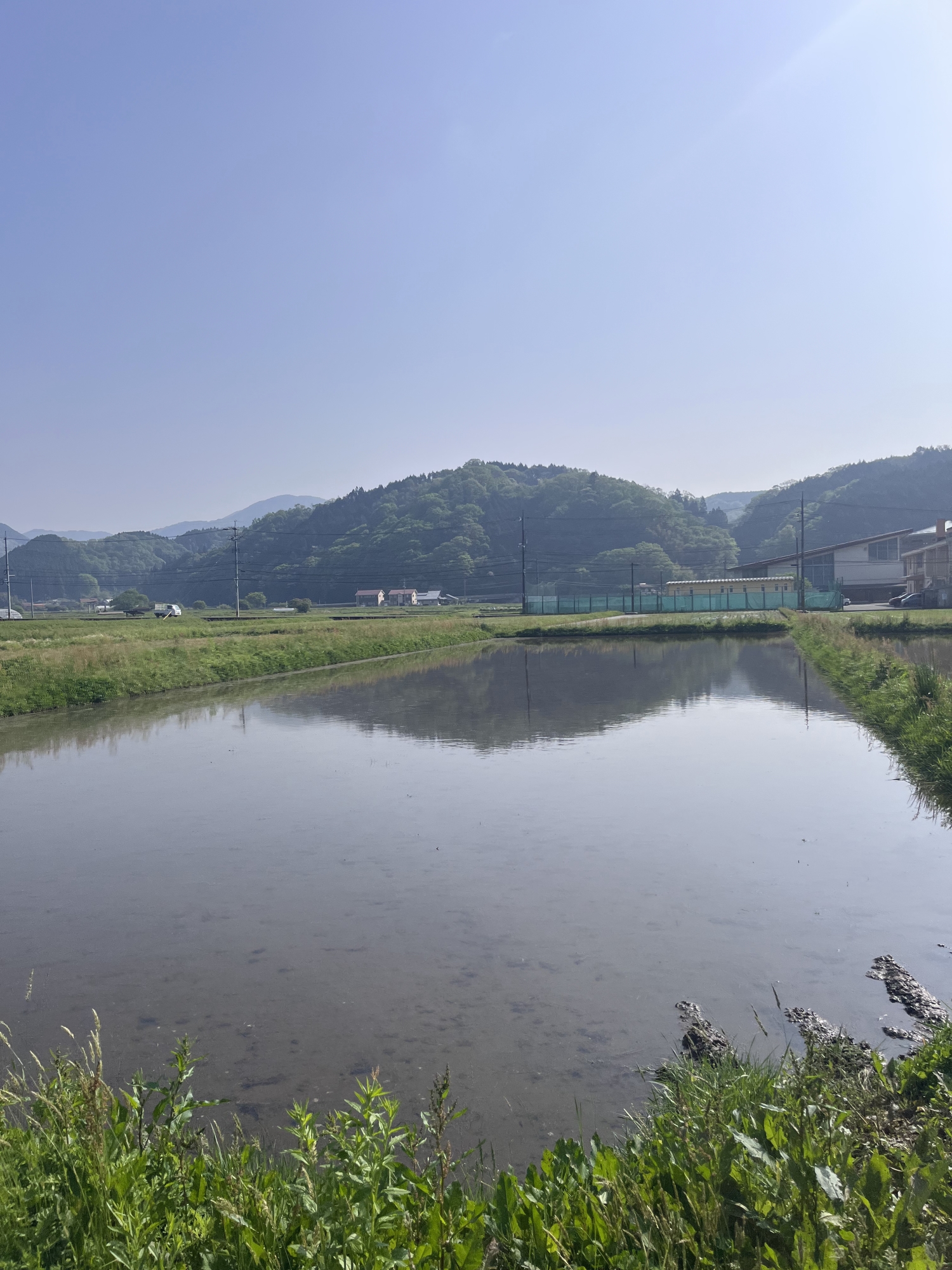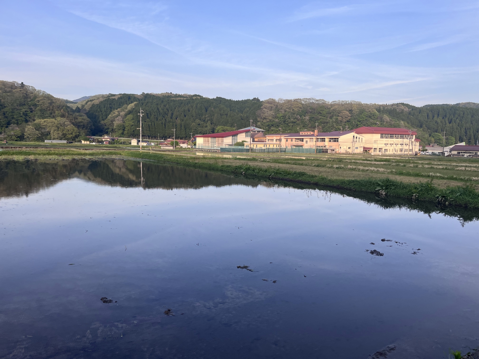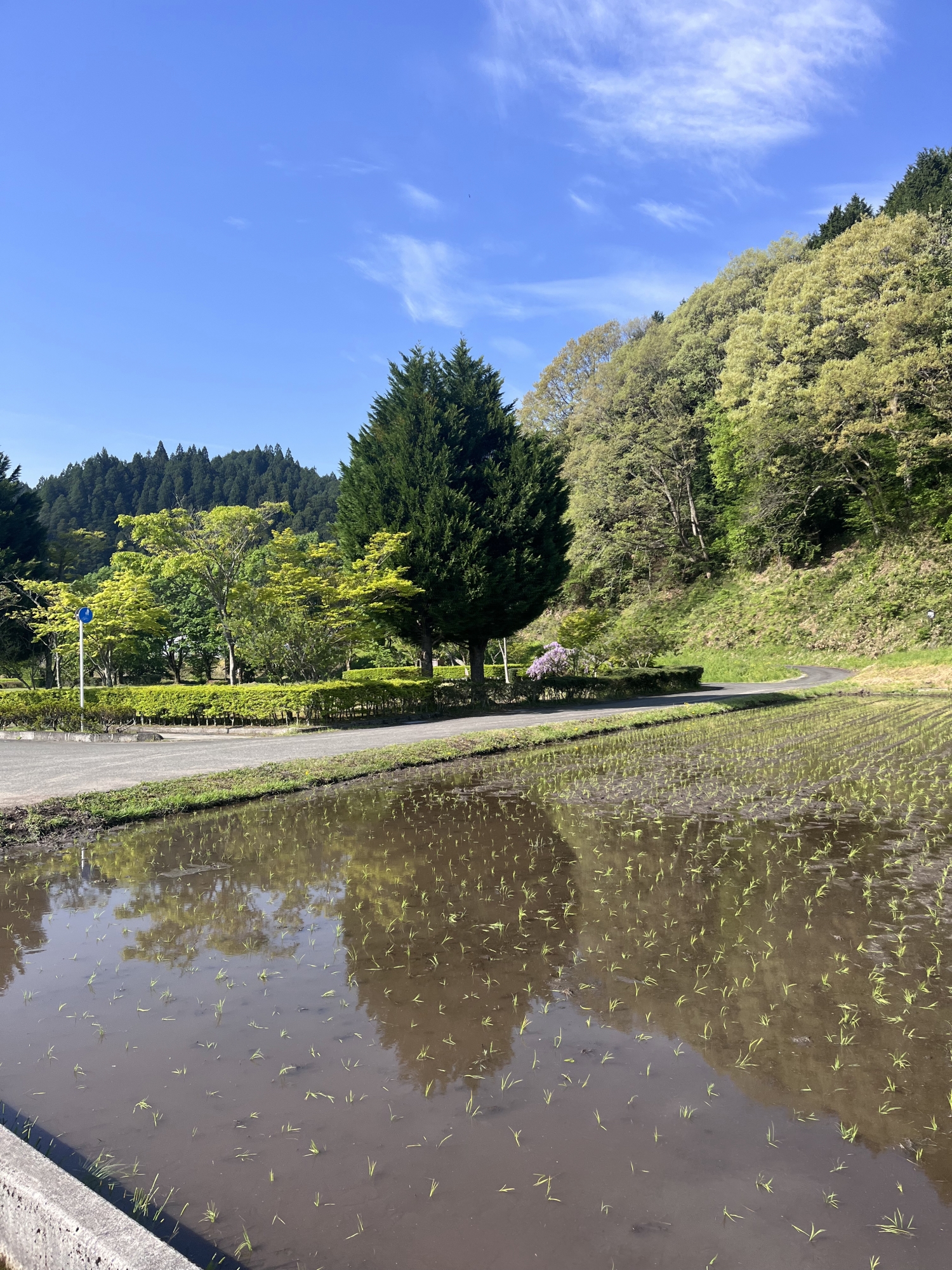 小学校の田圃は……少しだけ終わってて、まだ、苗が残ってて……岳ねんのグループで少しずつするのかな??