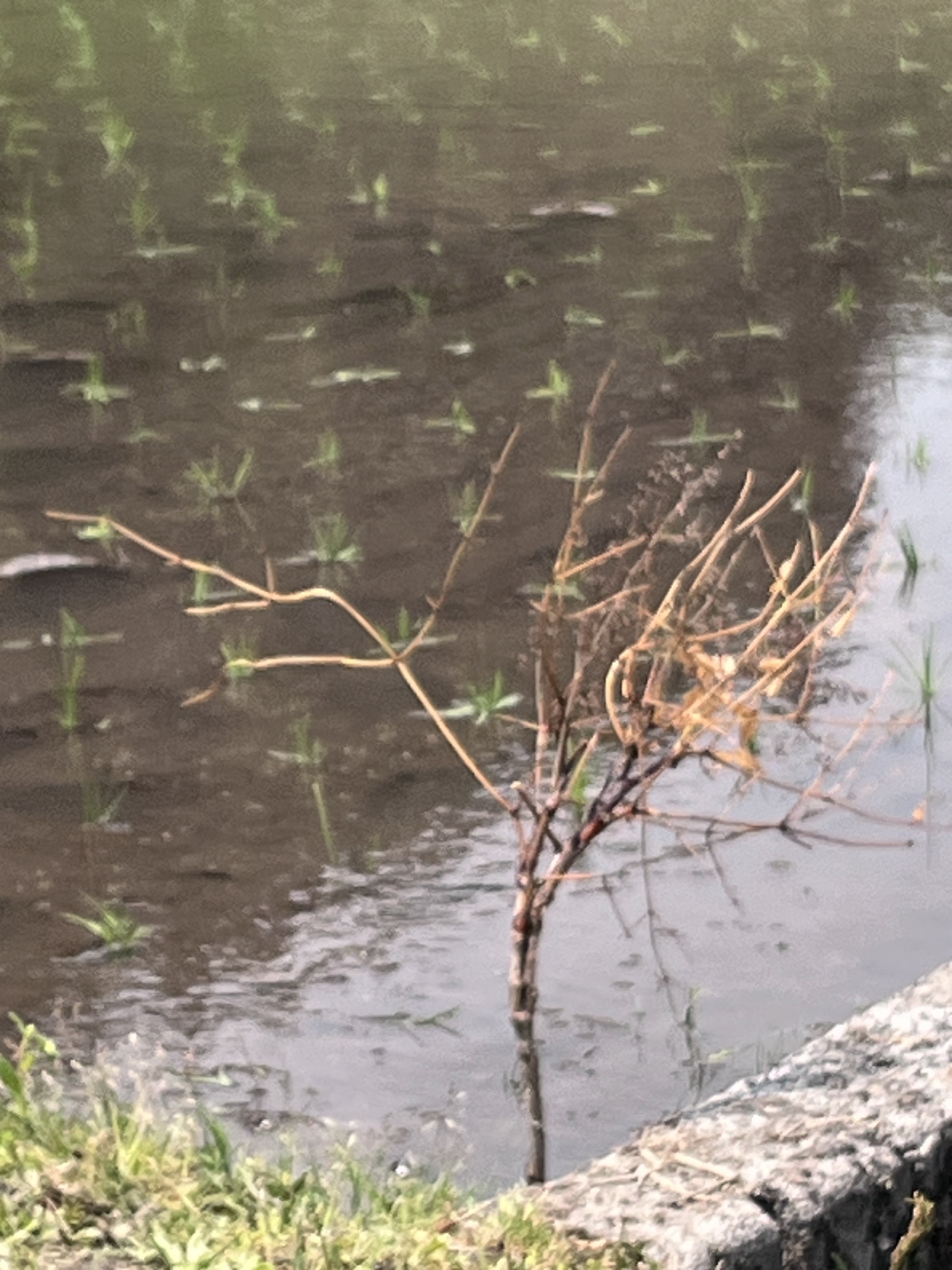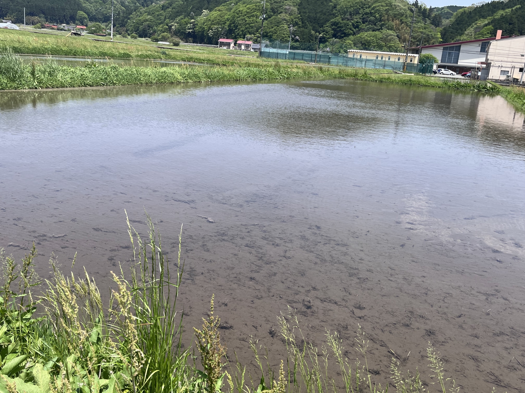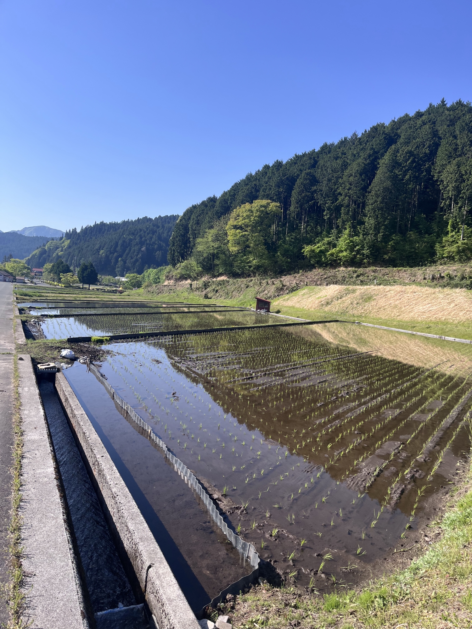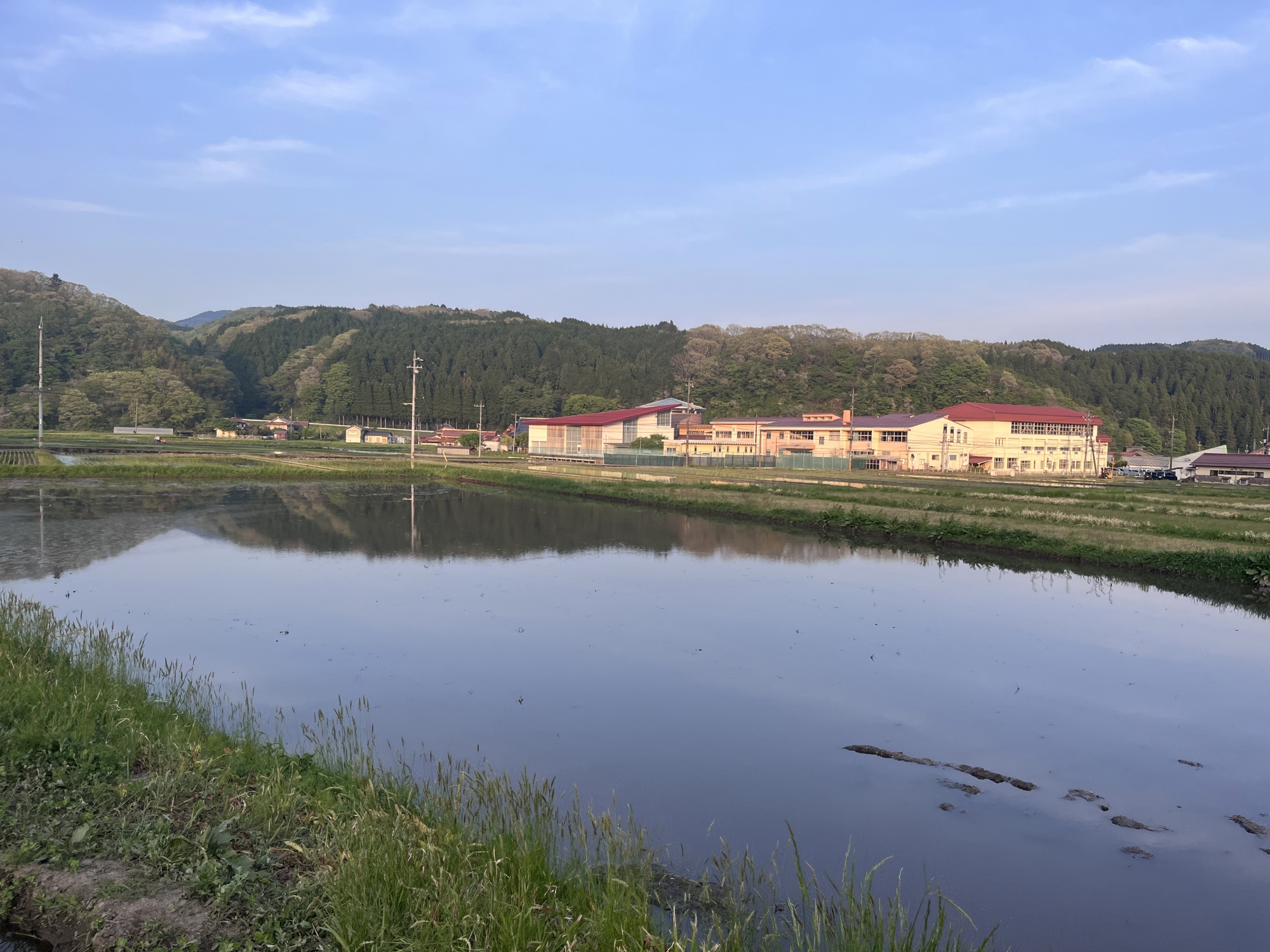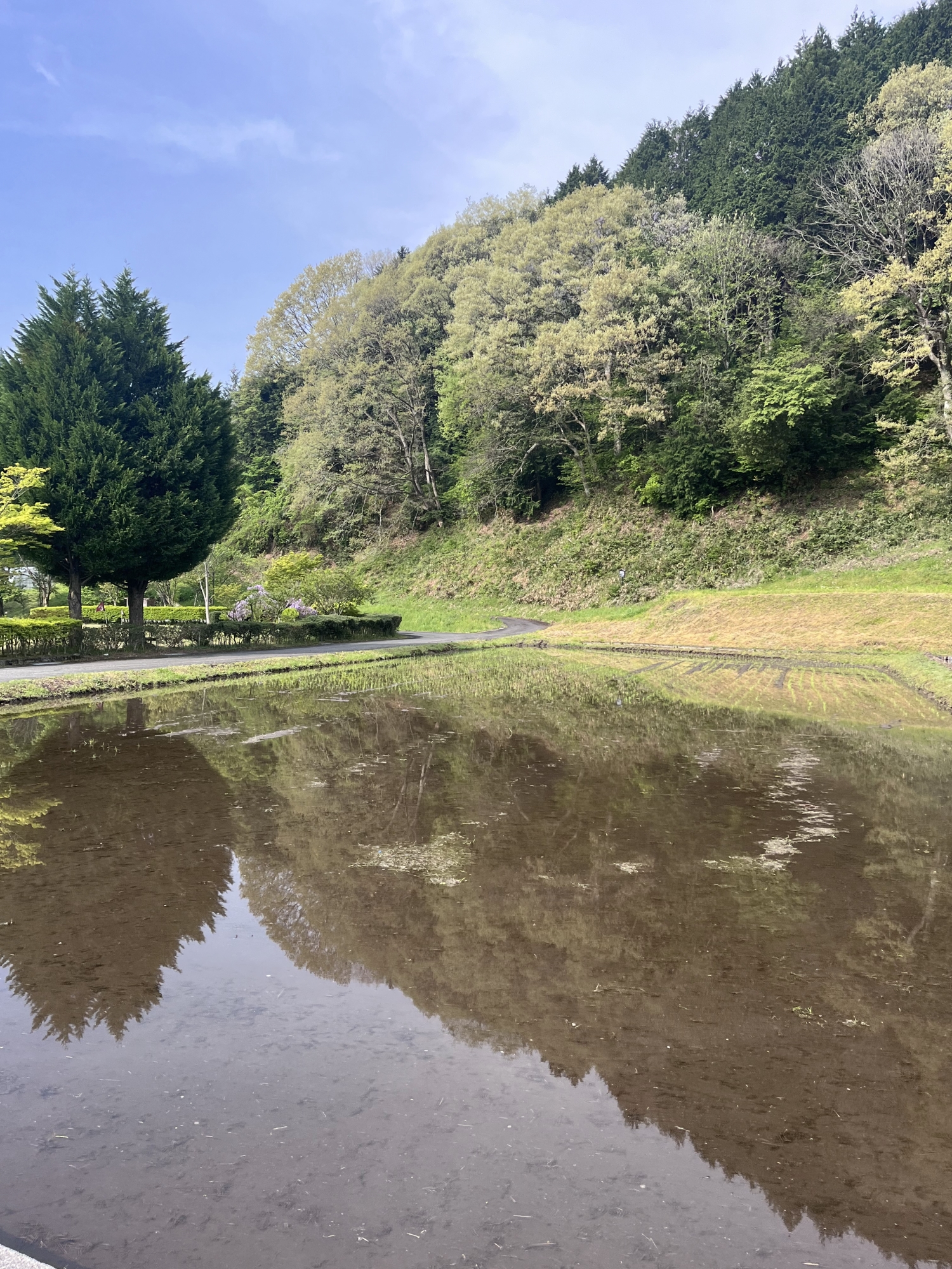 小学校の田圃は……少しだけ終わってて、まだ、苗が残ってて……岳ねんのグループで少しずつするのかな??
