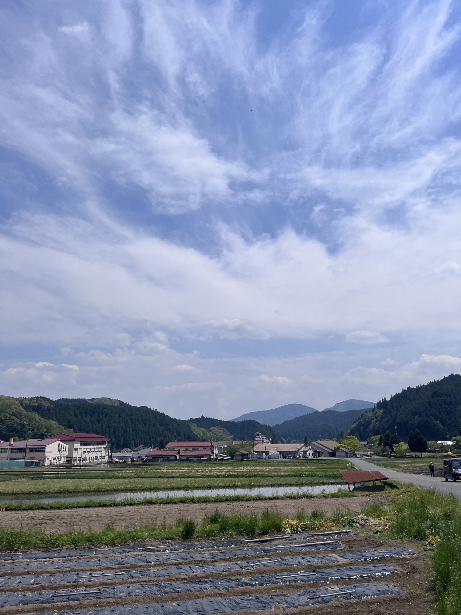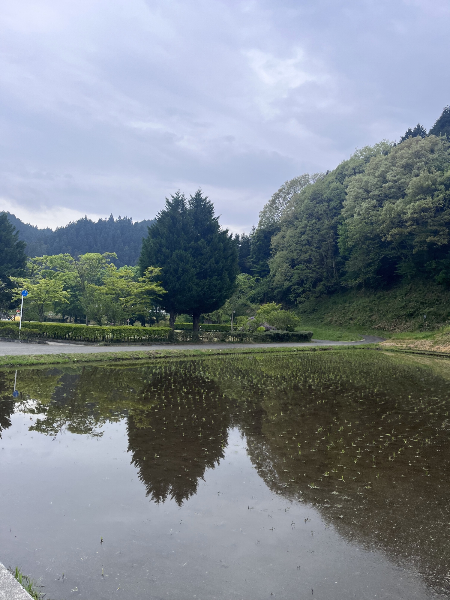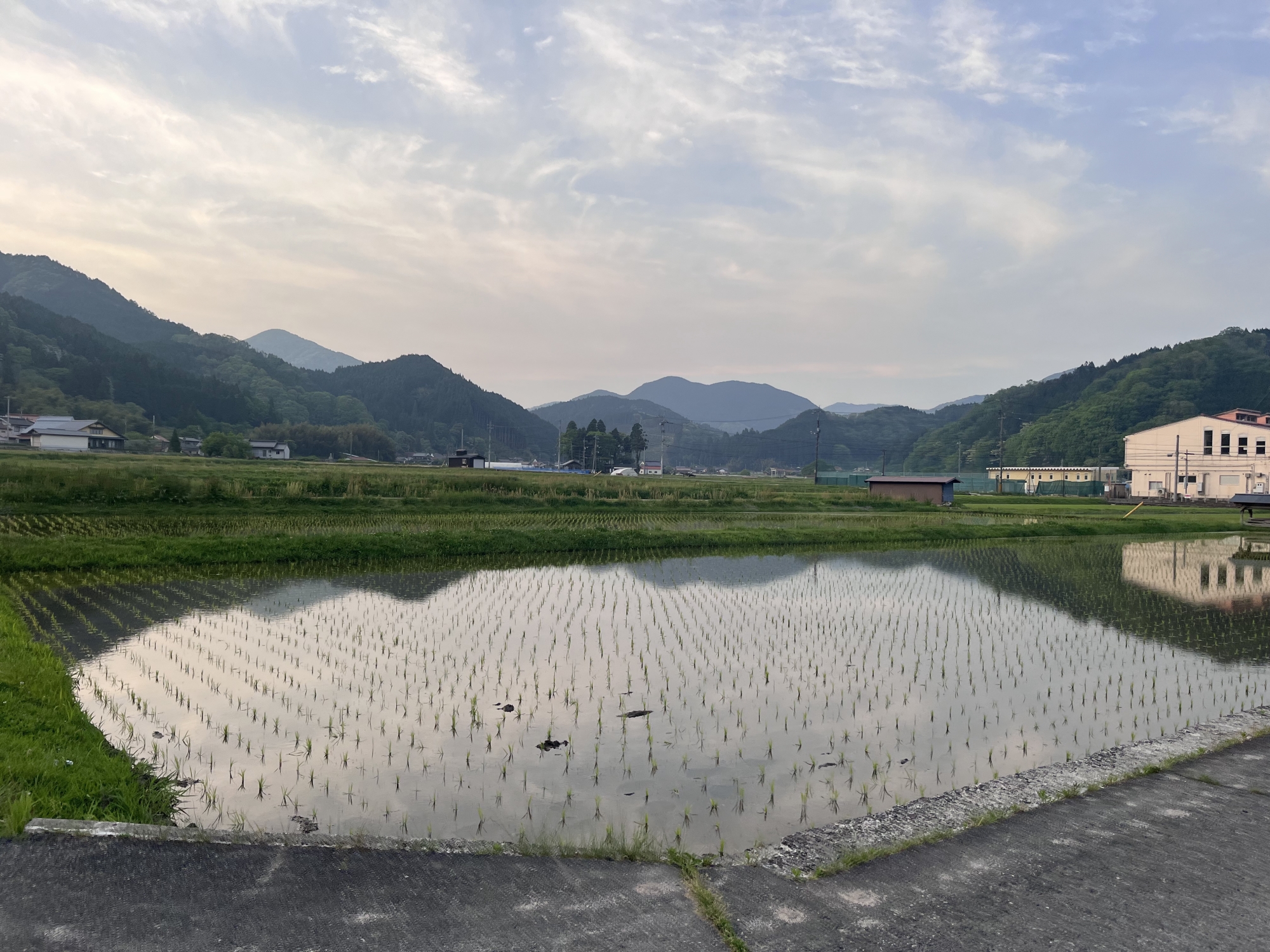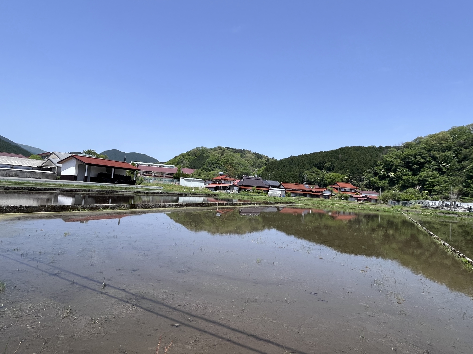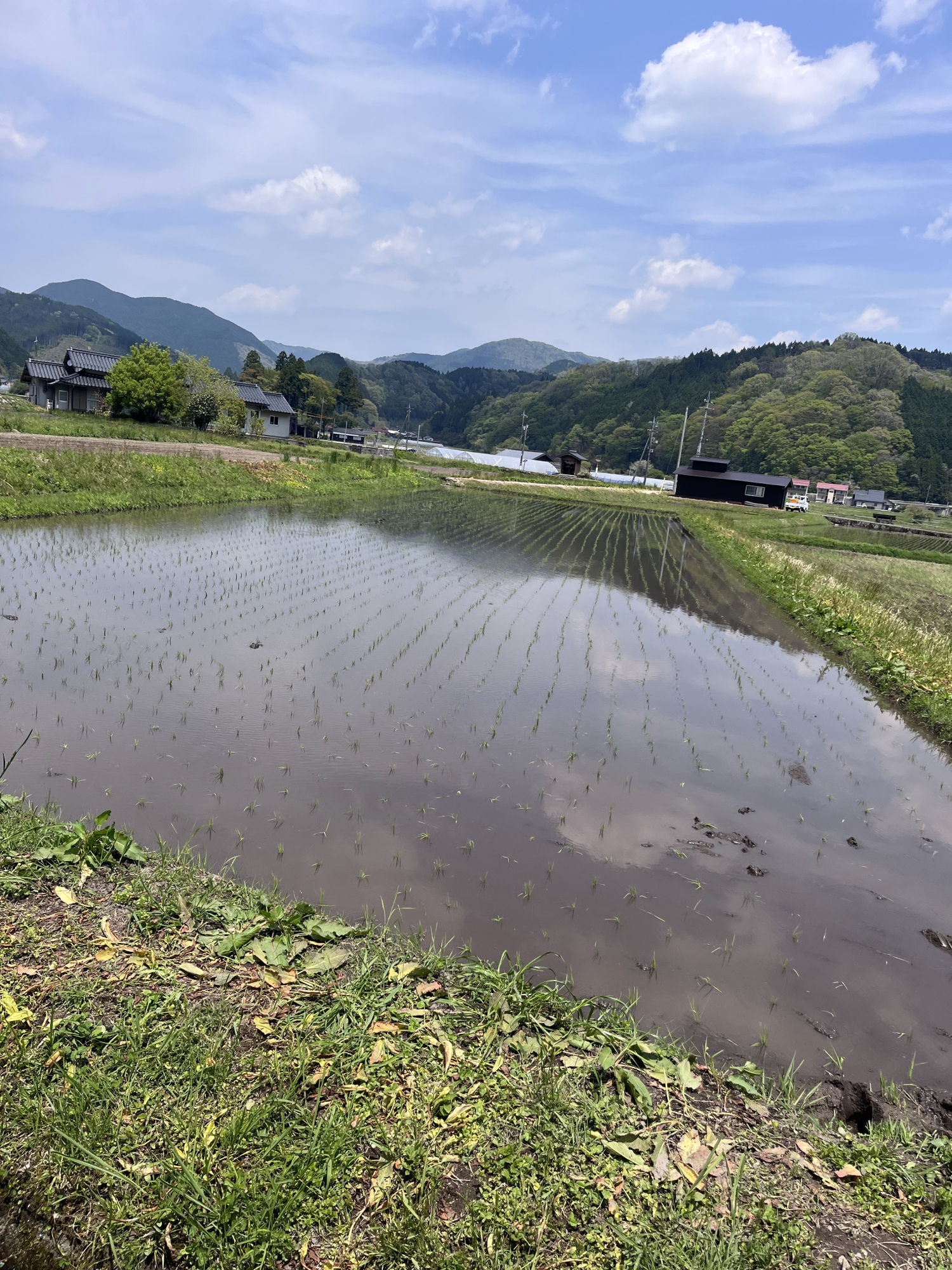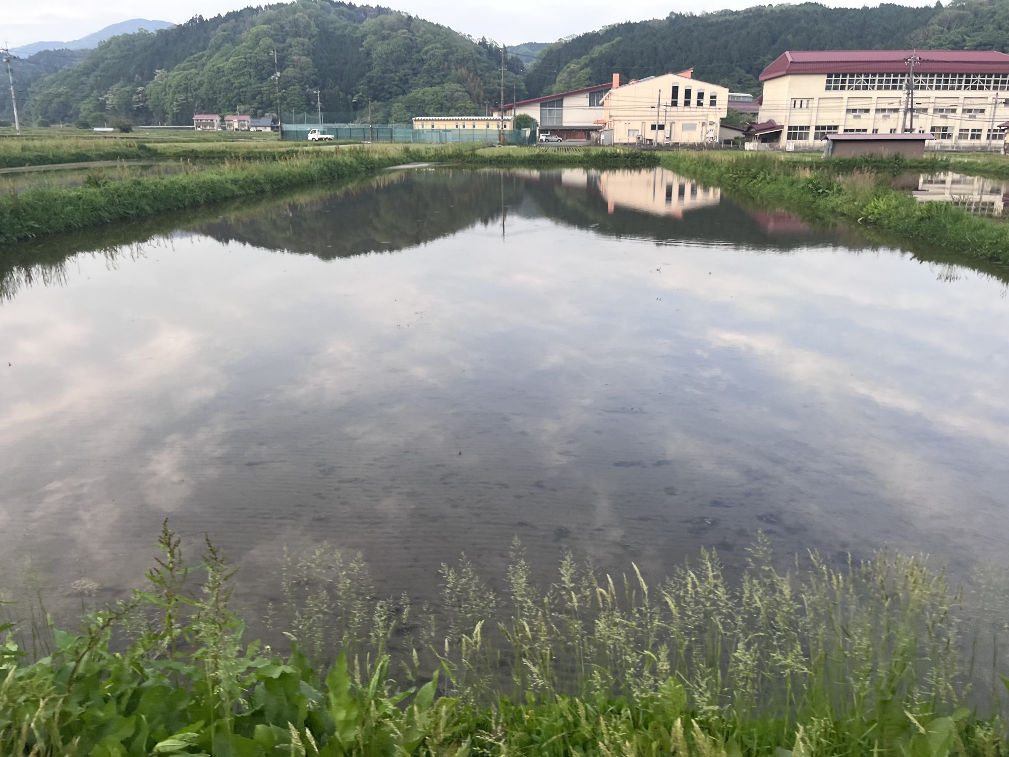 小学校の田圃は……少しだけ終わってて、まだ、苗が残ってて……岳ねんのグループで少しずつするのかな??