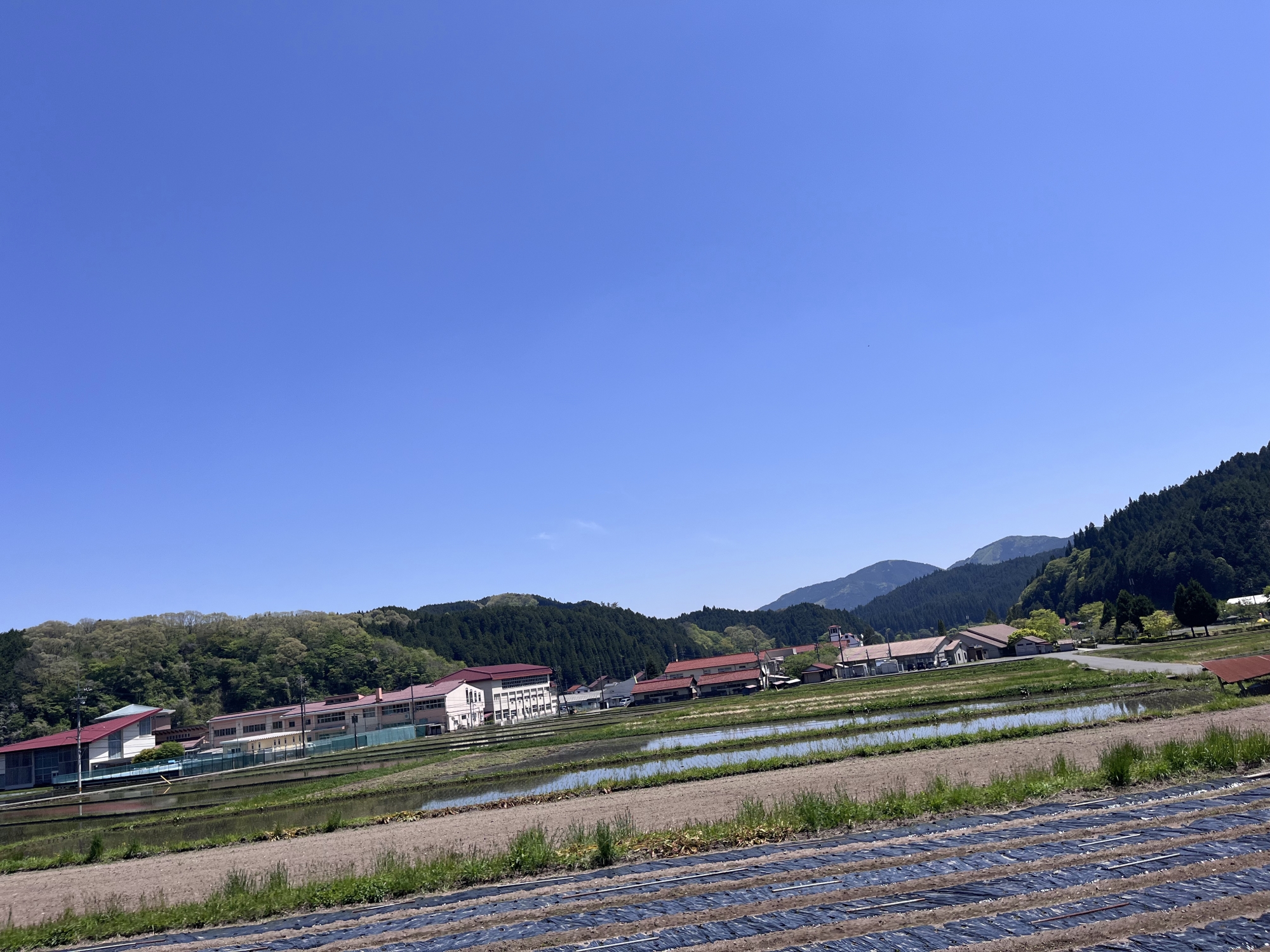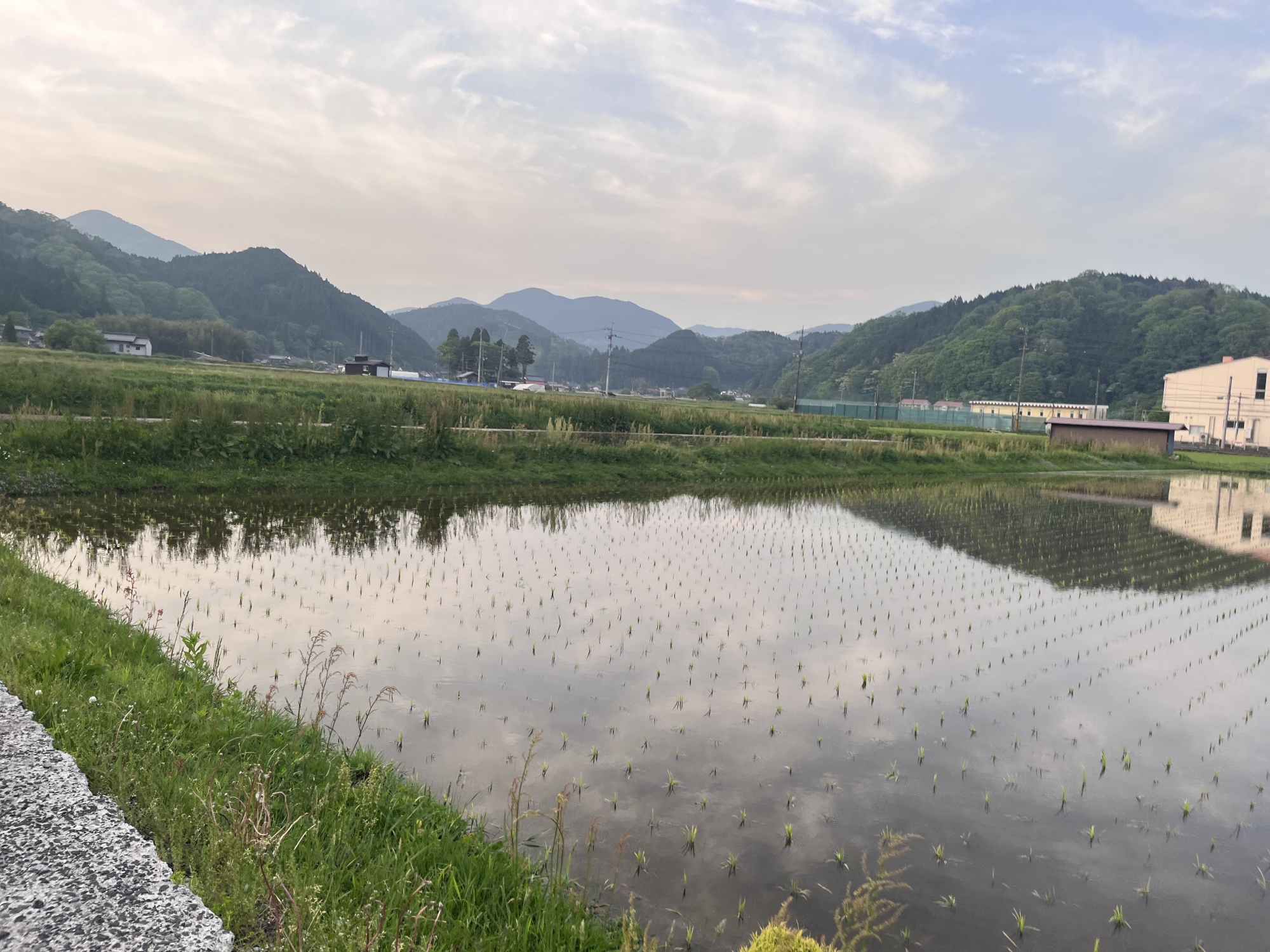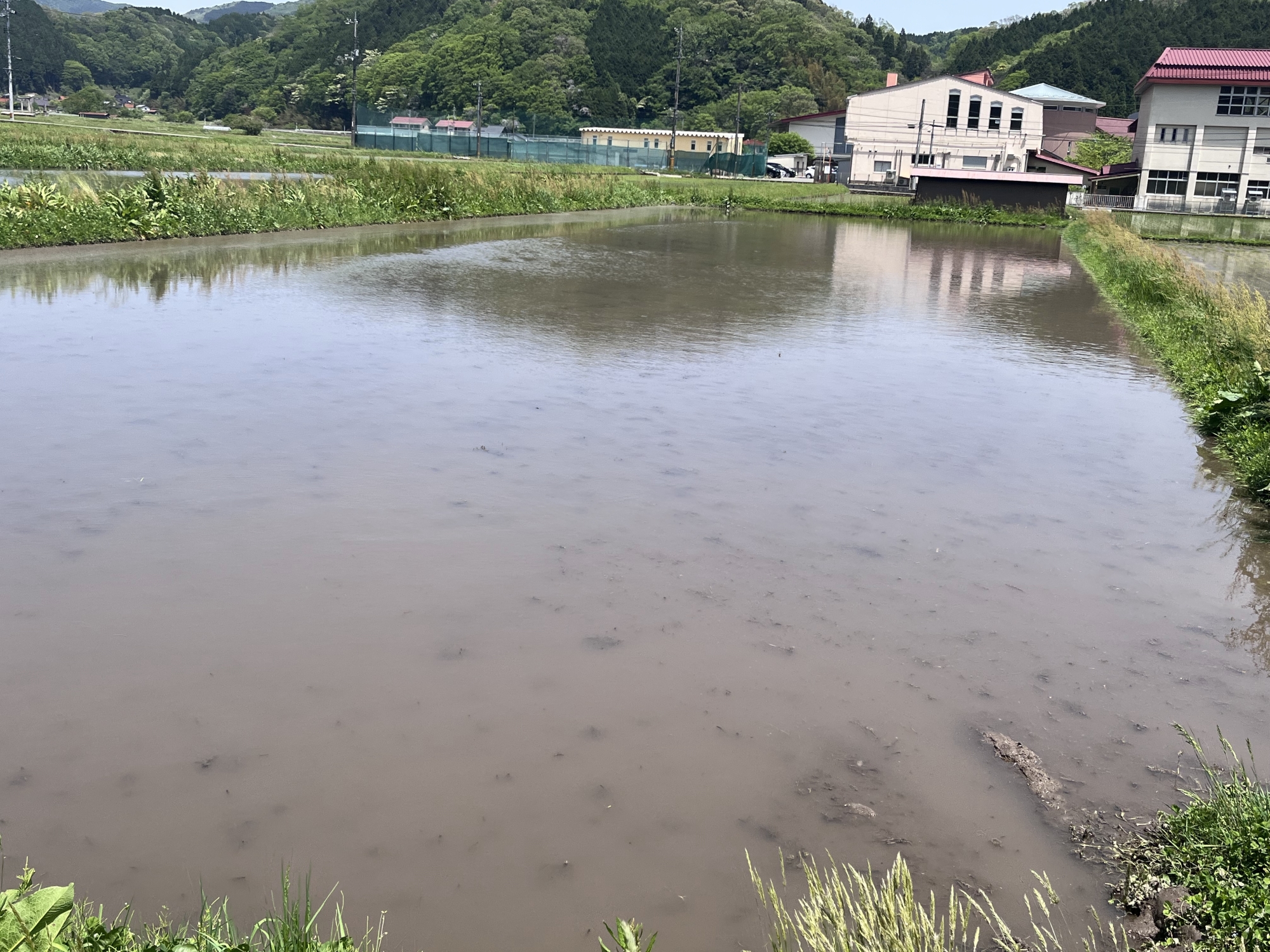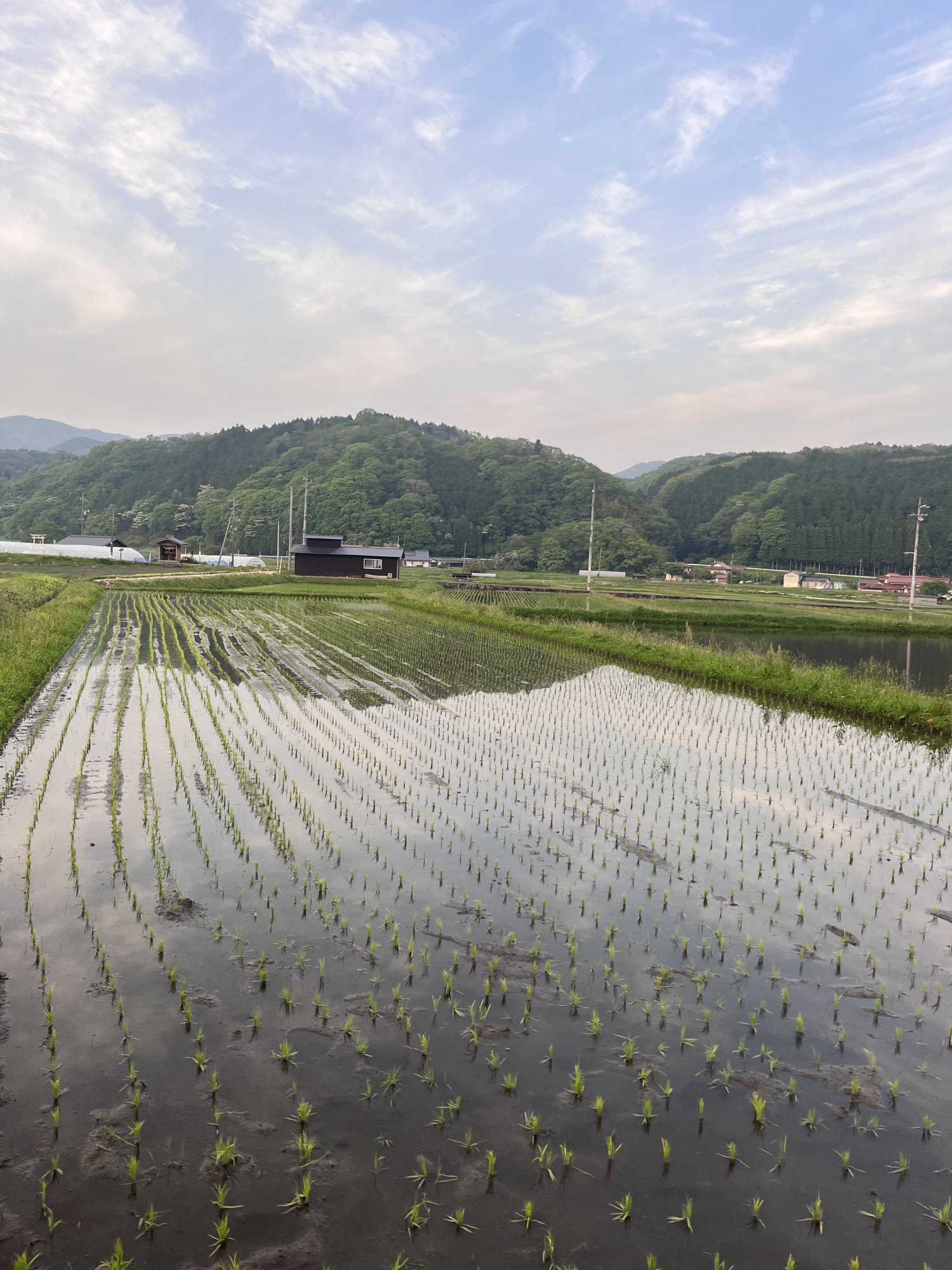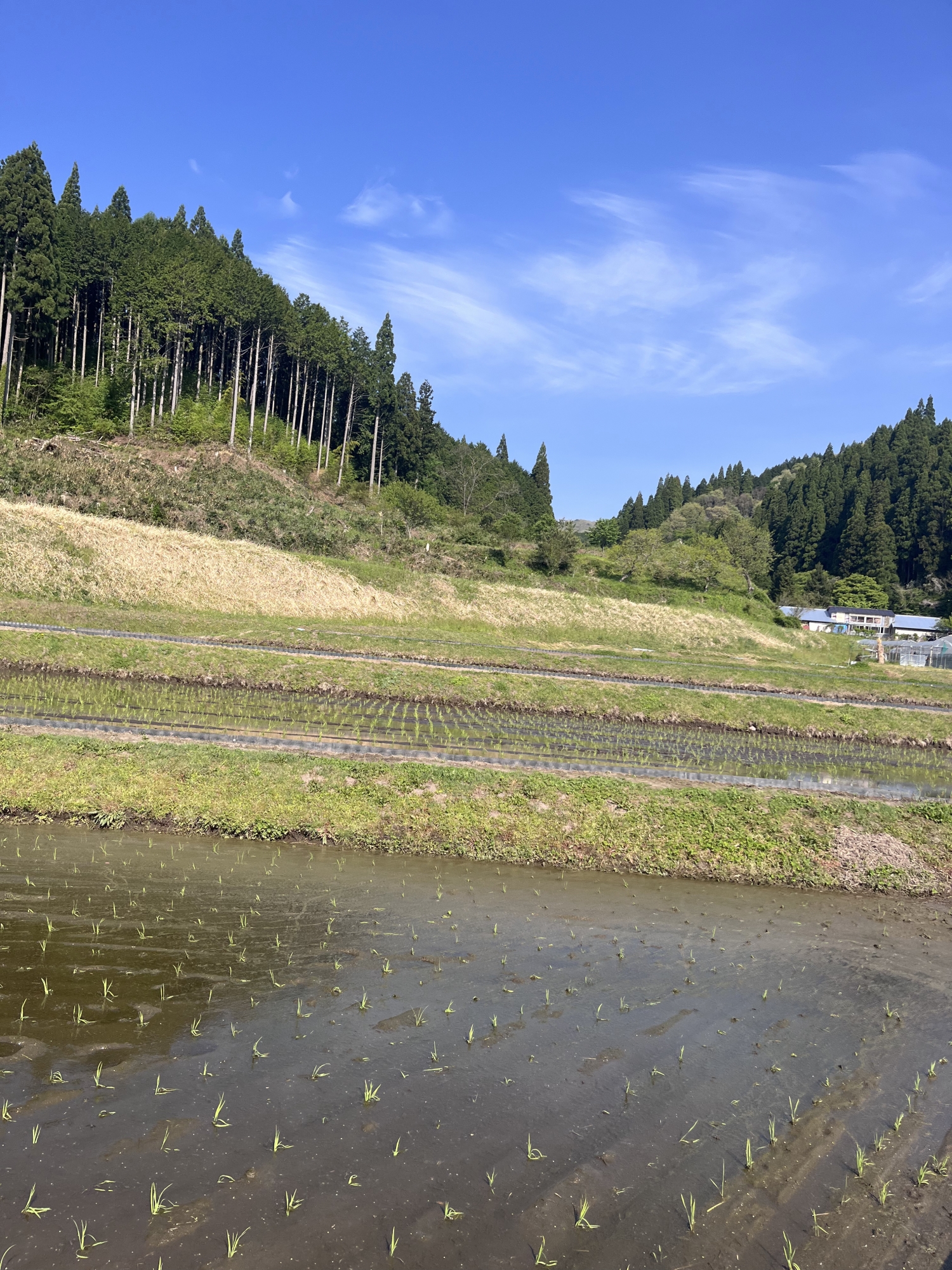 小学校の田圃は……少しだけ終わってて、まだ、苗が残ってて……岳ねんのグループで少しずつするのかな??