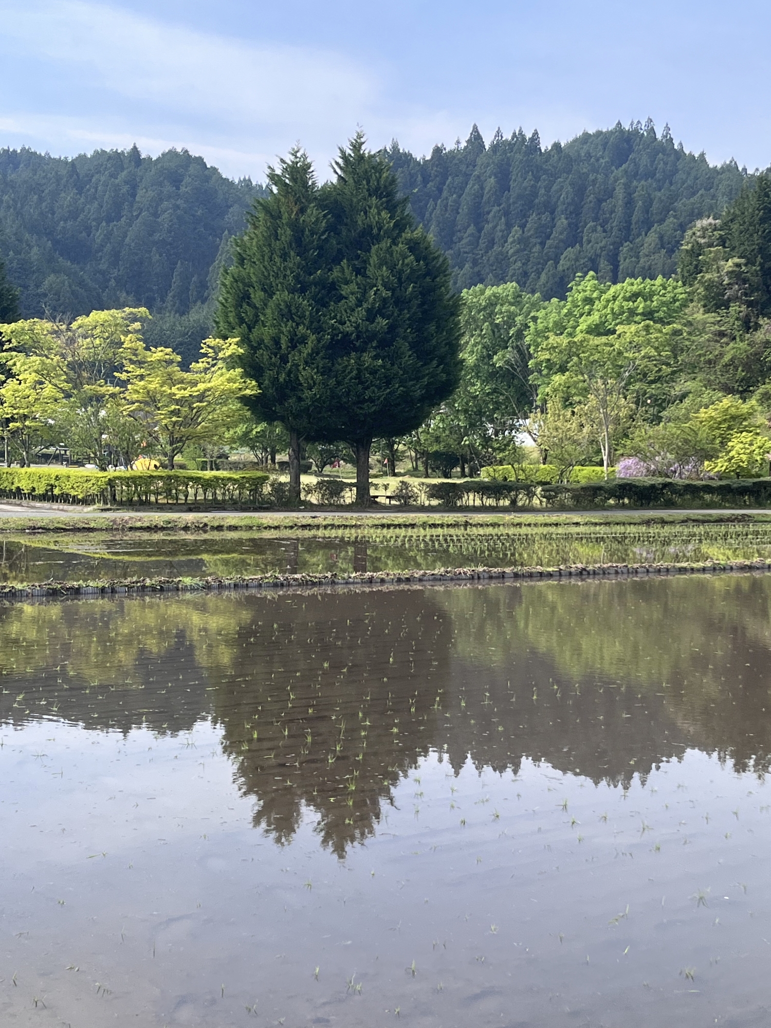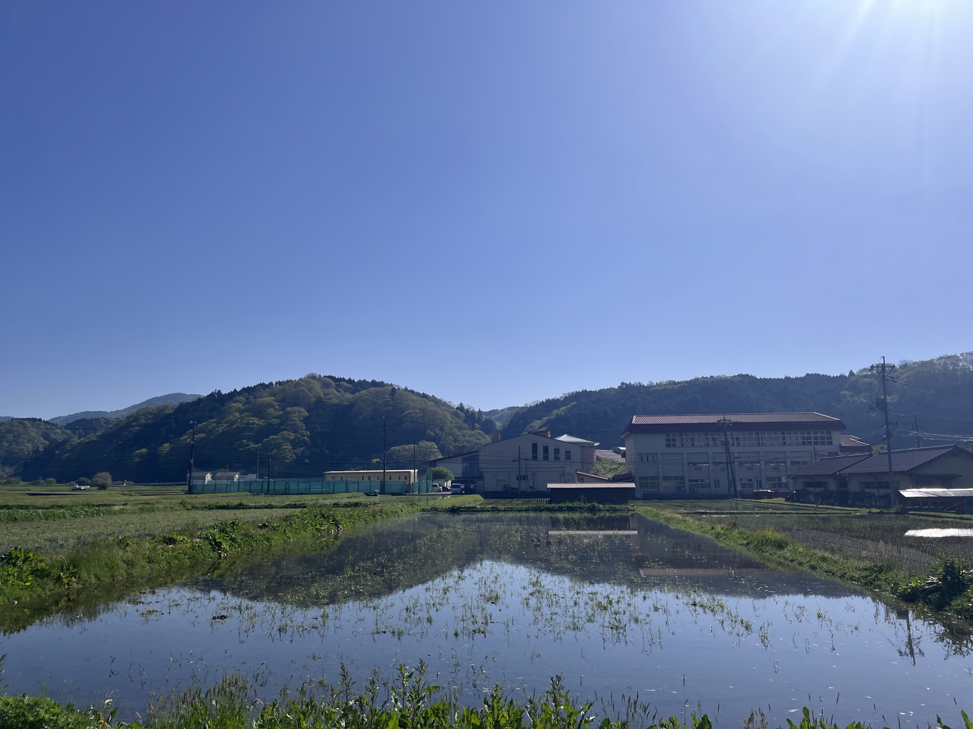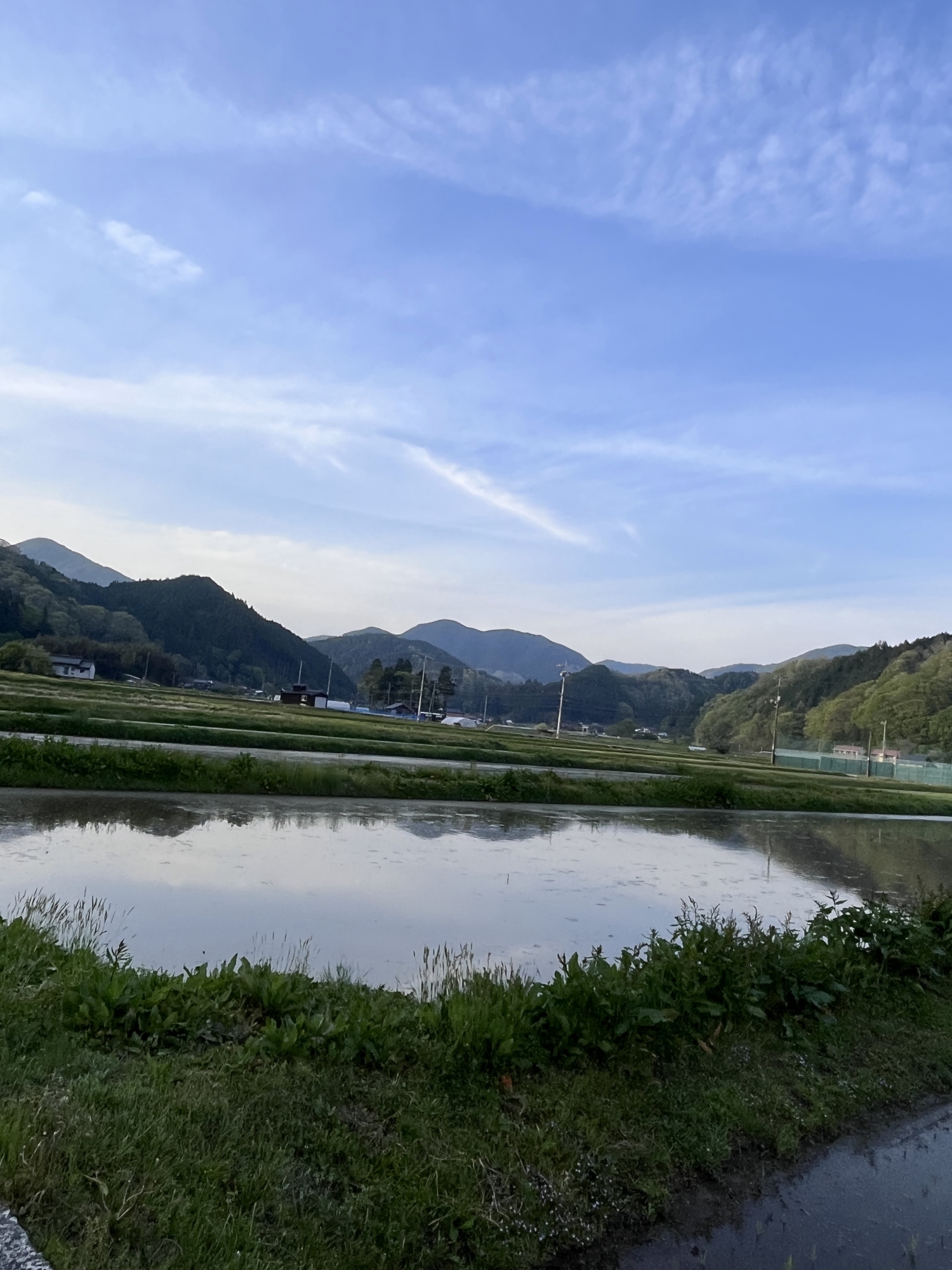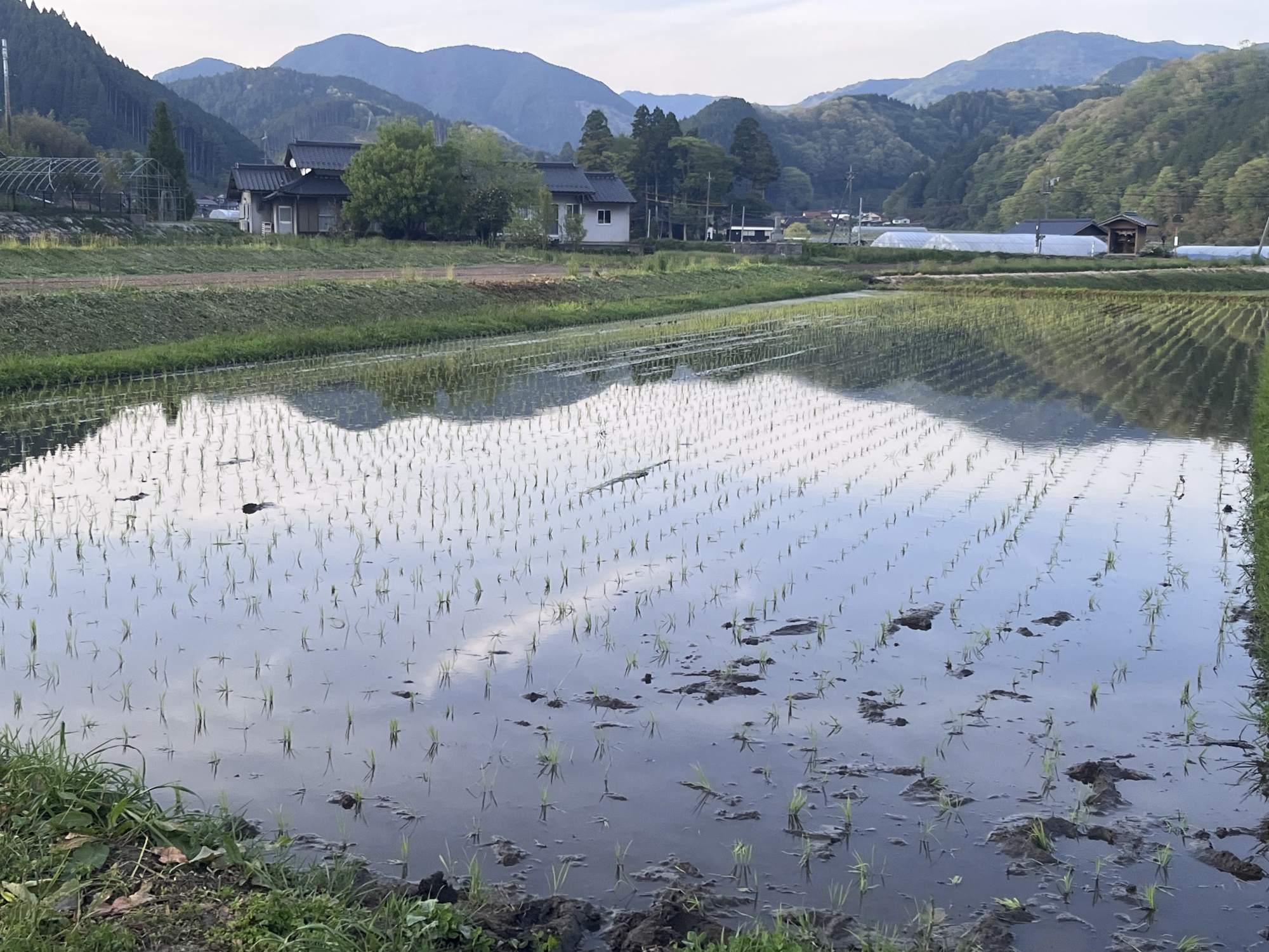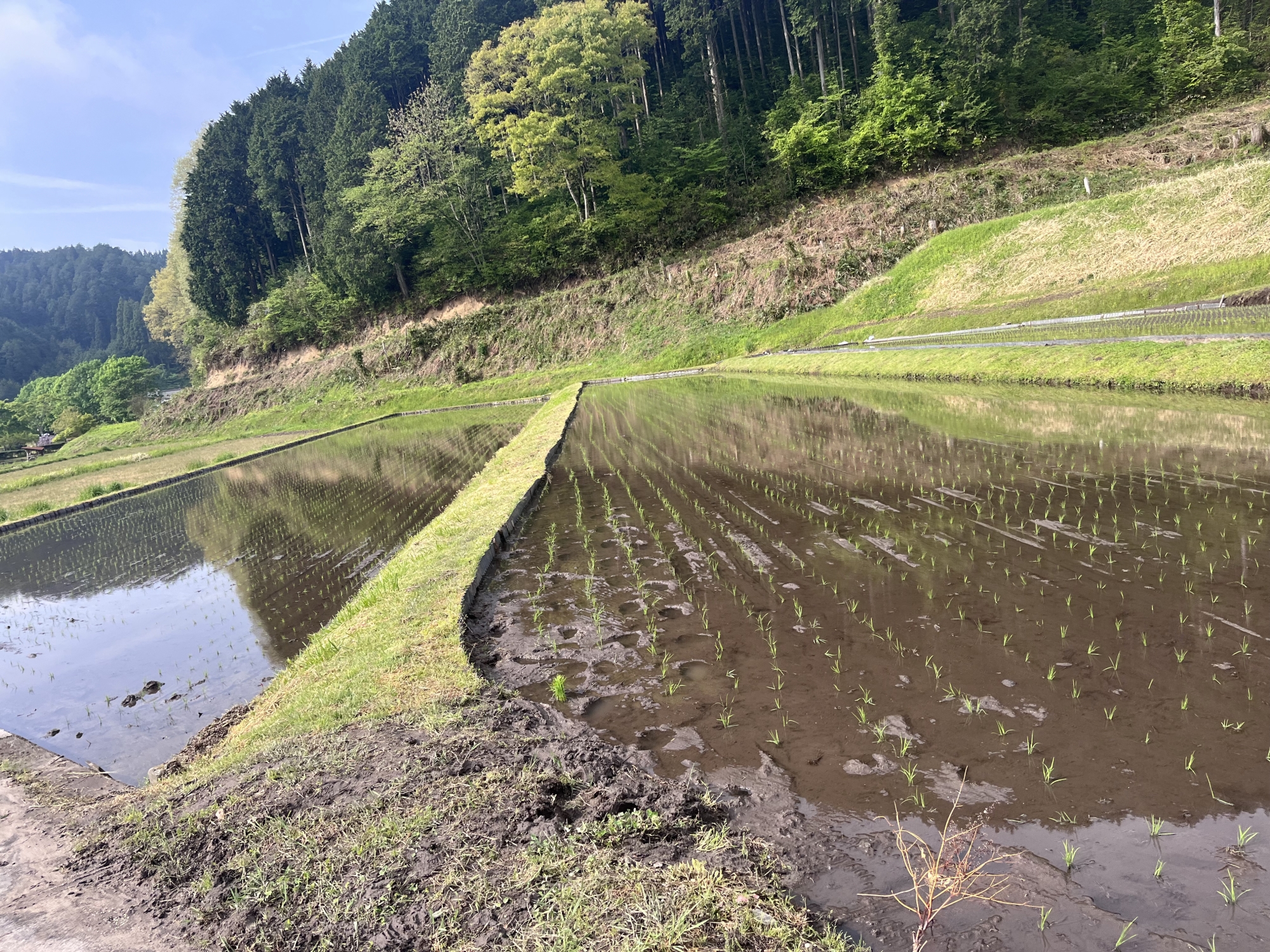 小学校の田圃は……少しだけ終わってて、まだ、苗が残ってて……岳ねんのグループで少しずつするのかな??