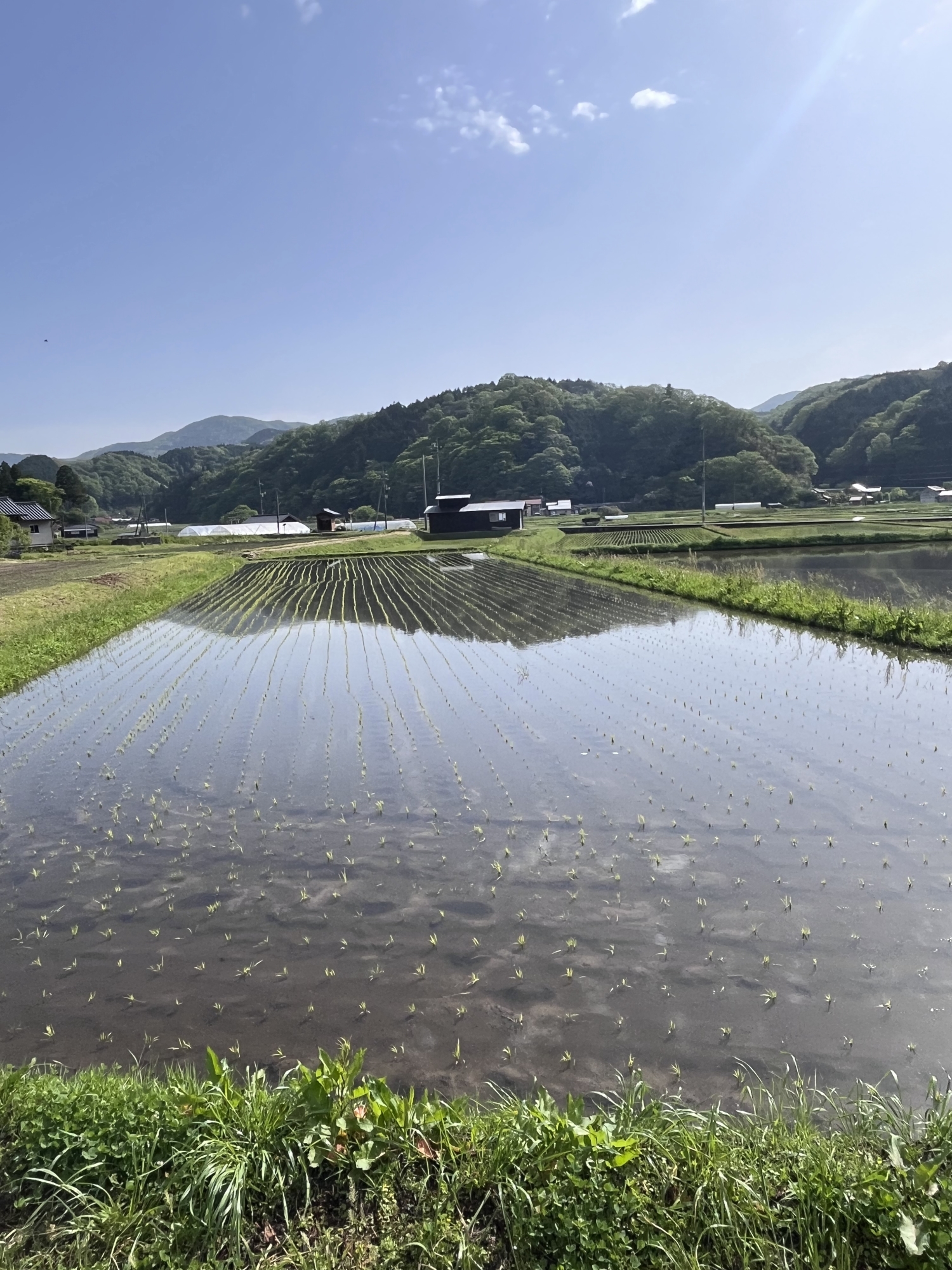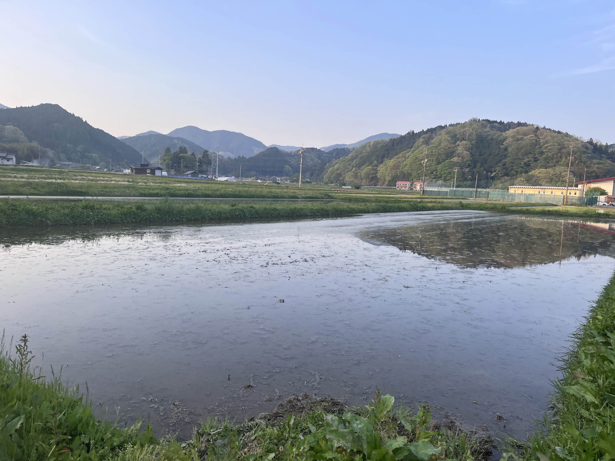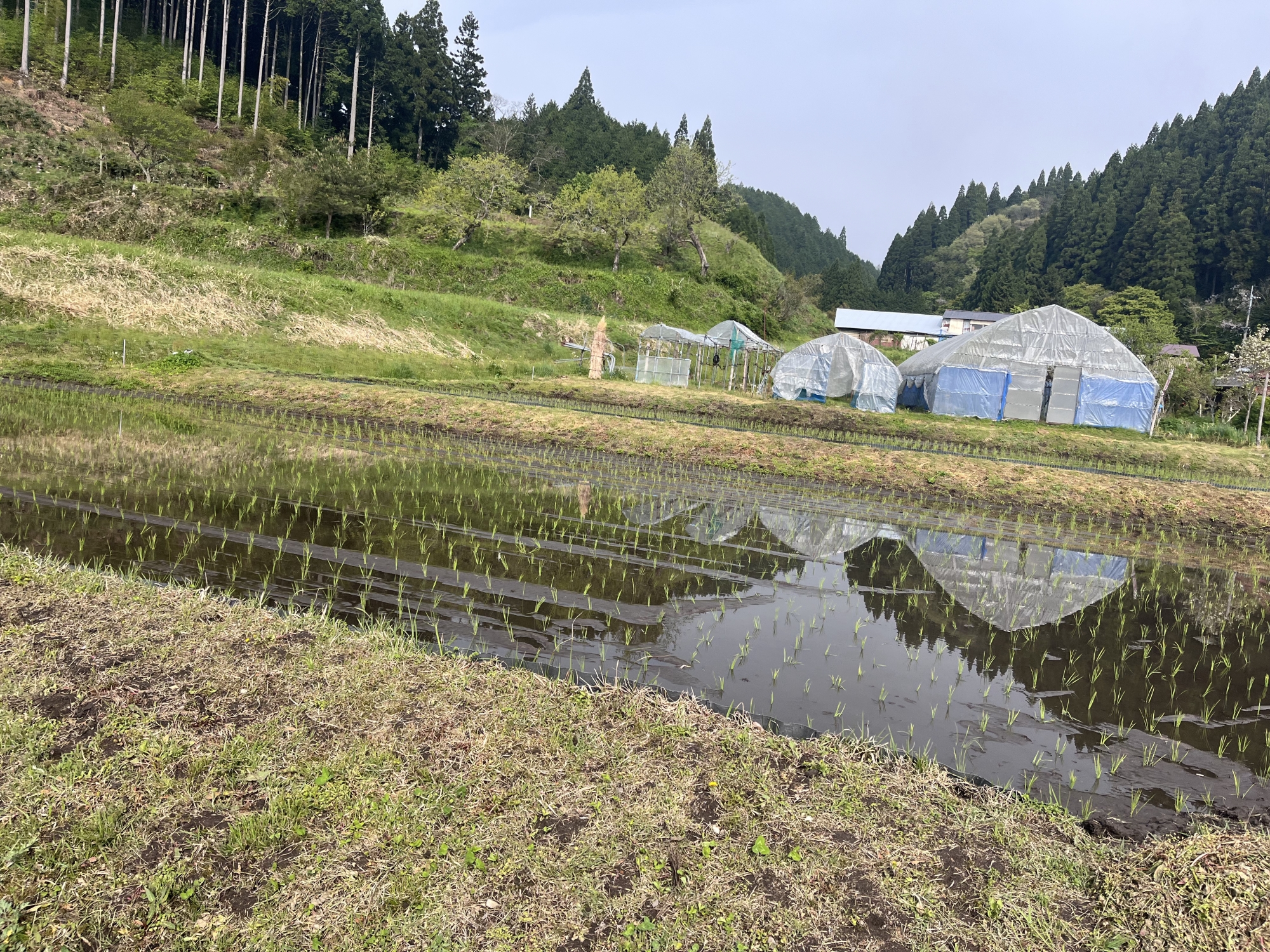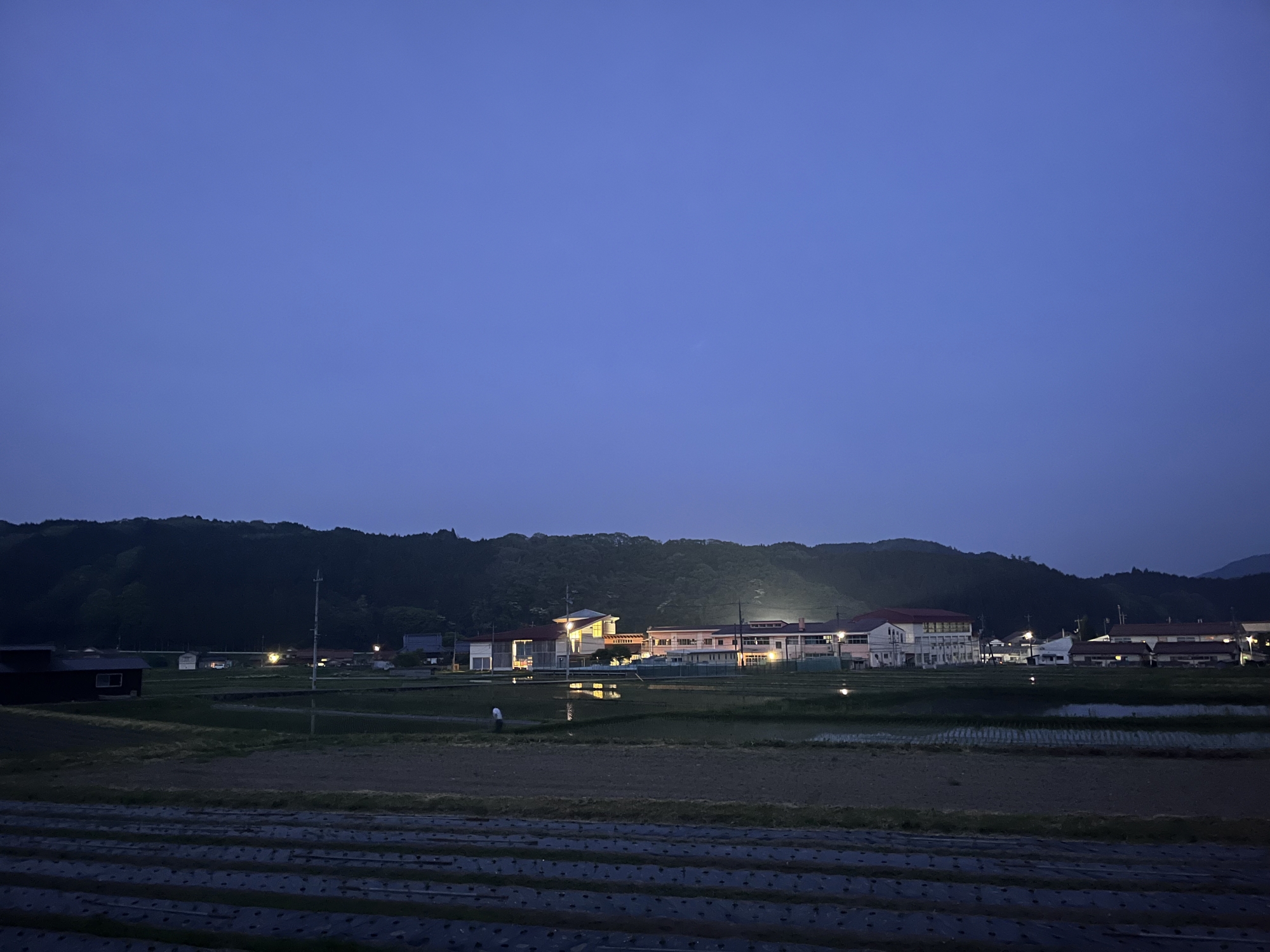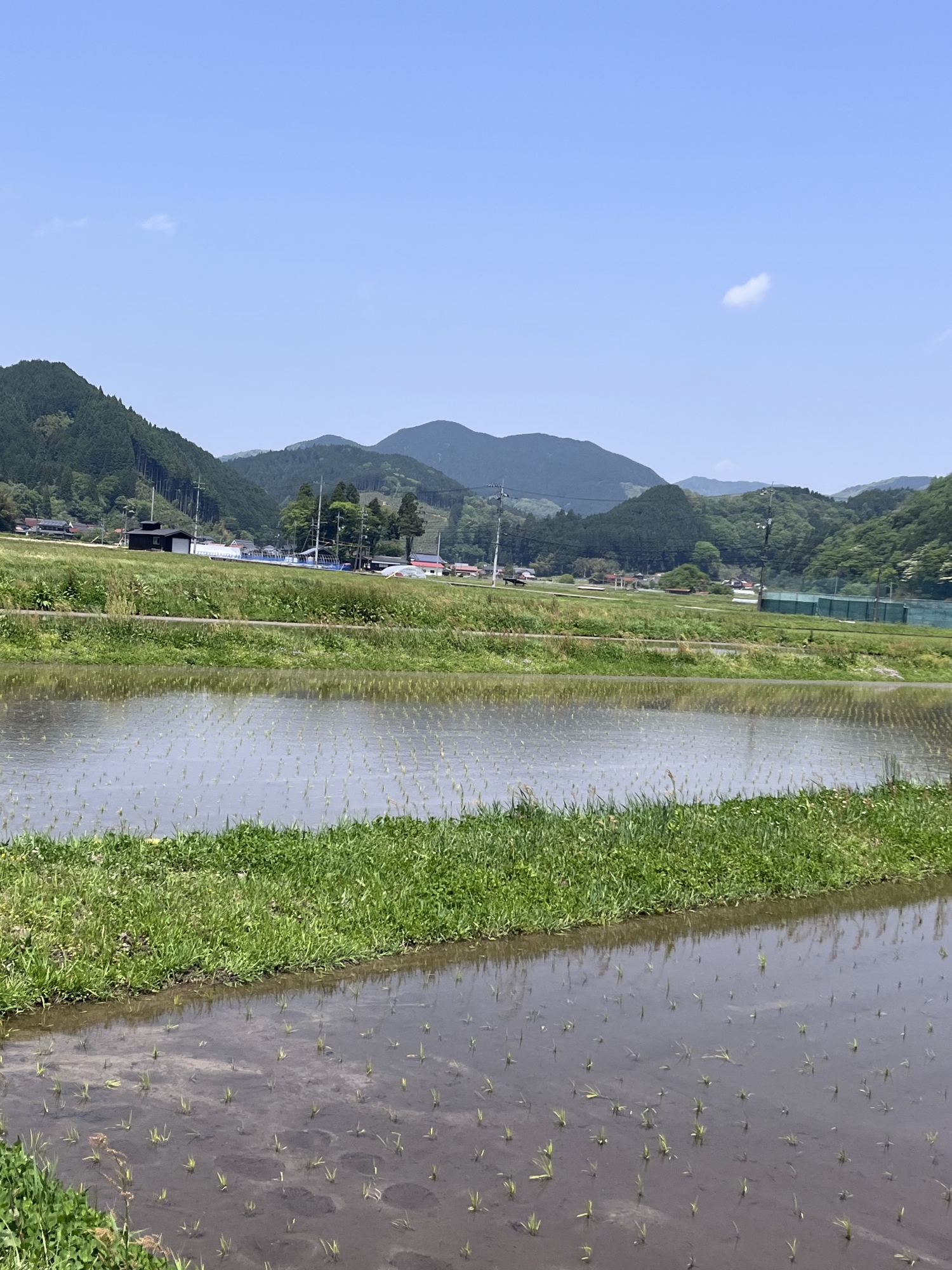 小学校の田圃は……少しだけ終わってて、まだ、苗が残ってて……岳ねんのグループで少しずつするのかな??