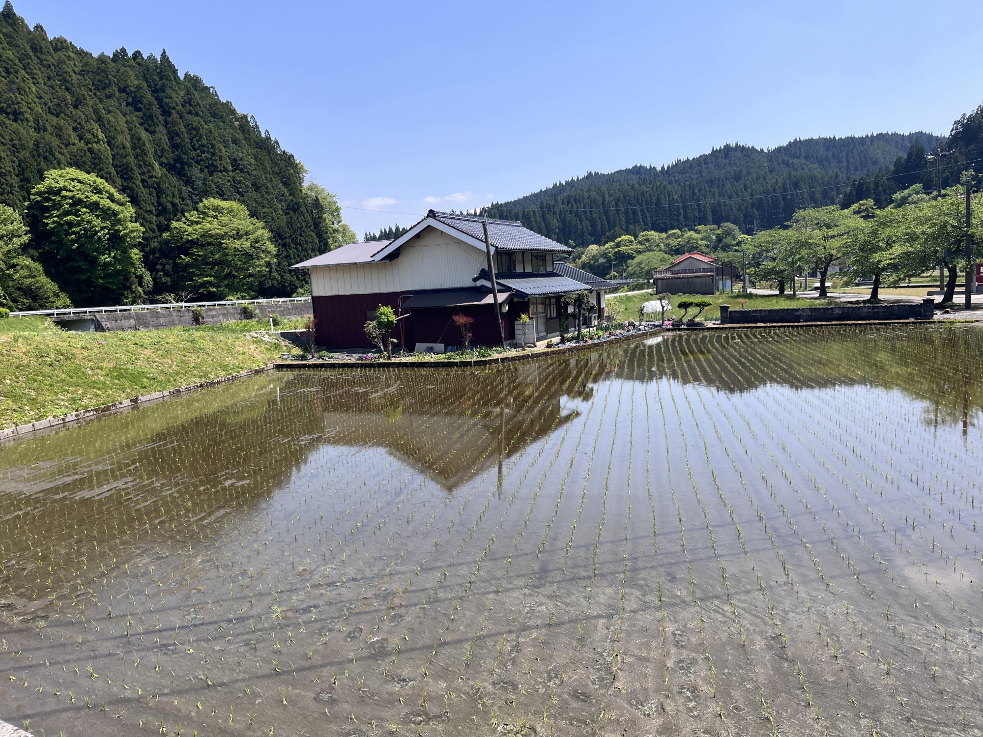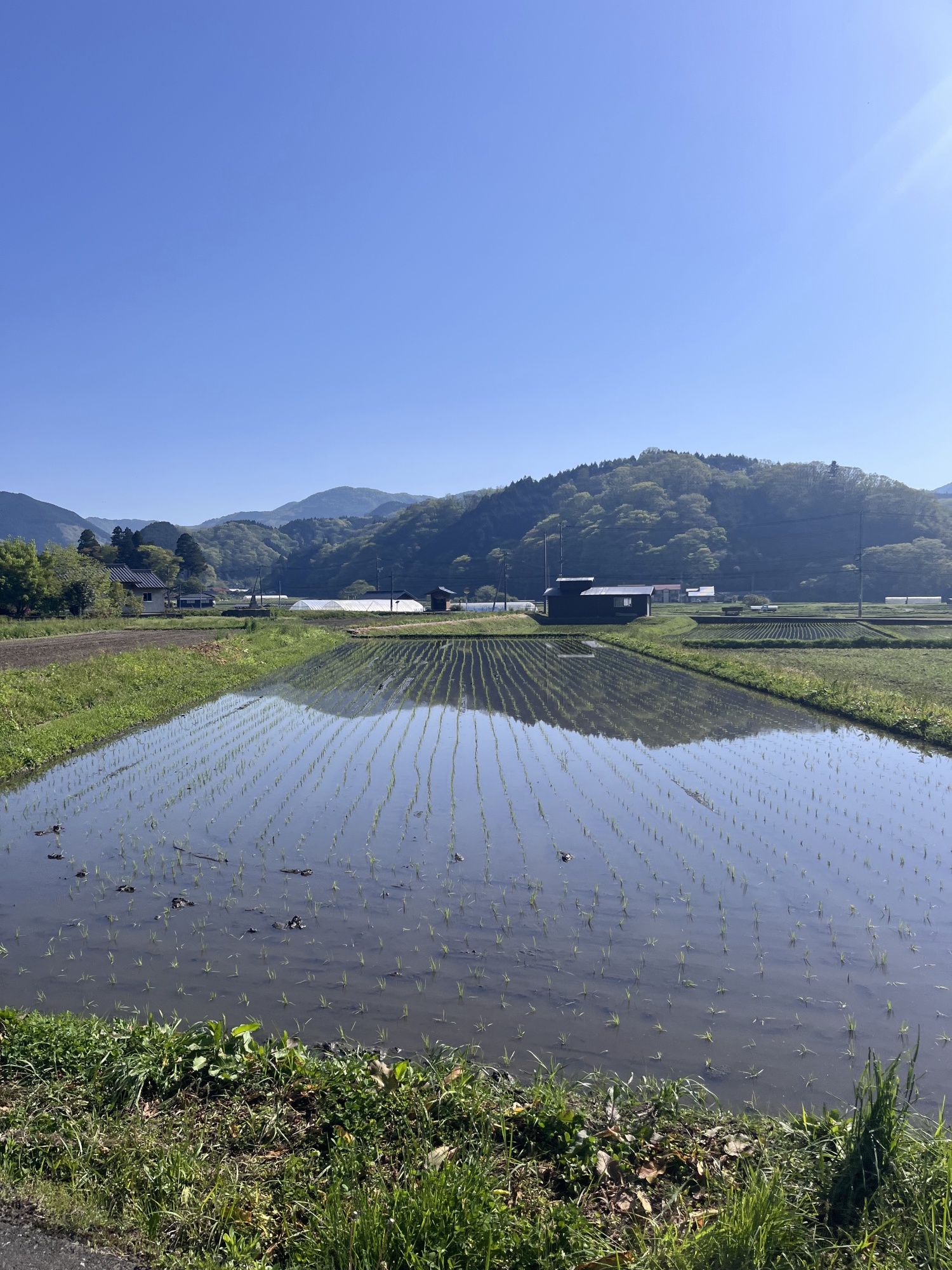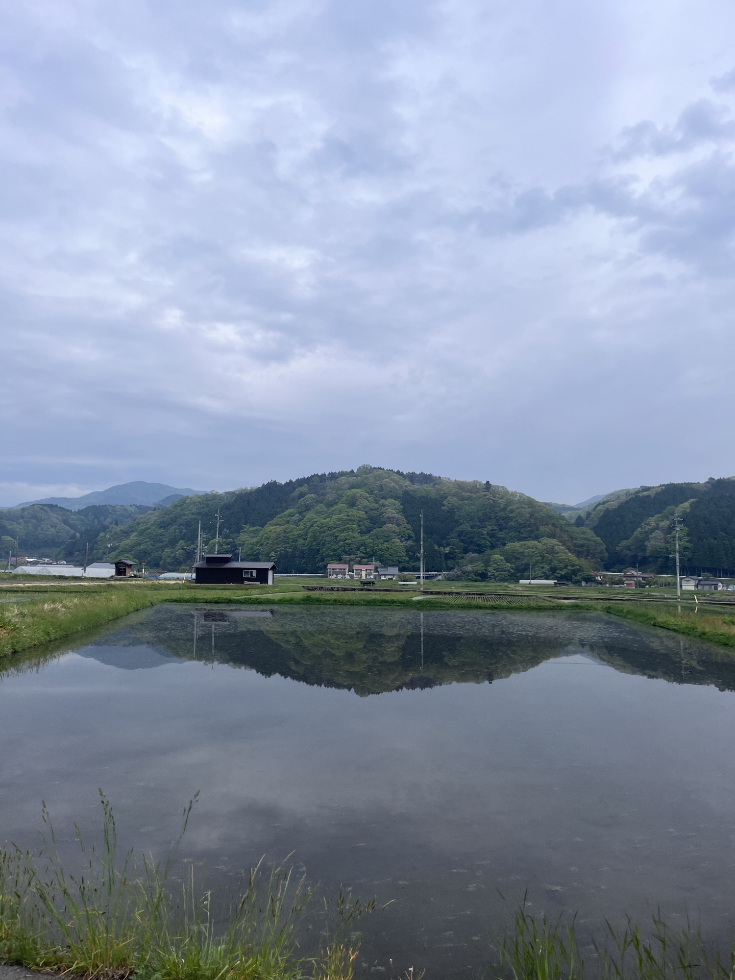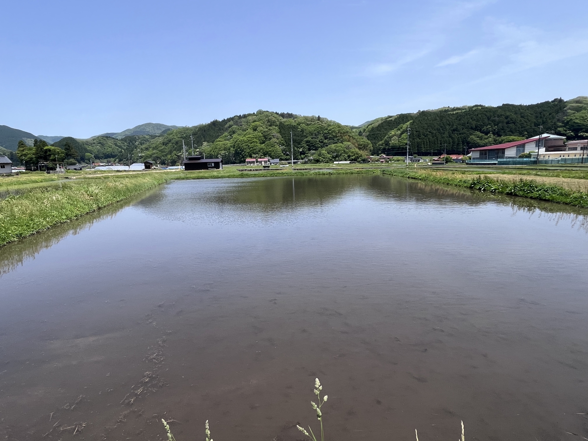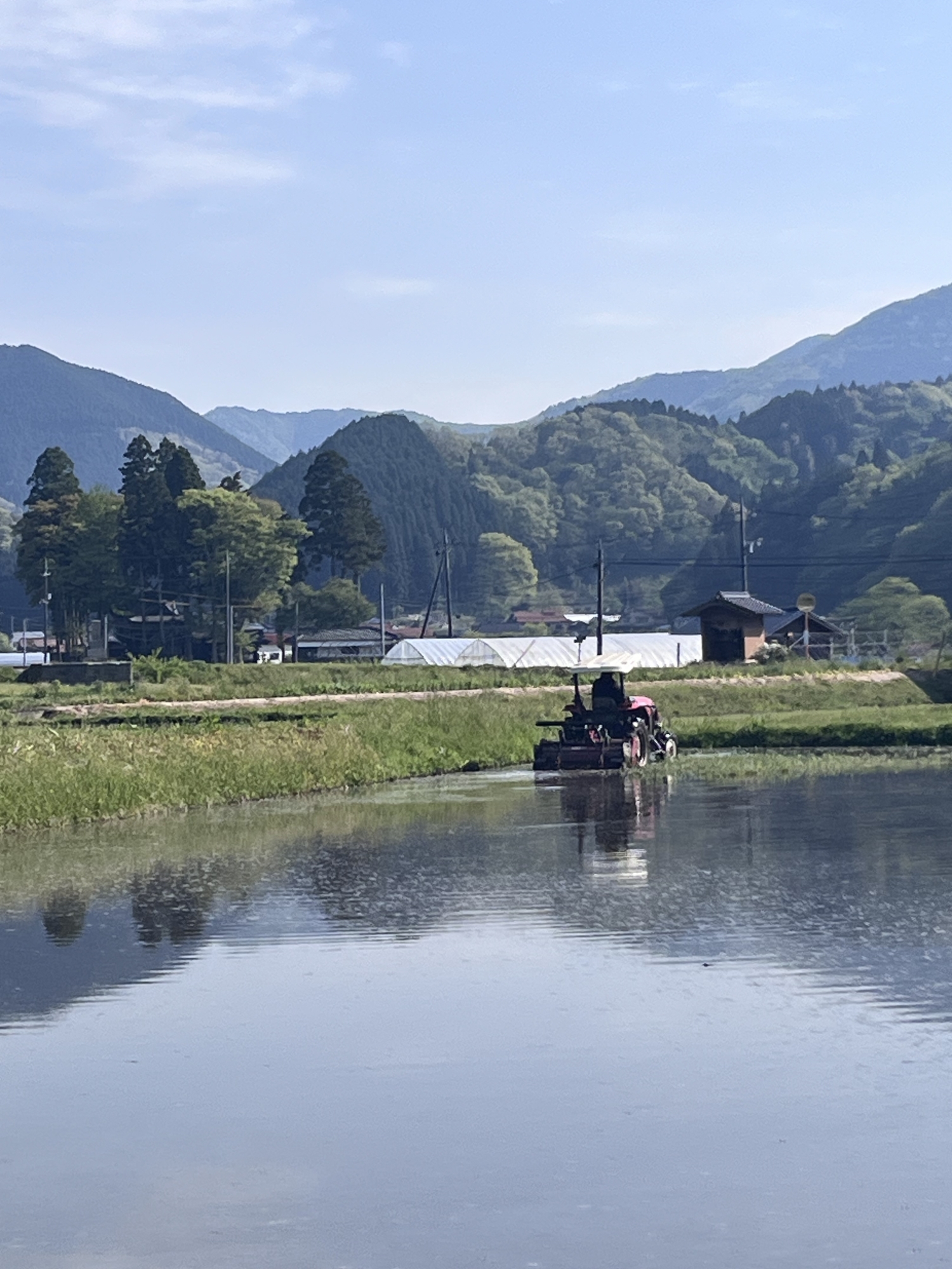 小学校の田圃は……少しだけ終わってて、まだ、苗が残ってて……岳ねんのグループで少しずつするのかな??