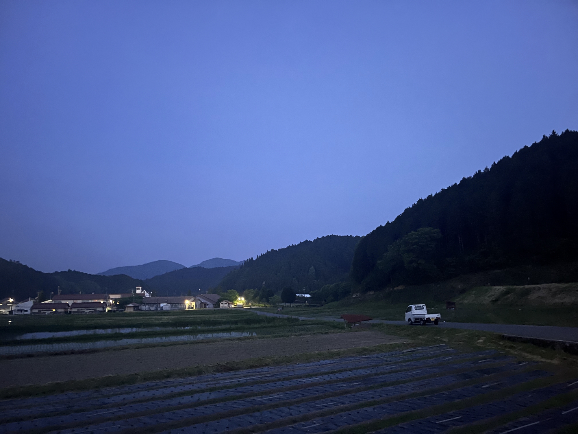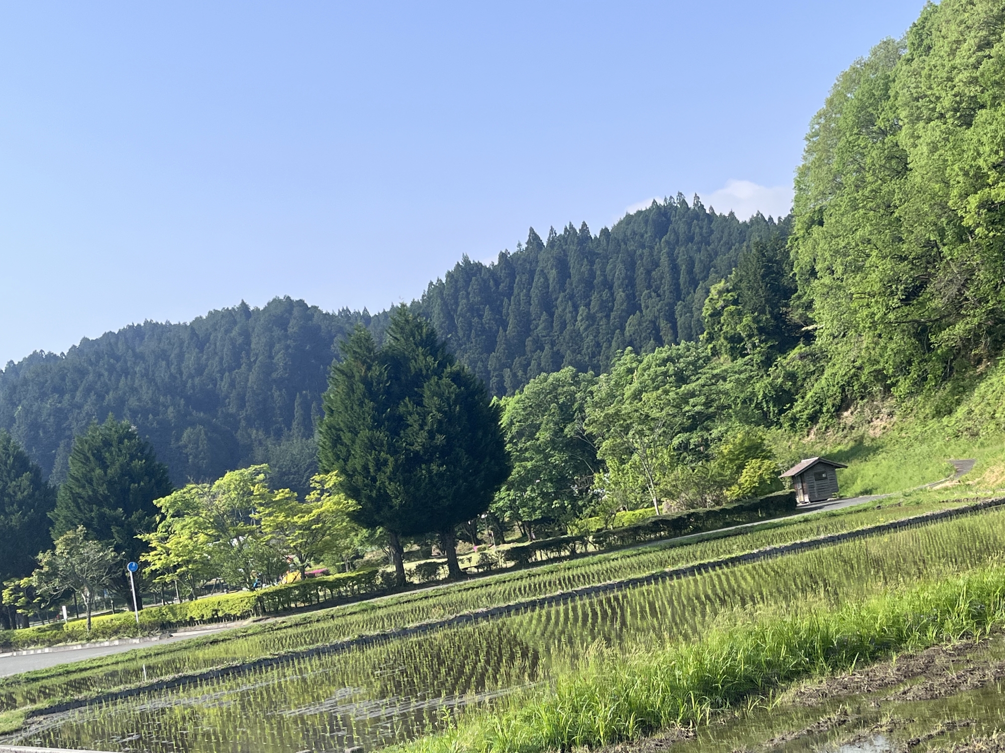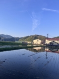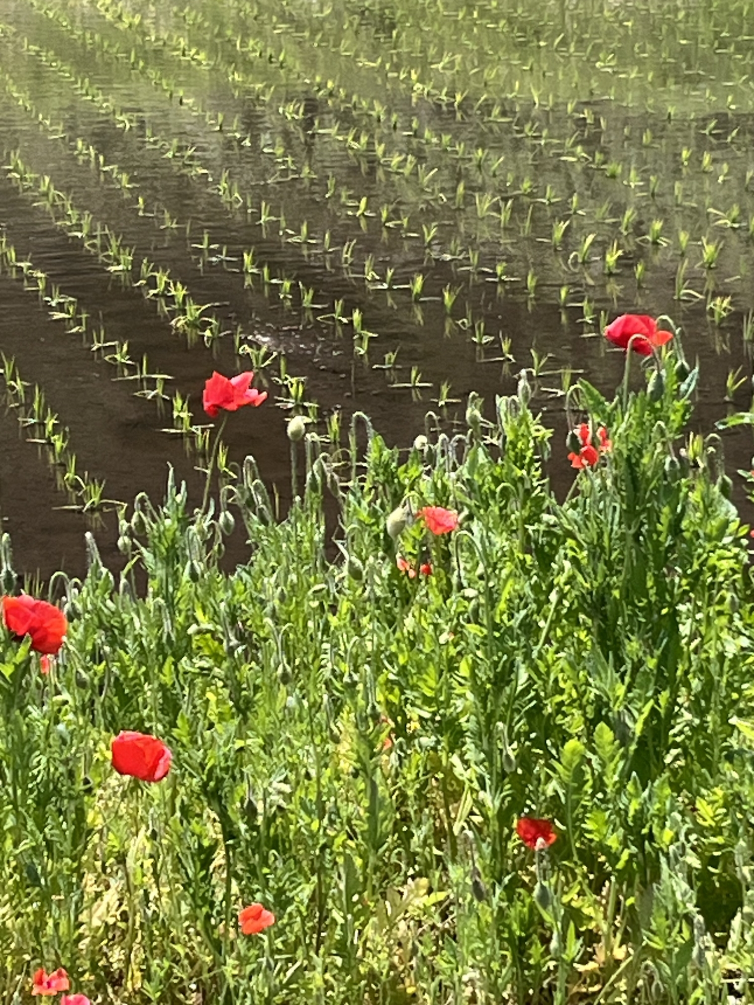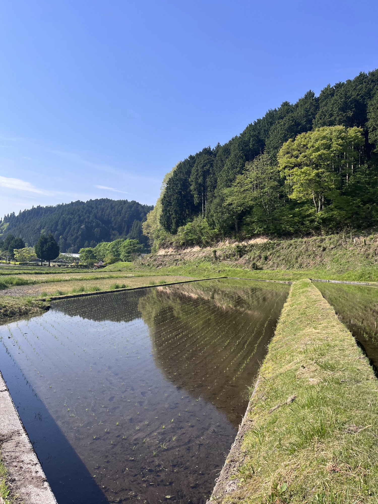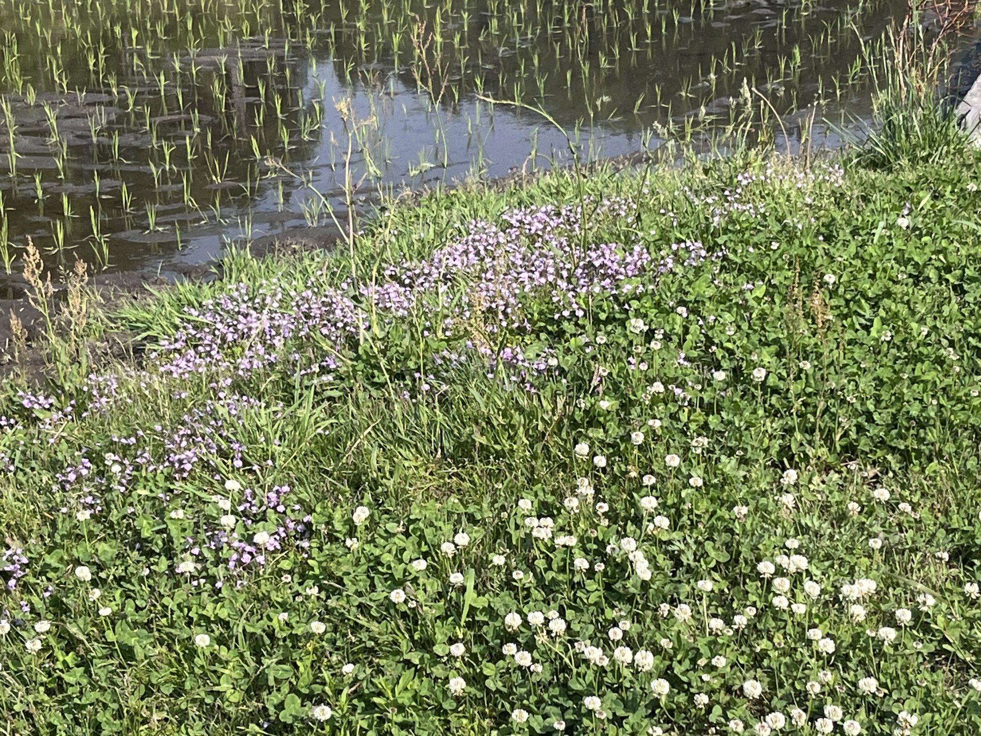 小学校の田圃は……少しだけ終わってて、まだ、苗が残ってて……岳ねんのグループで少しずつするのかな??