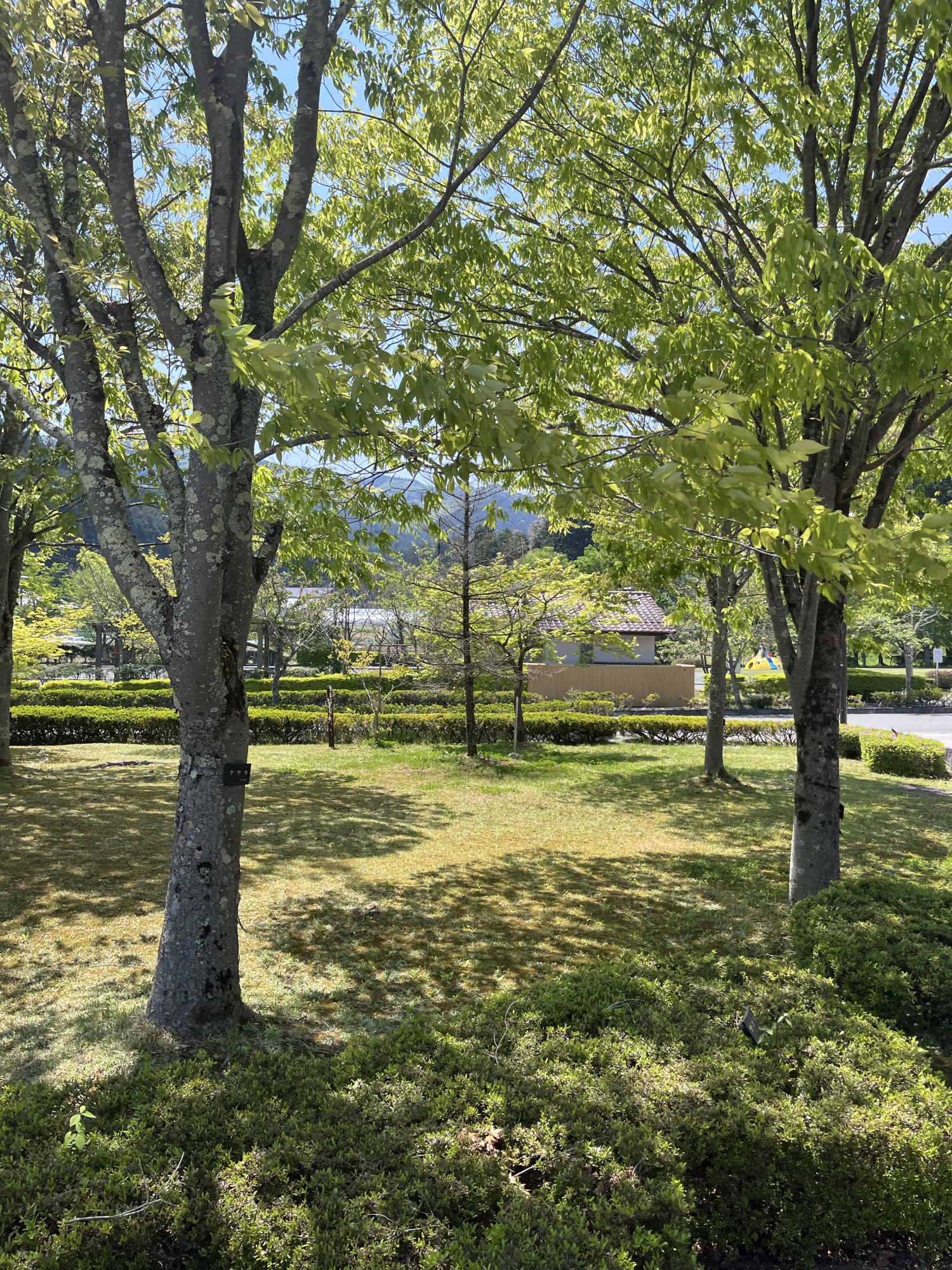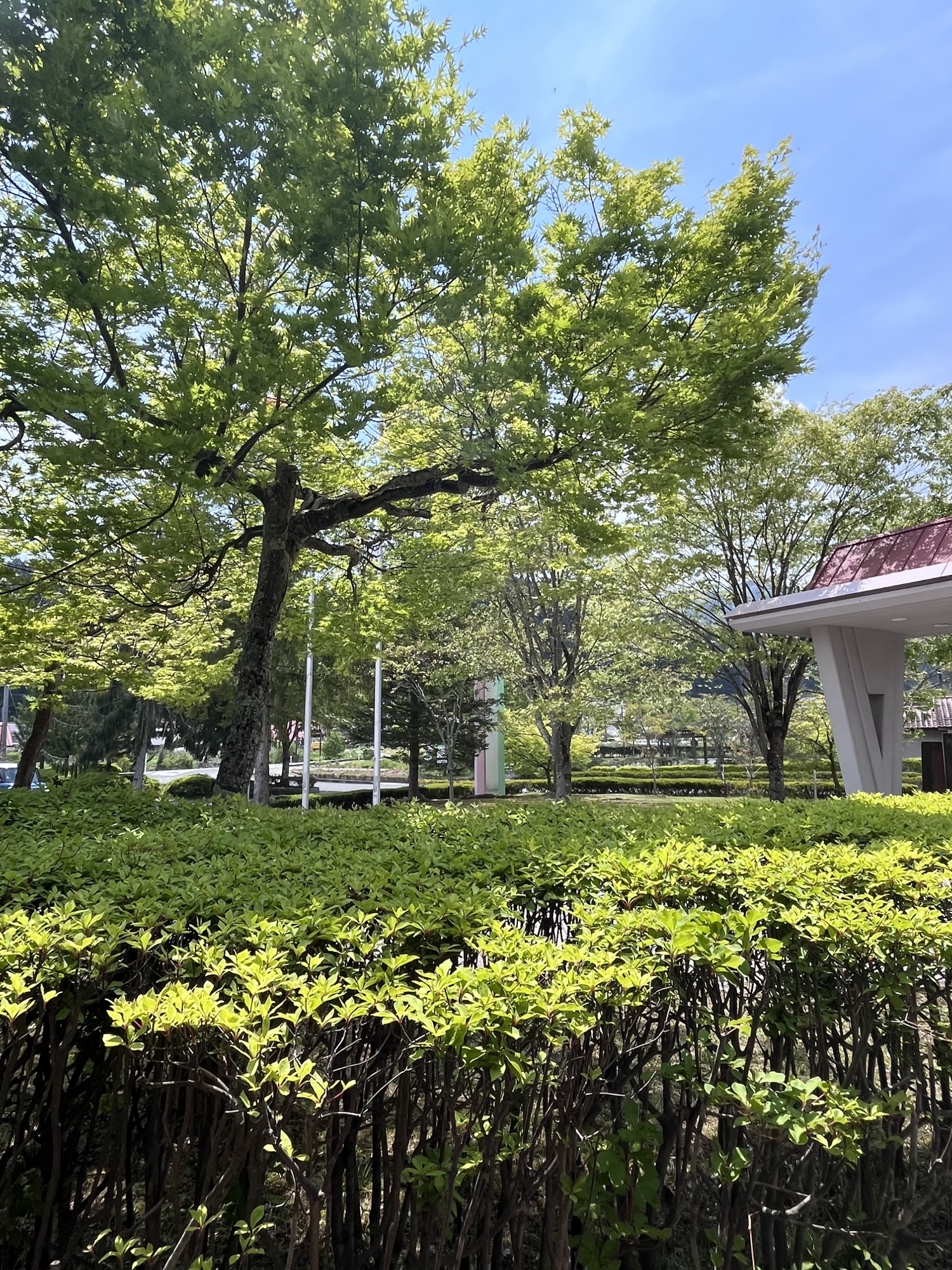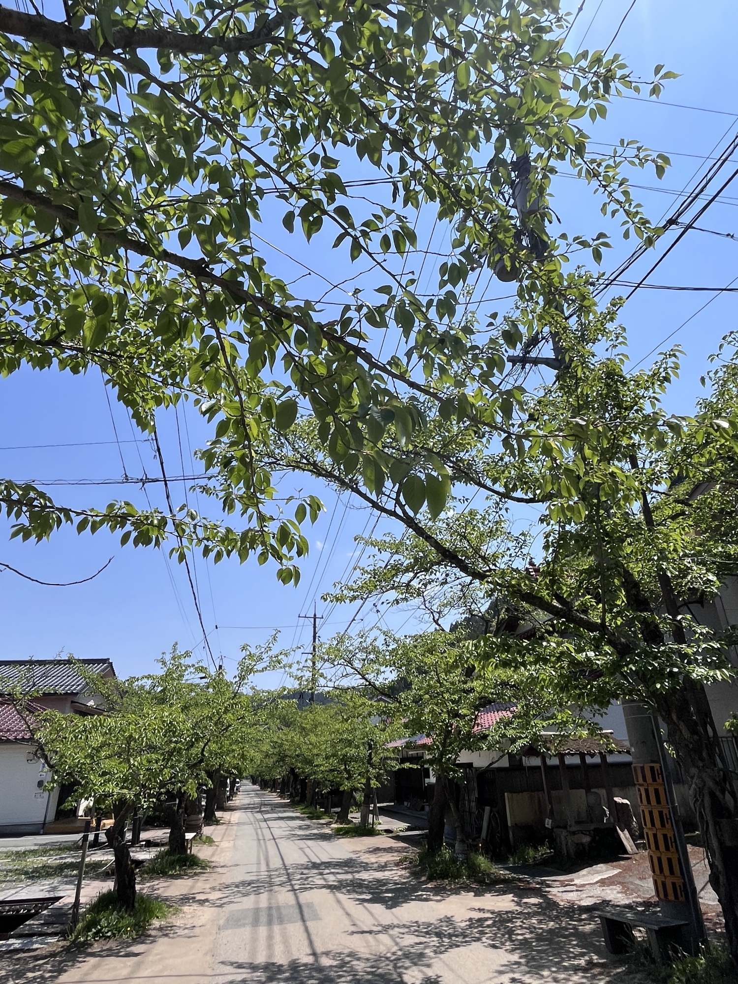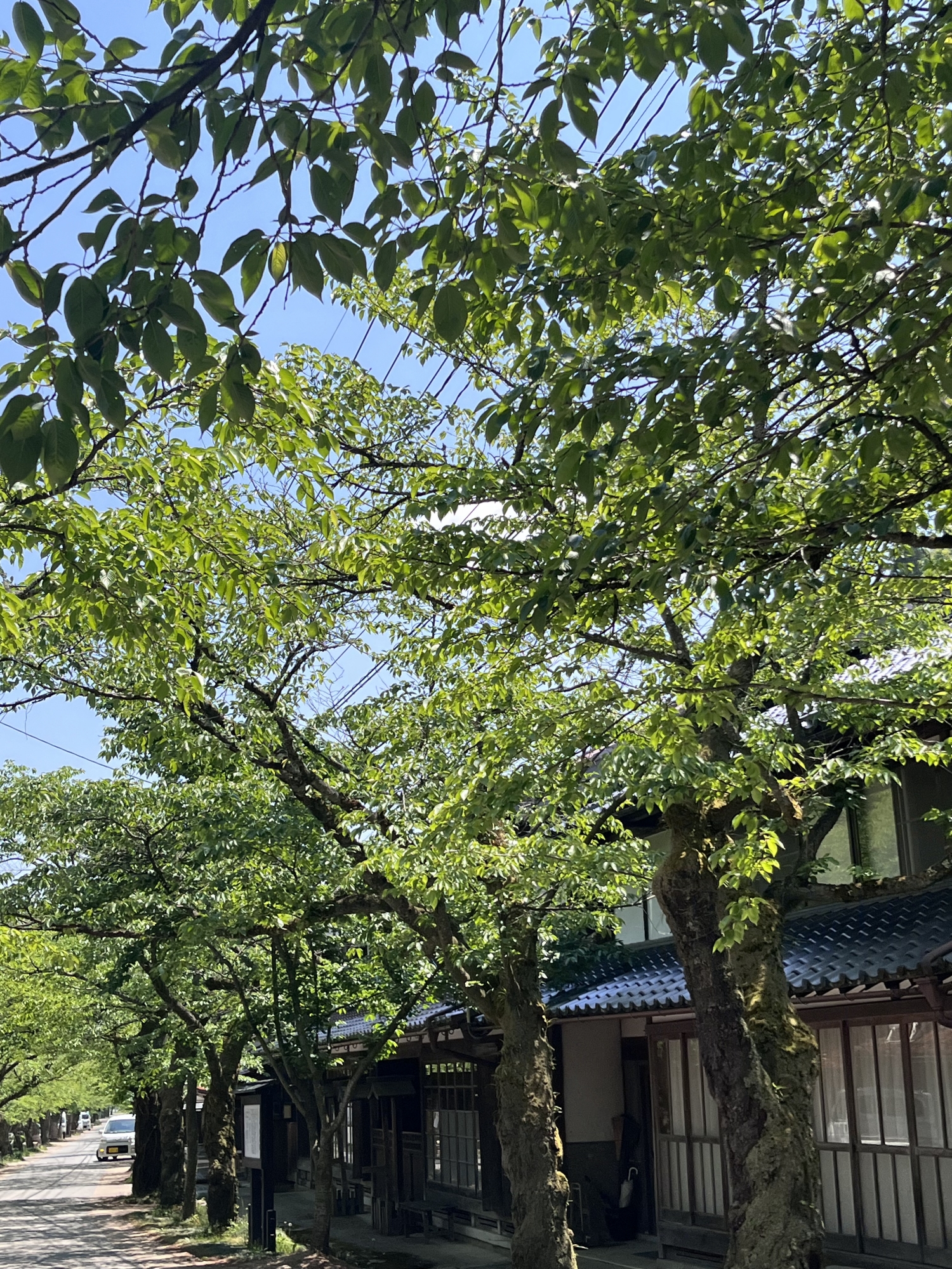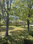 さて、ポストに寄るのですが、桜の木の下……緑が一杯.