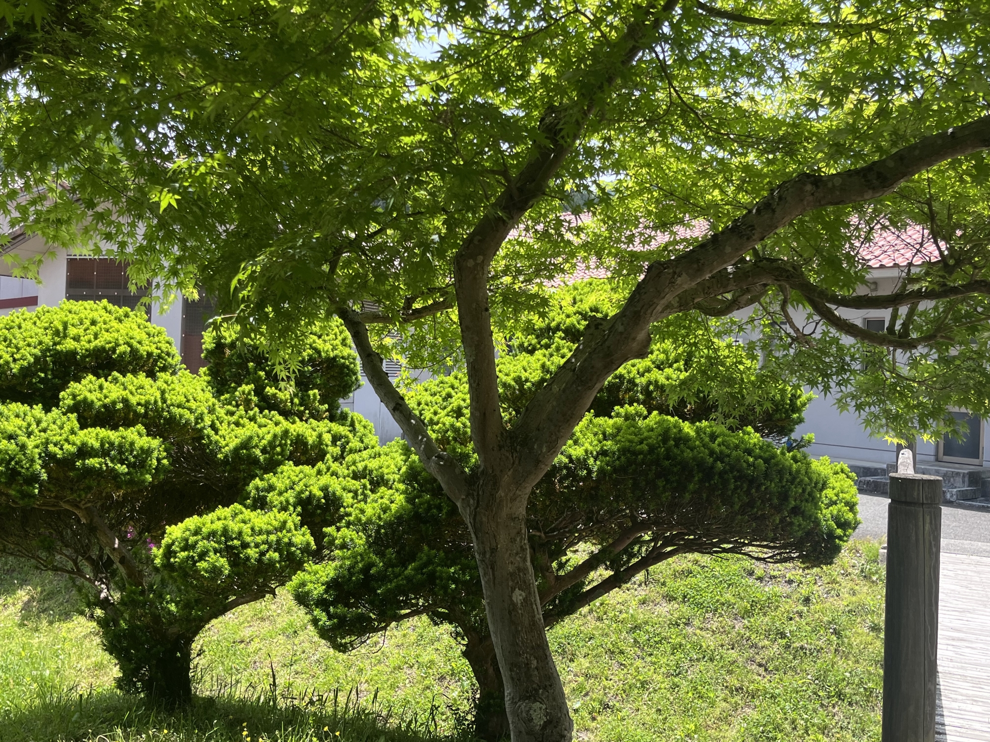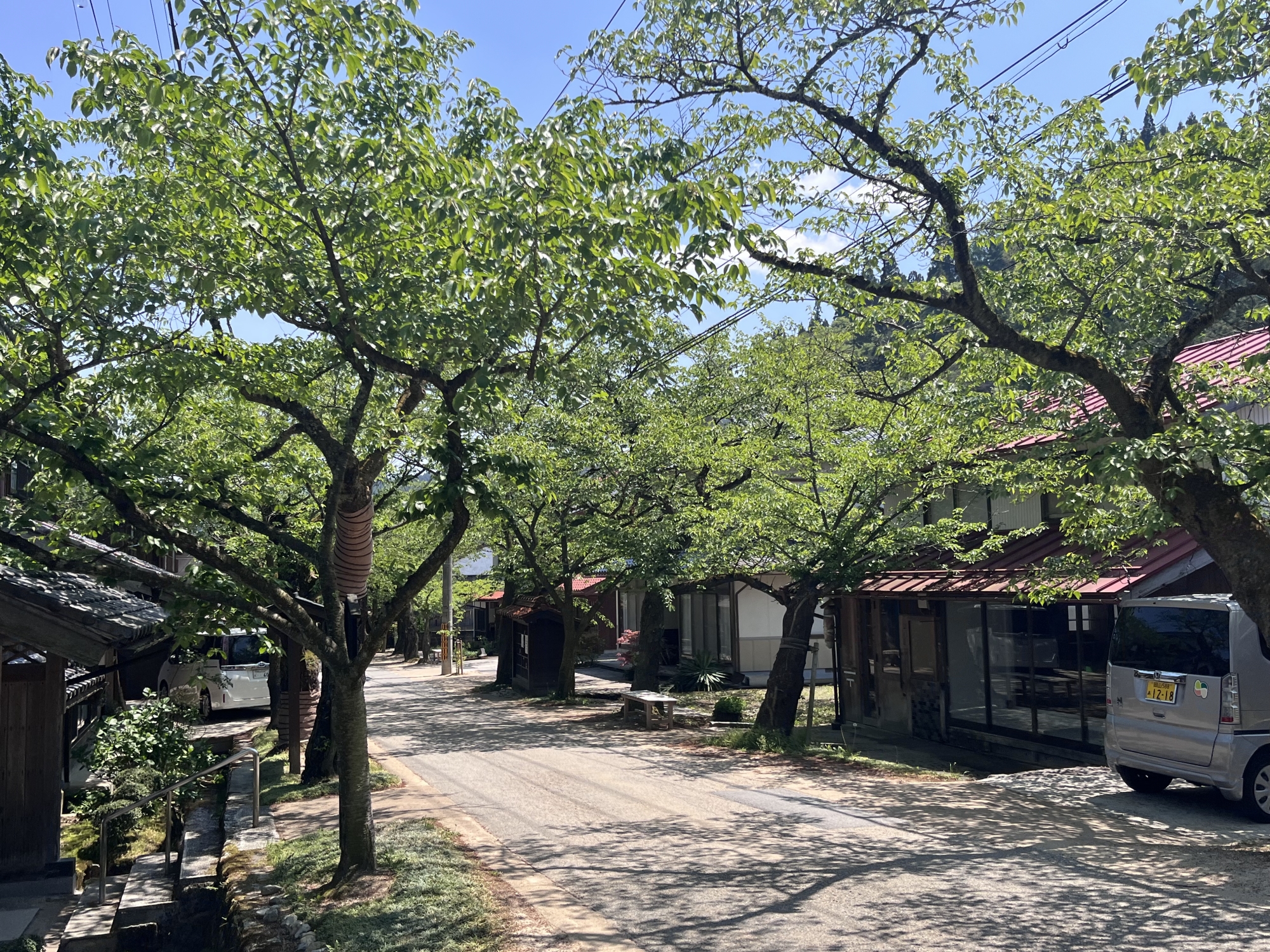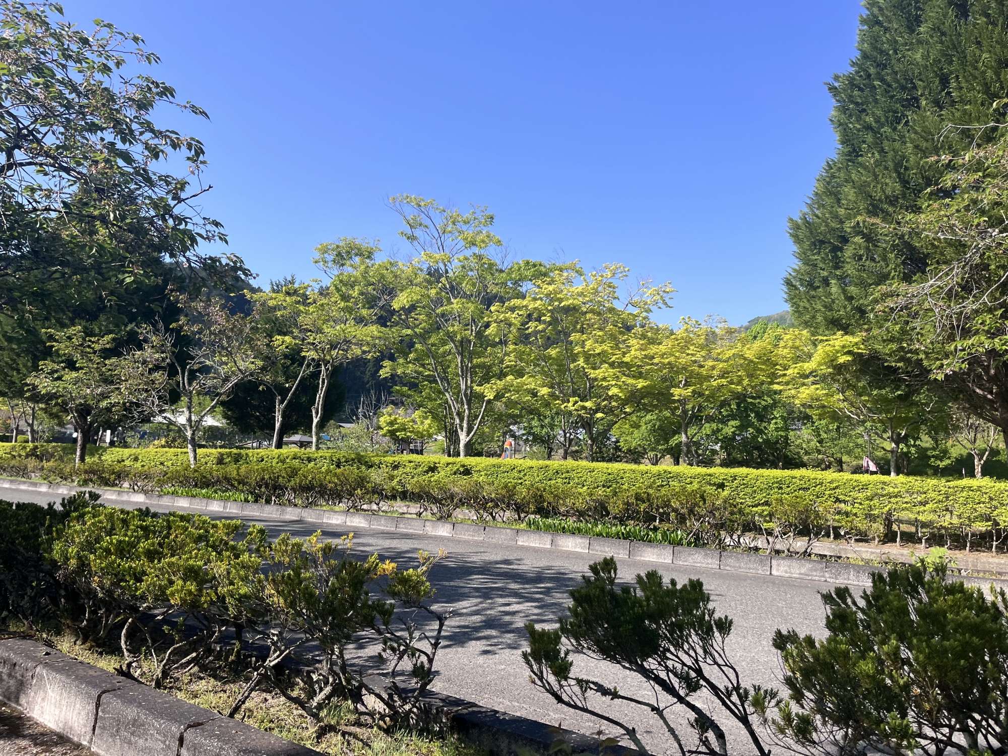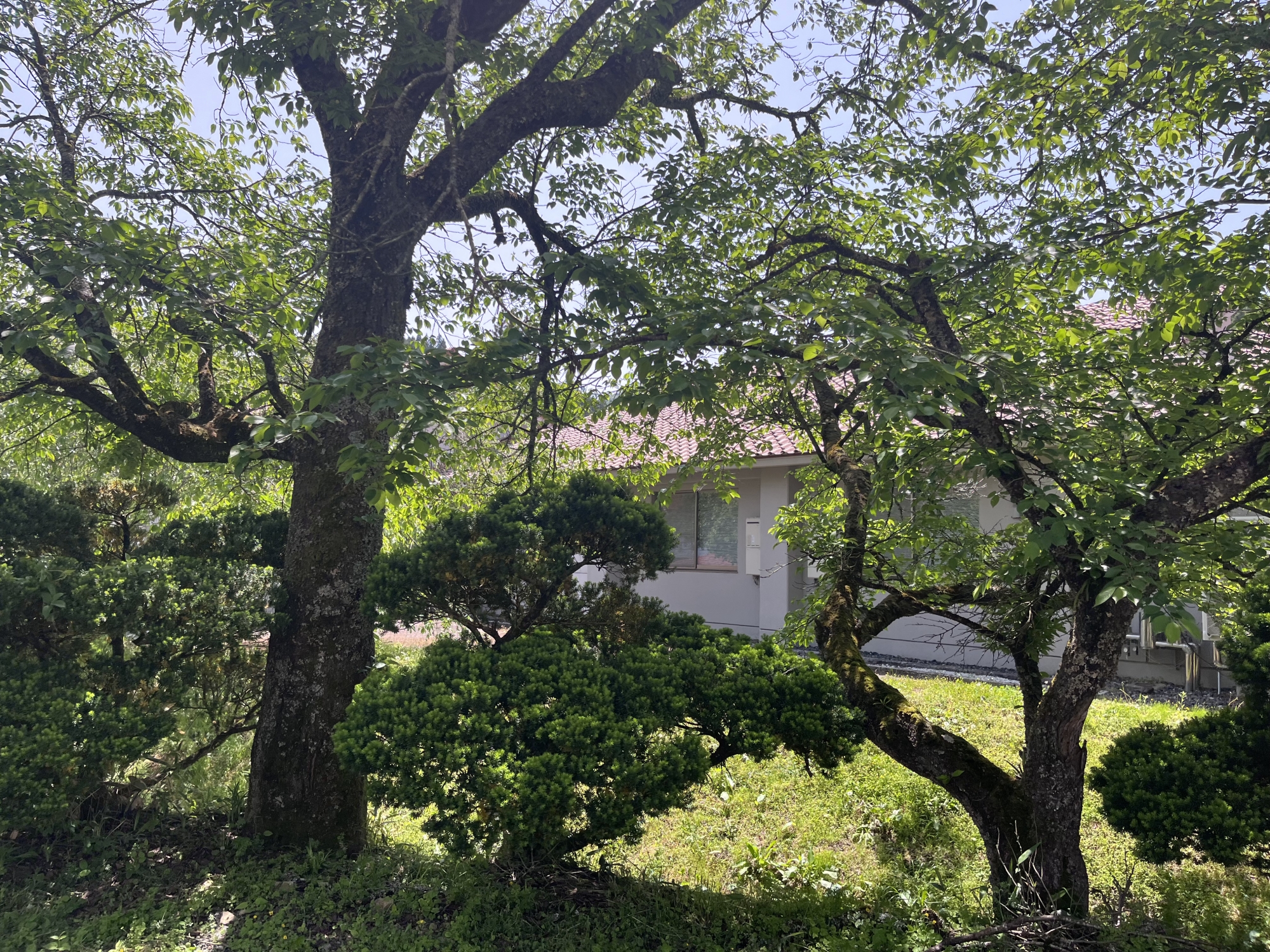 さて、ポストに寄るのですが、桜の木の下……緑が一杯.
