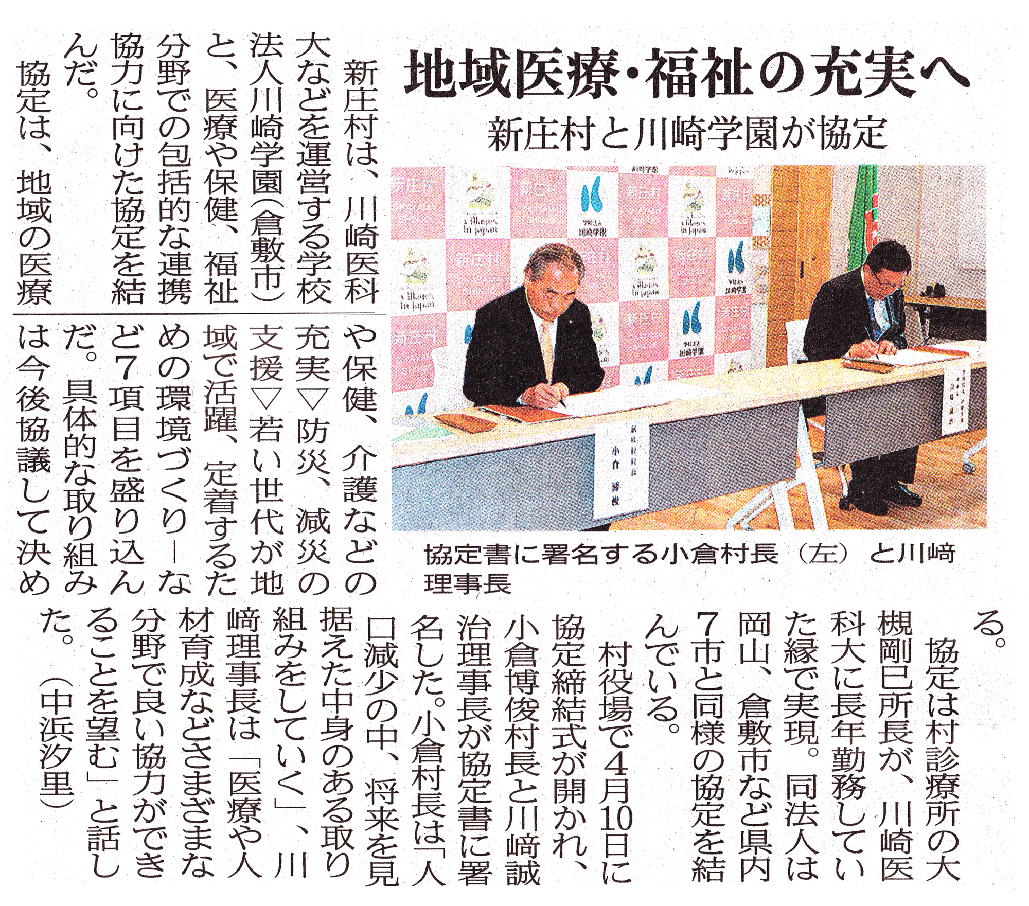 漸く、川崎学園との包括協定の記事が出ました!!! やった、ボクの名前も入っています.