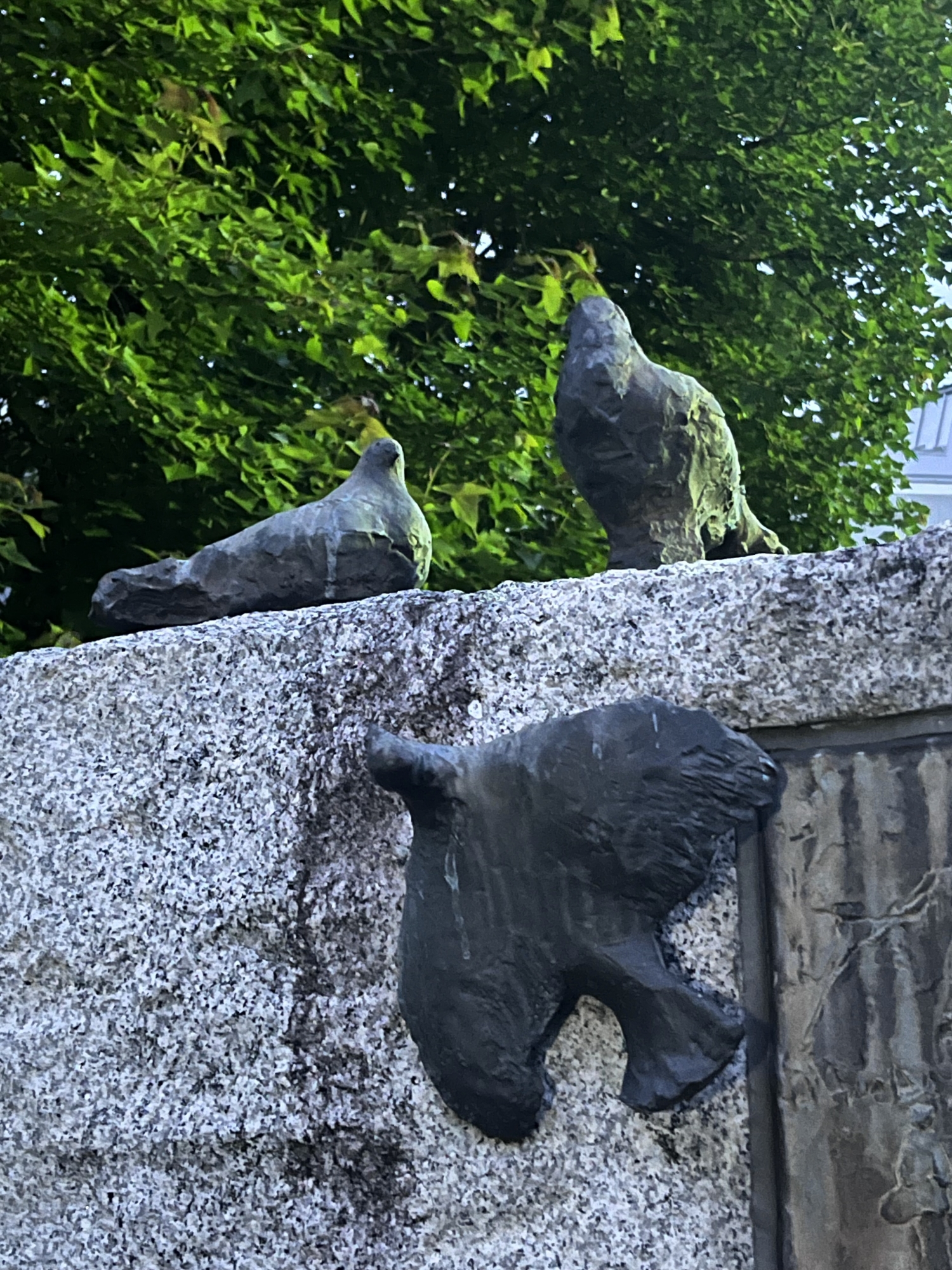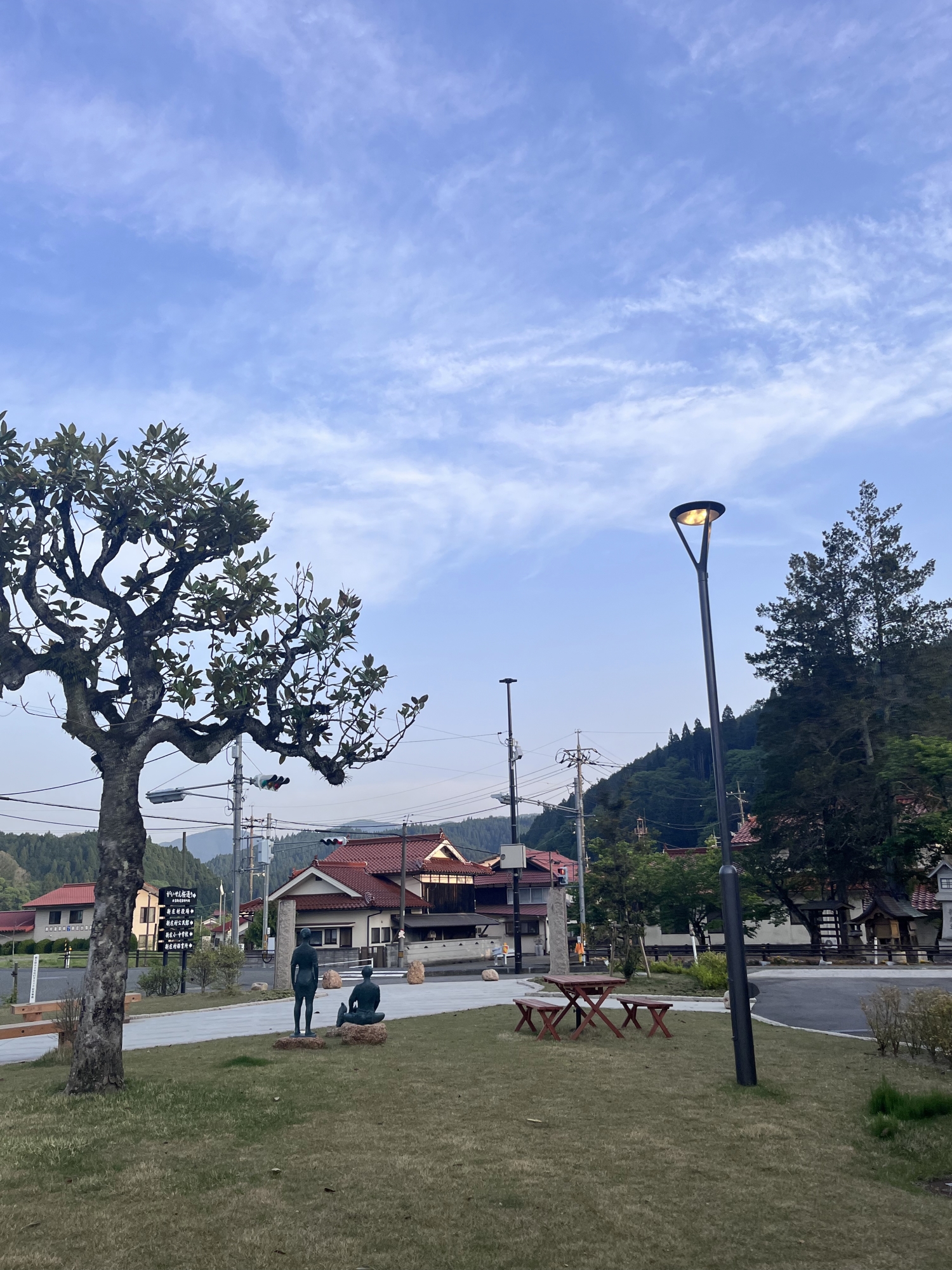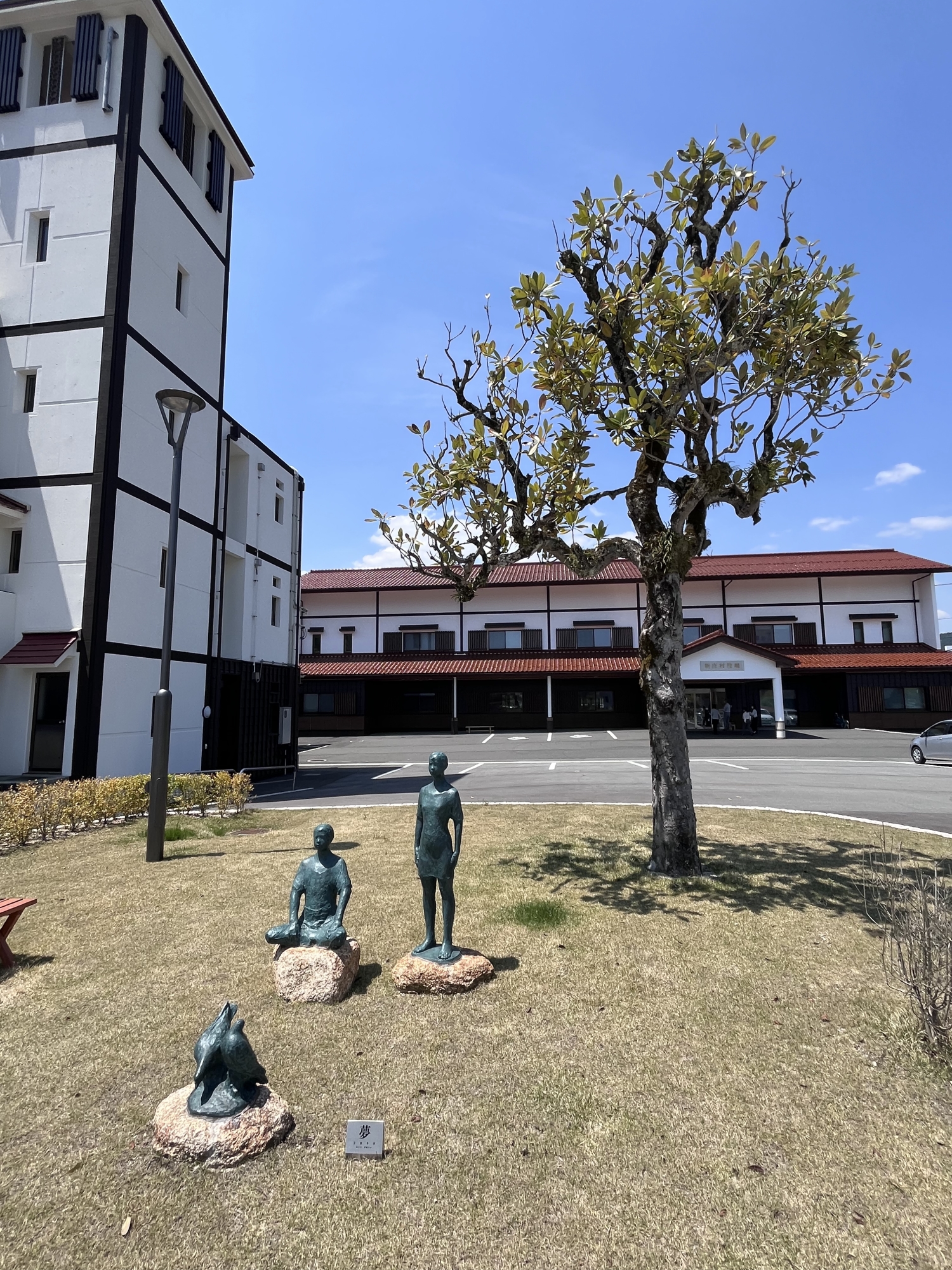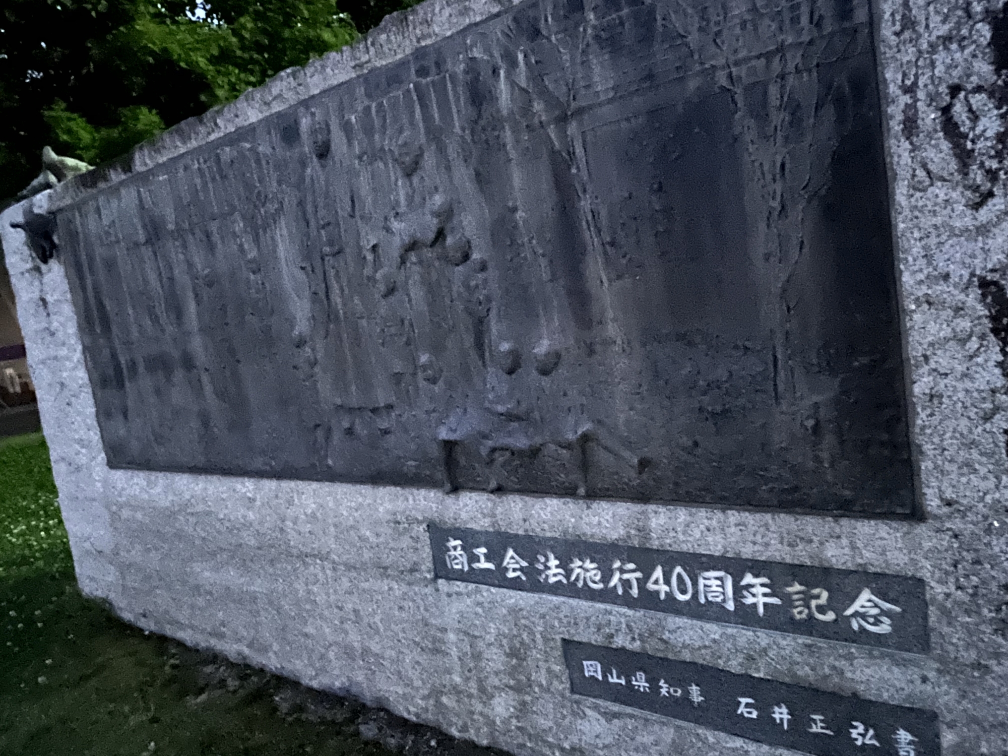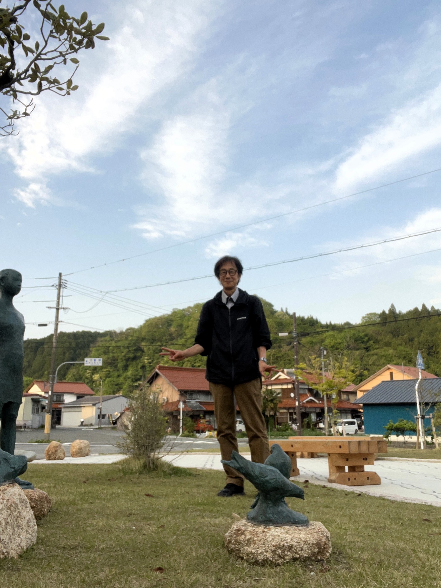 さて、役場前の金盛秀偵先生の彫刻~明日、鴨方のギャラリーに行く予定.