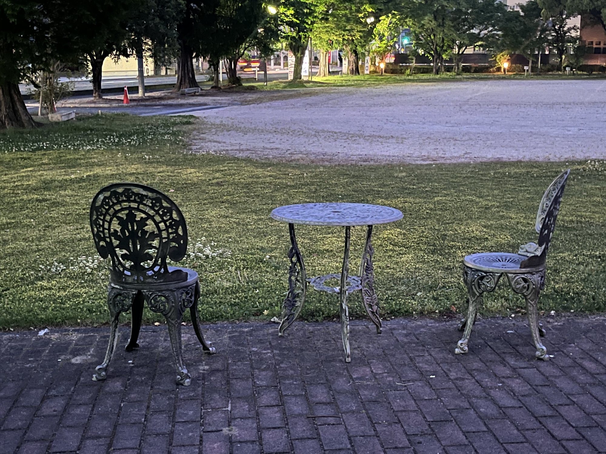 この椅子は、去年のモリゲー(森の芸術祭)で、勝山地区の町角に並んでいましたね、ひしおにもありました.