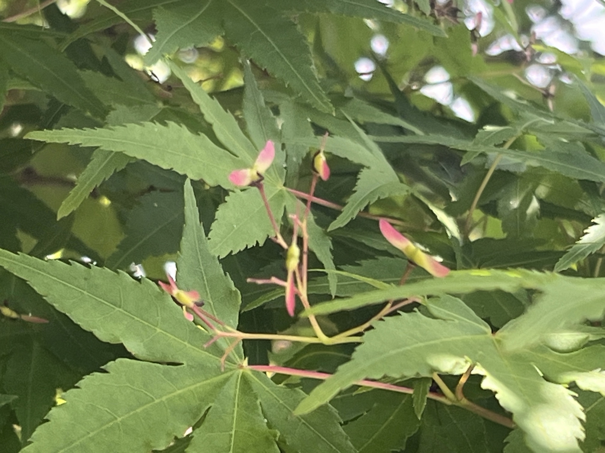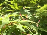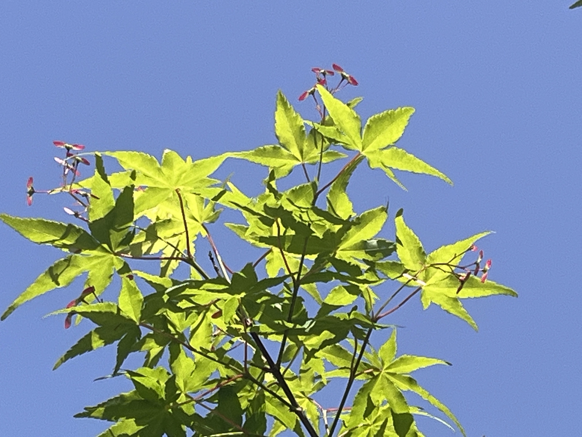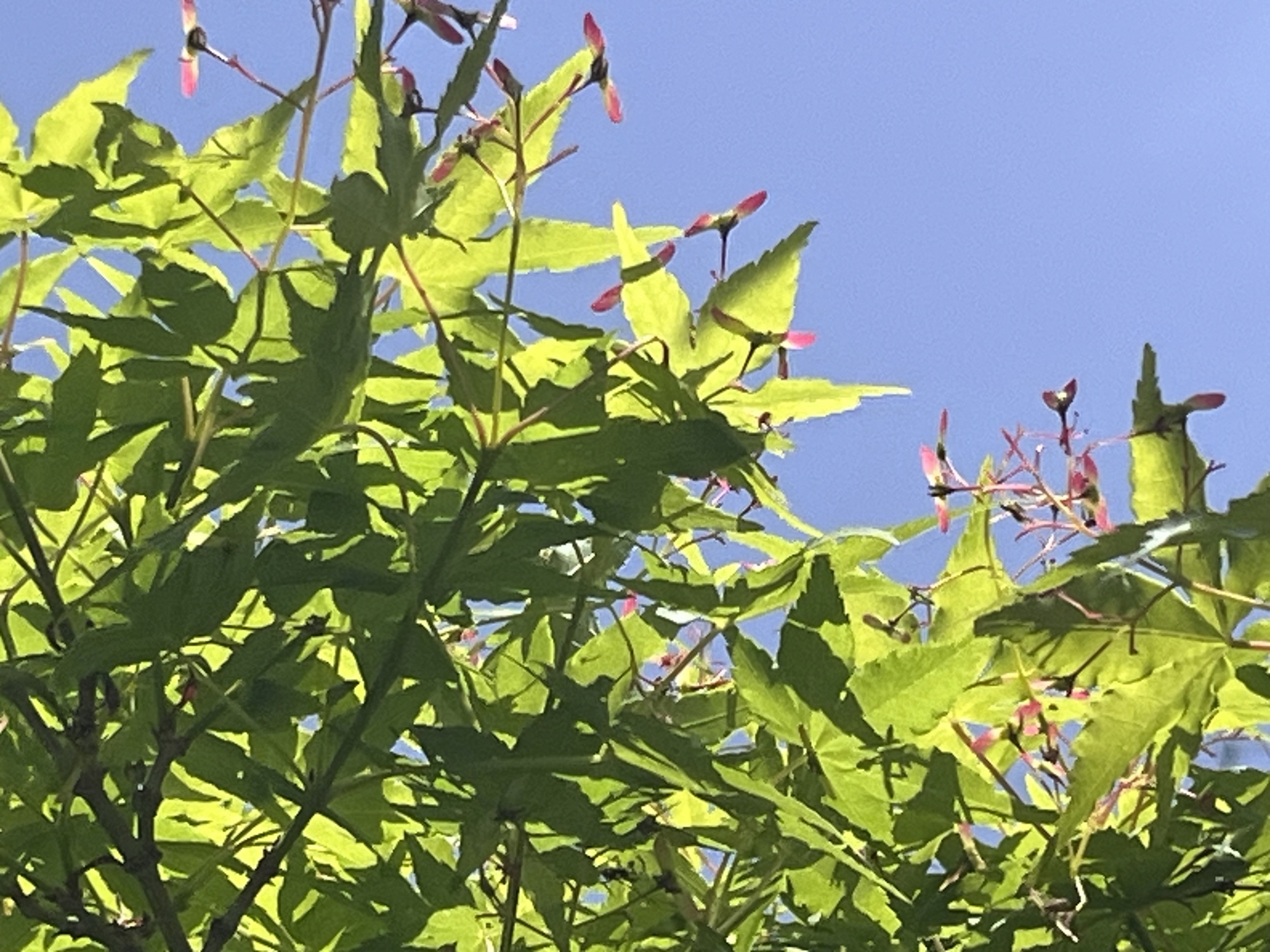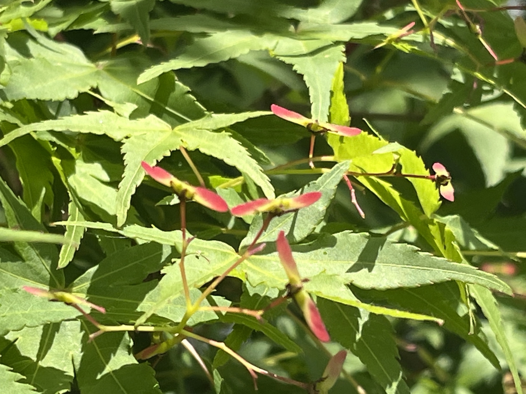 紅葉の緑……と、赤い翼果、種を包む果皮.