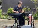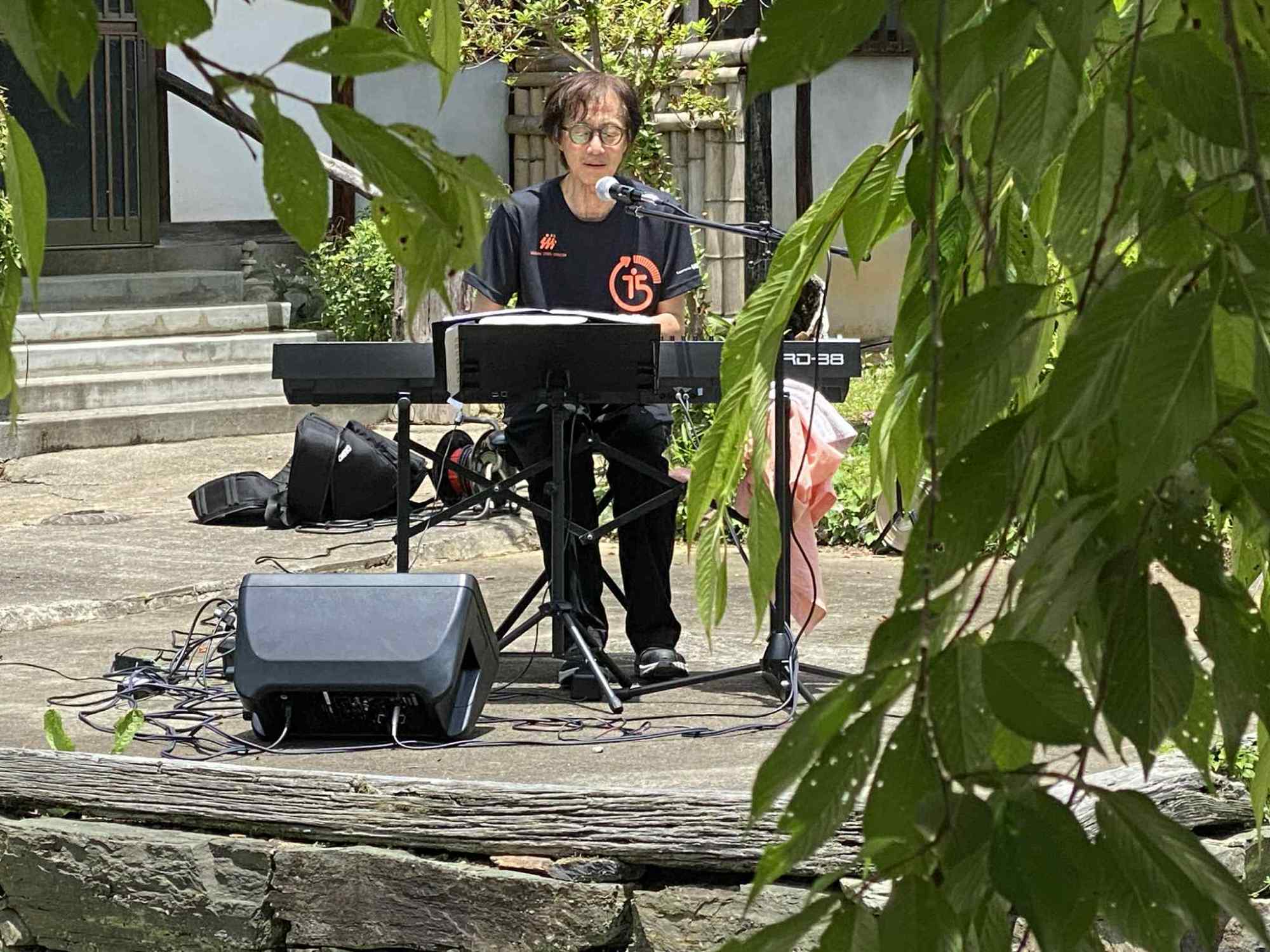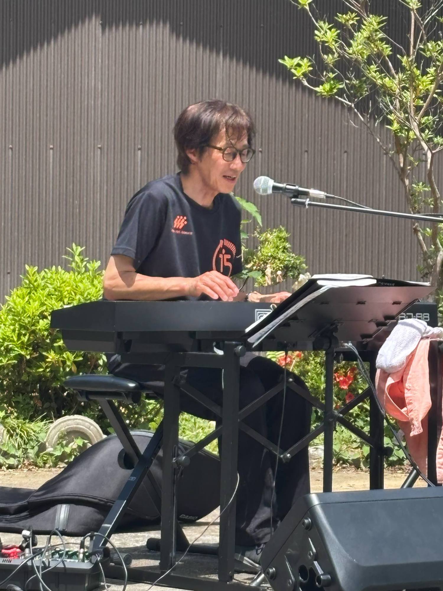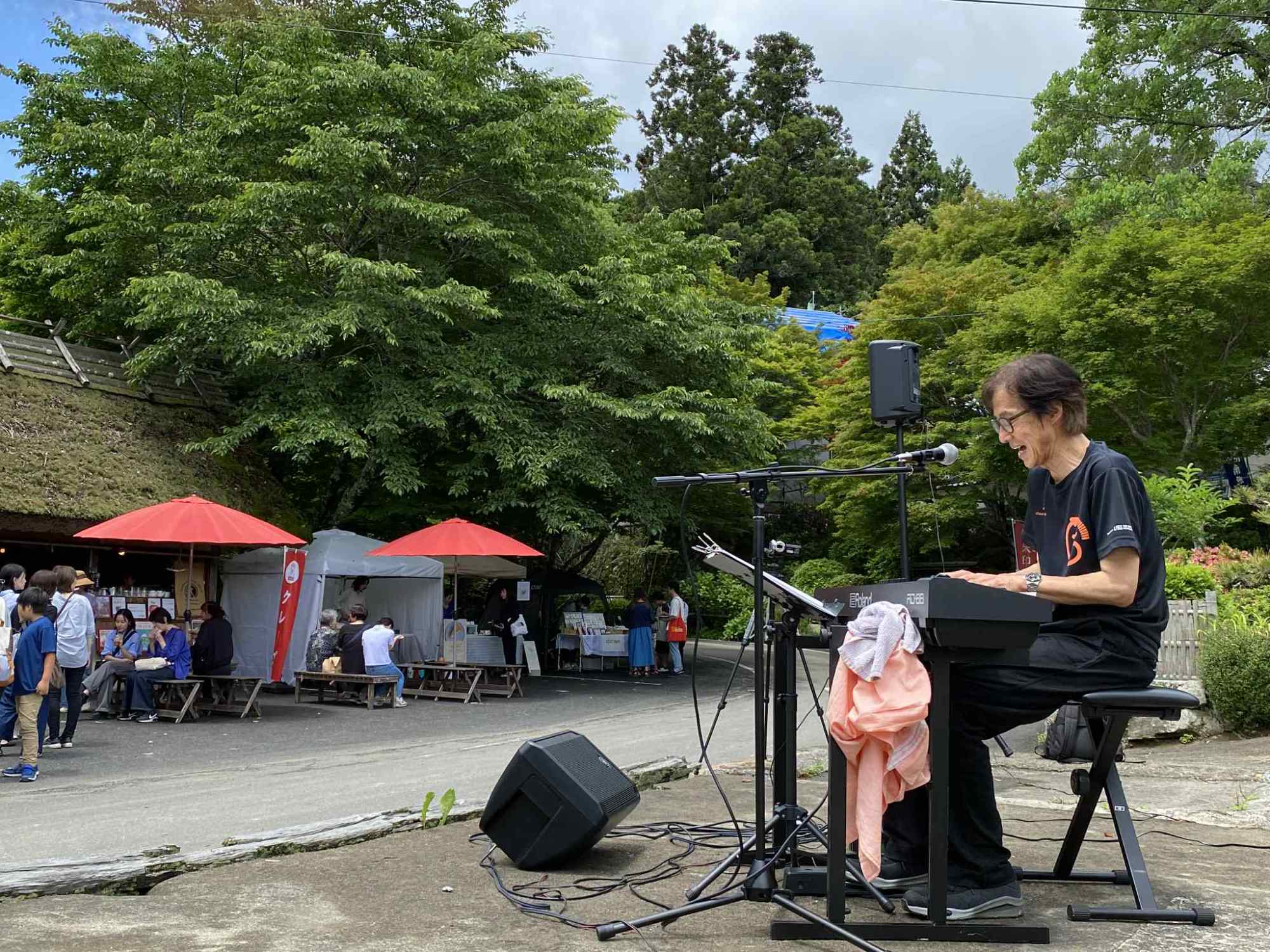 当初は、30-40分くらいかなって思っていましたら、結局、企画のお寺さんからも、自由にやって下さいと.さらに、お寺でのアクティビティー(レンタル浴衣や、御朱印(←もちろん手書き)受け渡しや、その他諸々、加えて、ステージの向かいのお茶屋さんなどなどでも、待っていらっしゃる間に、音楽が聴こえているのが良いですって云って下さいましたので、まずは、1時間、務めました.でも、昼休みに、企画のHさんから、午後もお願いします的に云って頂いて、嬉しくなって、午後も1時間、務めました.ご当地ということで「山寺の和尚さん」は午前も午後も歌いました.午前は「あじさい祭り」として雨や六月といったテーマに沿って選曲しましたが、午後はオリジナル中心になりました.