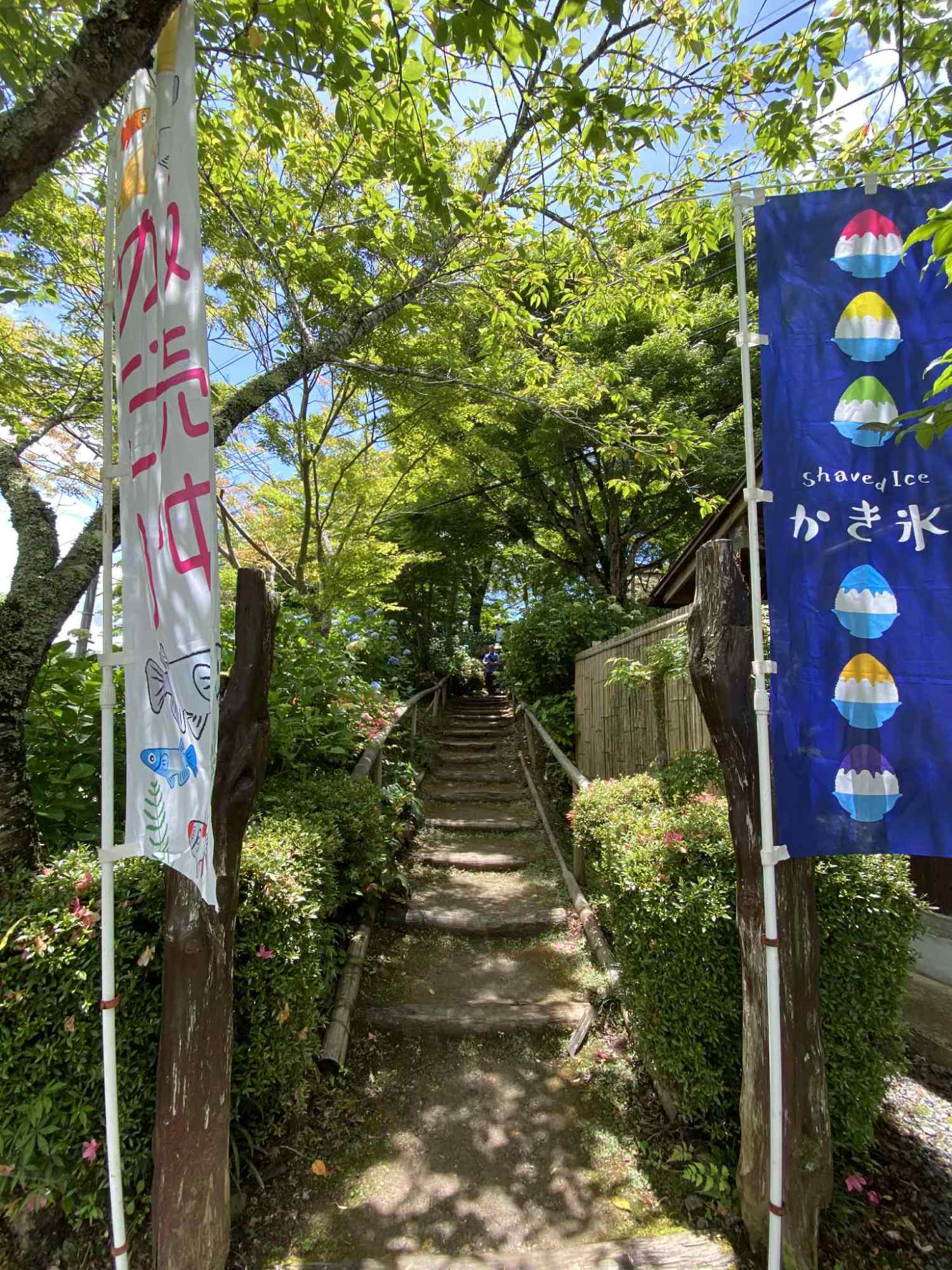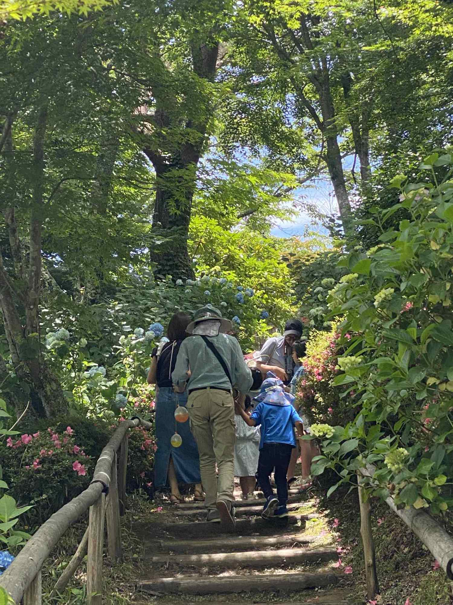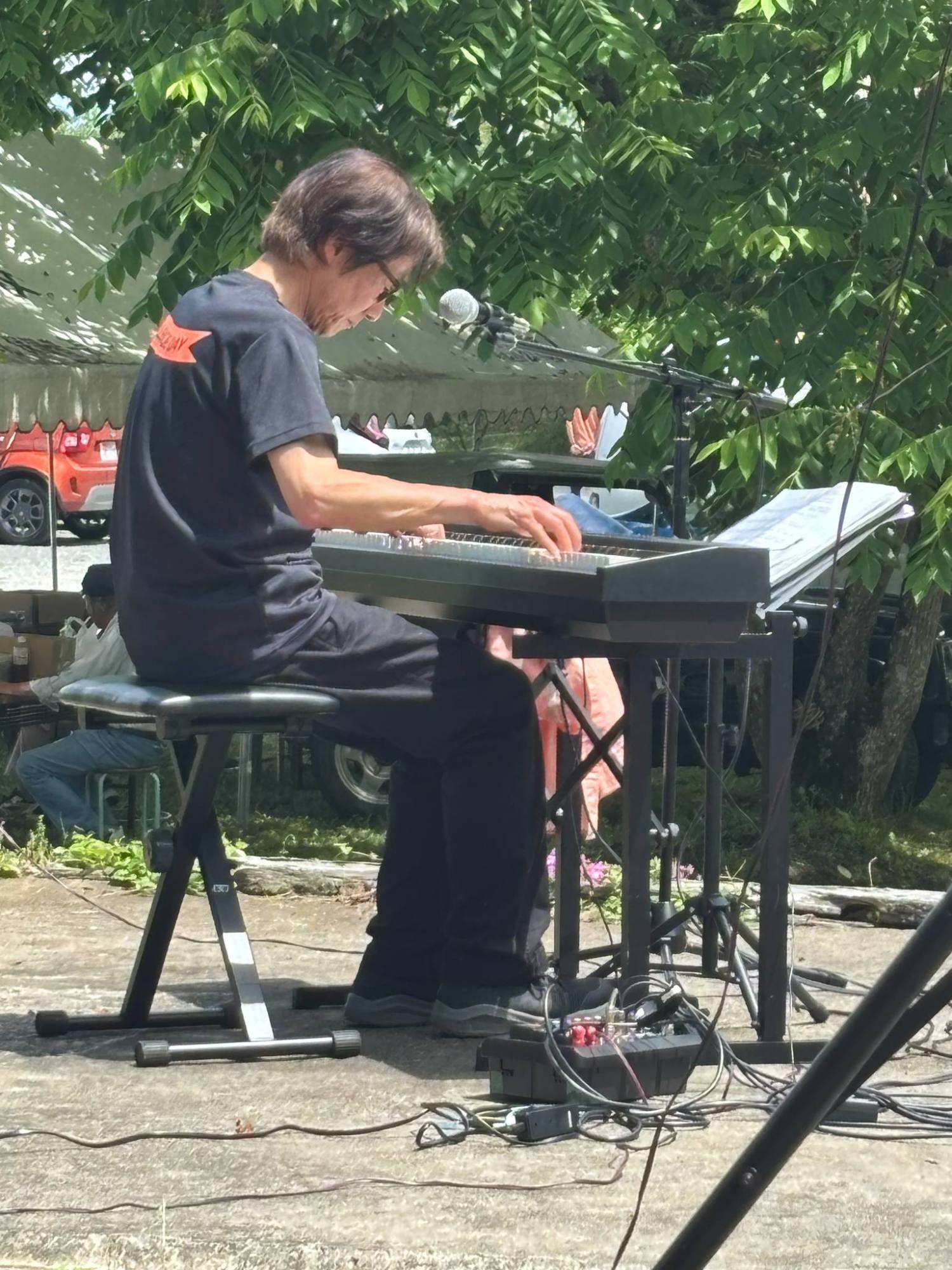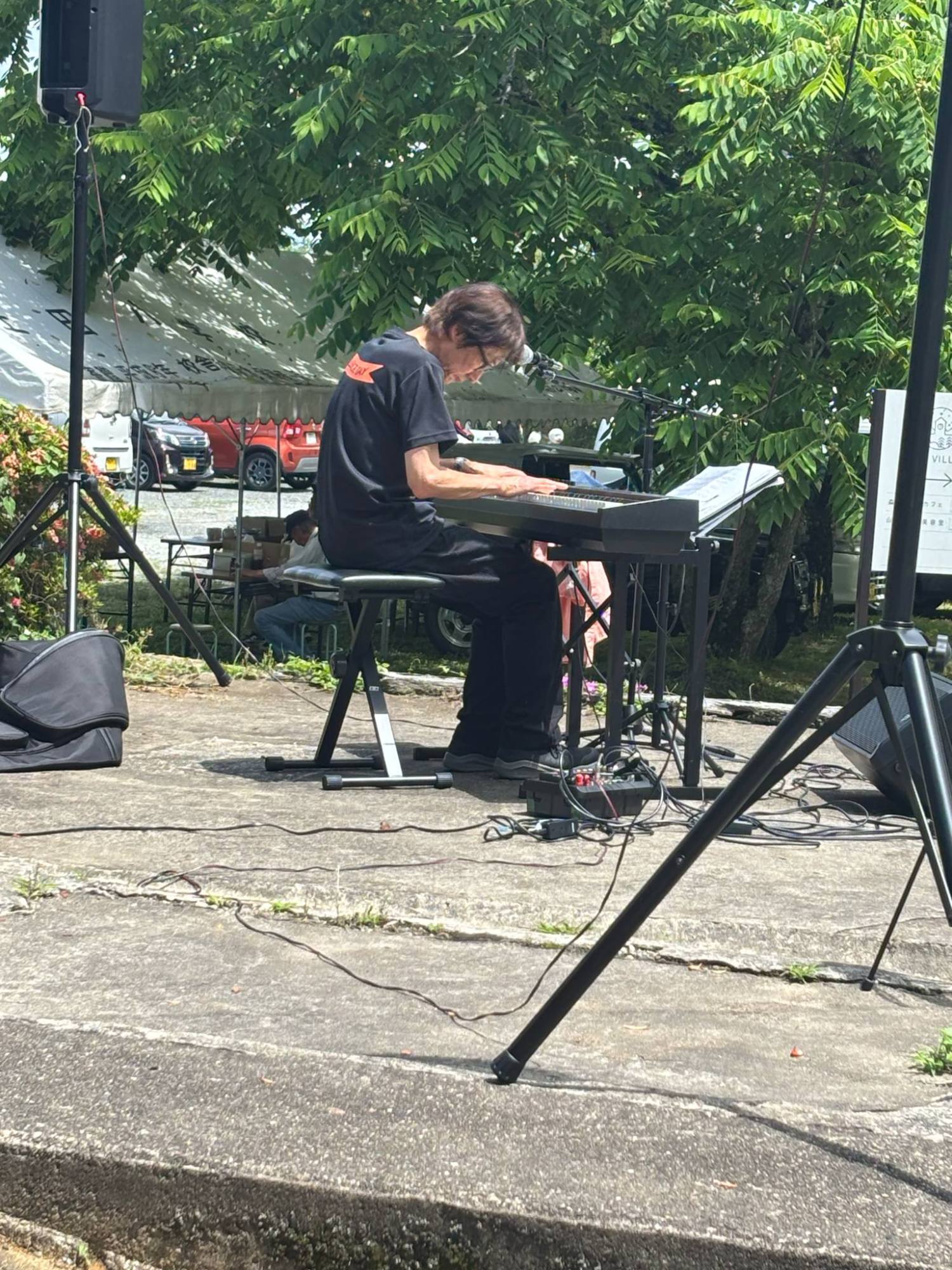 当初は、30-40分くらいかなって思っていましたら、結局、企画のお寺さんからも、自由にやって下さいと.さらに、お寺でのアクティビティー(レンタル浴衣や、御朱印(←もちろん手書き)受け渡しや、その他諸々、加えて、ステージの向かいのお茶屋さんなどなどでも、待っていらっしゃる間に、音楽が聴こえているのが良いですって云って下さいましたので、まずは、1時間、務めました.でも、昼休みに、企画のHさんから、午後もお願いします的に云って頂いて、嬉しくなって、午後も1時間、務めました.ご当地ということで「山寺の和尚さん」は午前も午後も歌いました.午前は「あじさい祭り」として雨や六月といったテーマに沿って選曲しましたが、午後はオリジナル中心になりました.