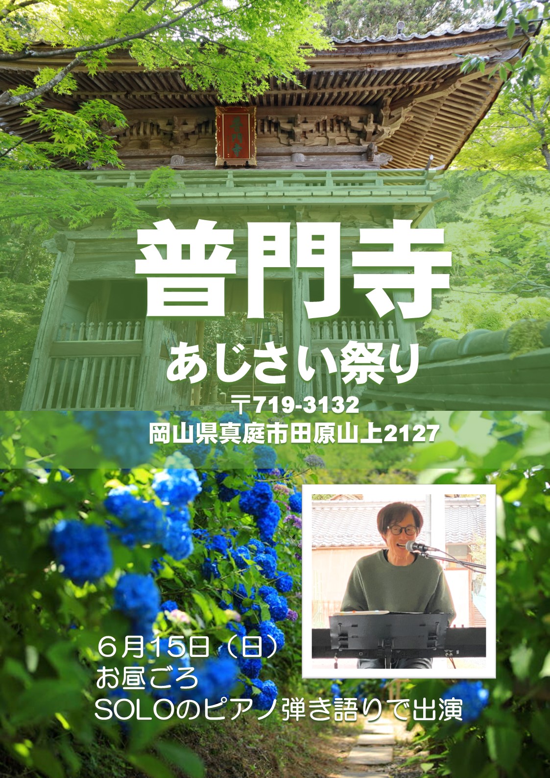 今日は真庭市田原山上:普門寺さんでの「あじさい祭り」blue day LIVEです.