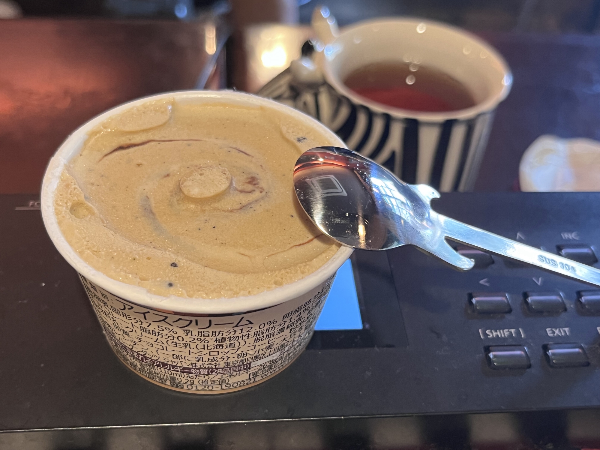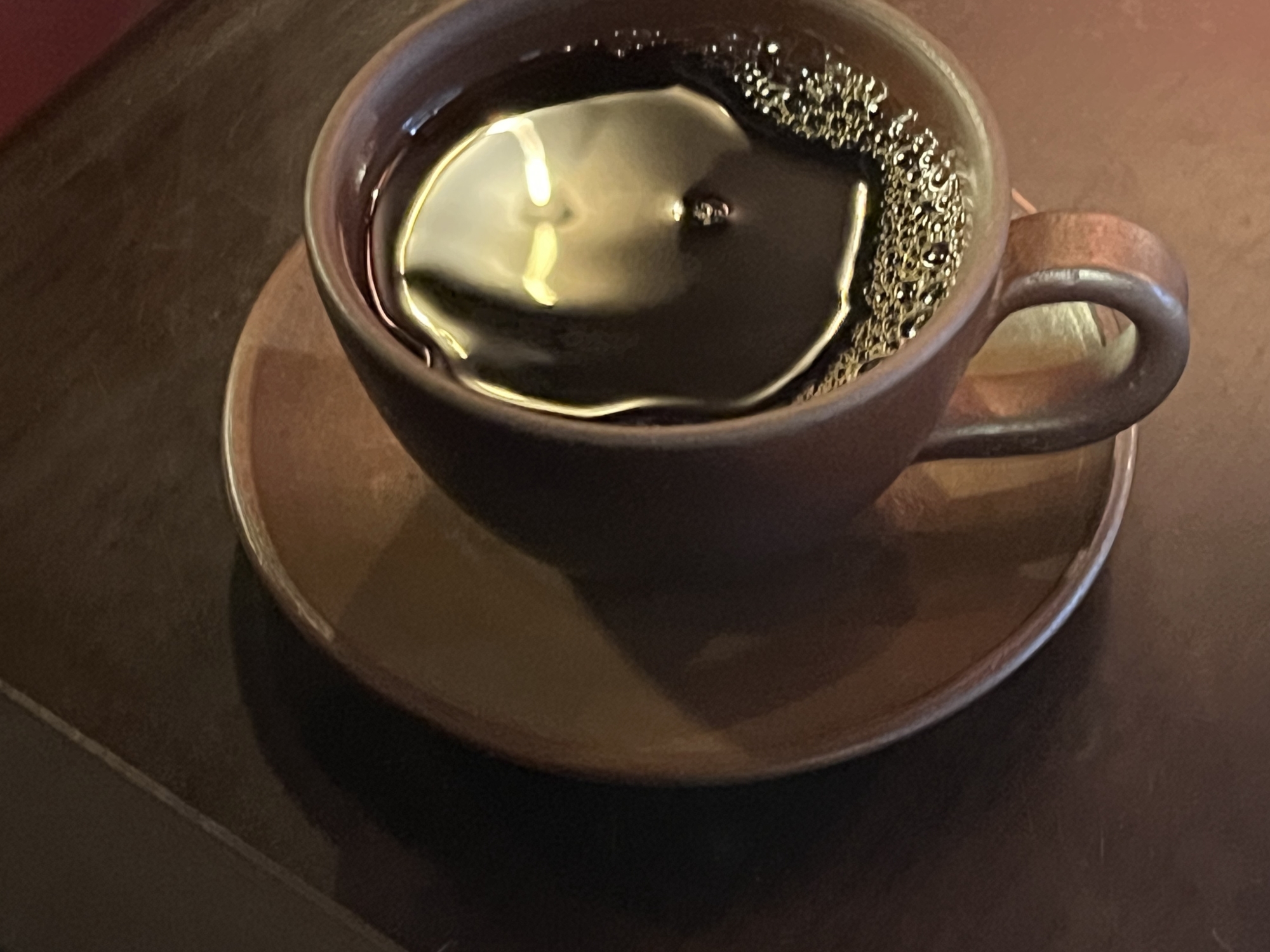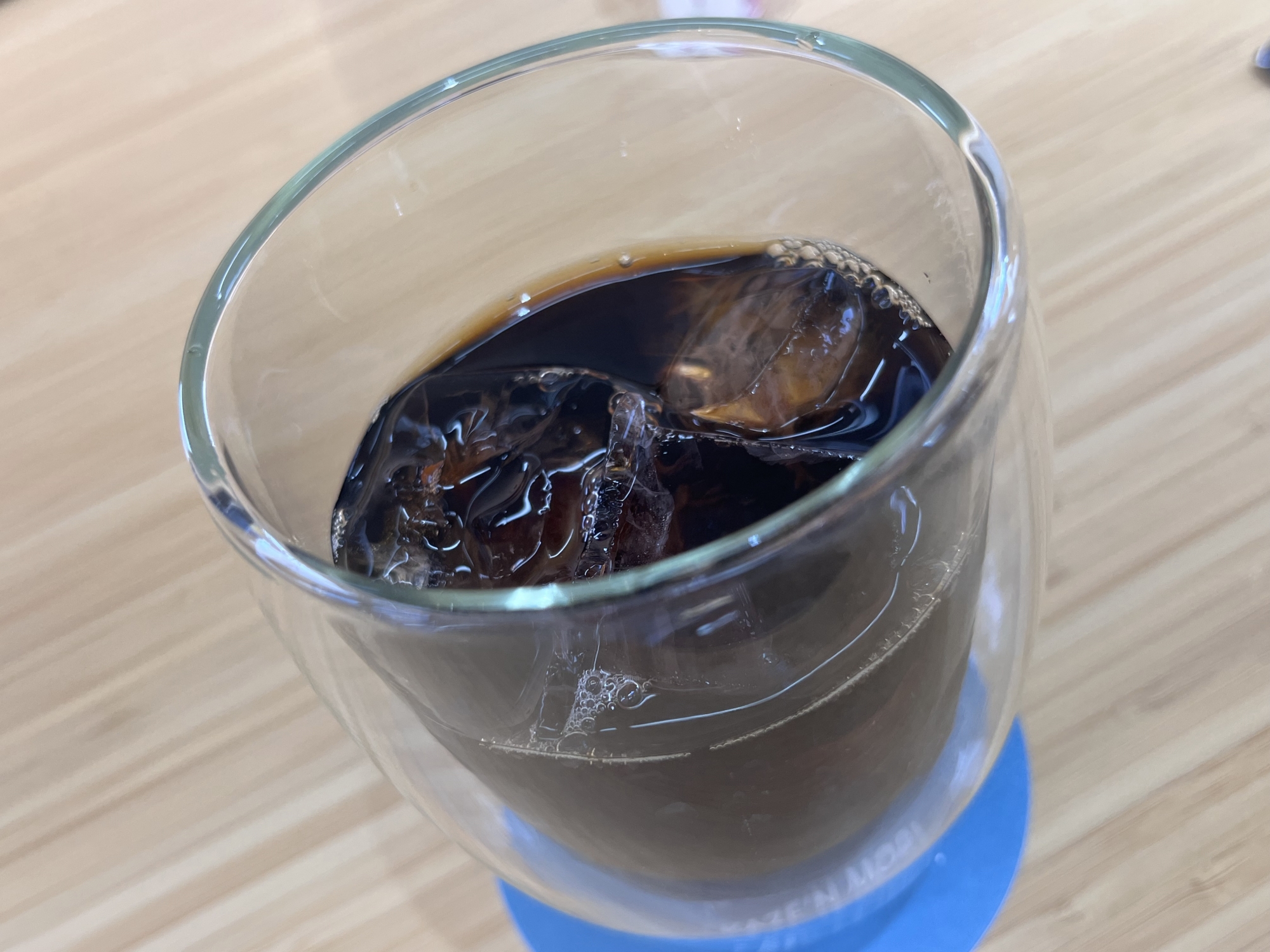 アイスコーヒーを……風ん森って、この辺りの地名だそうで、山からの風が夕刻には舞うそうです.