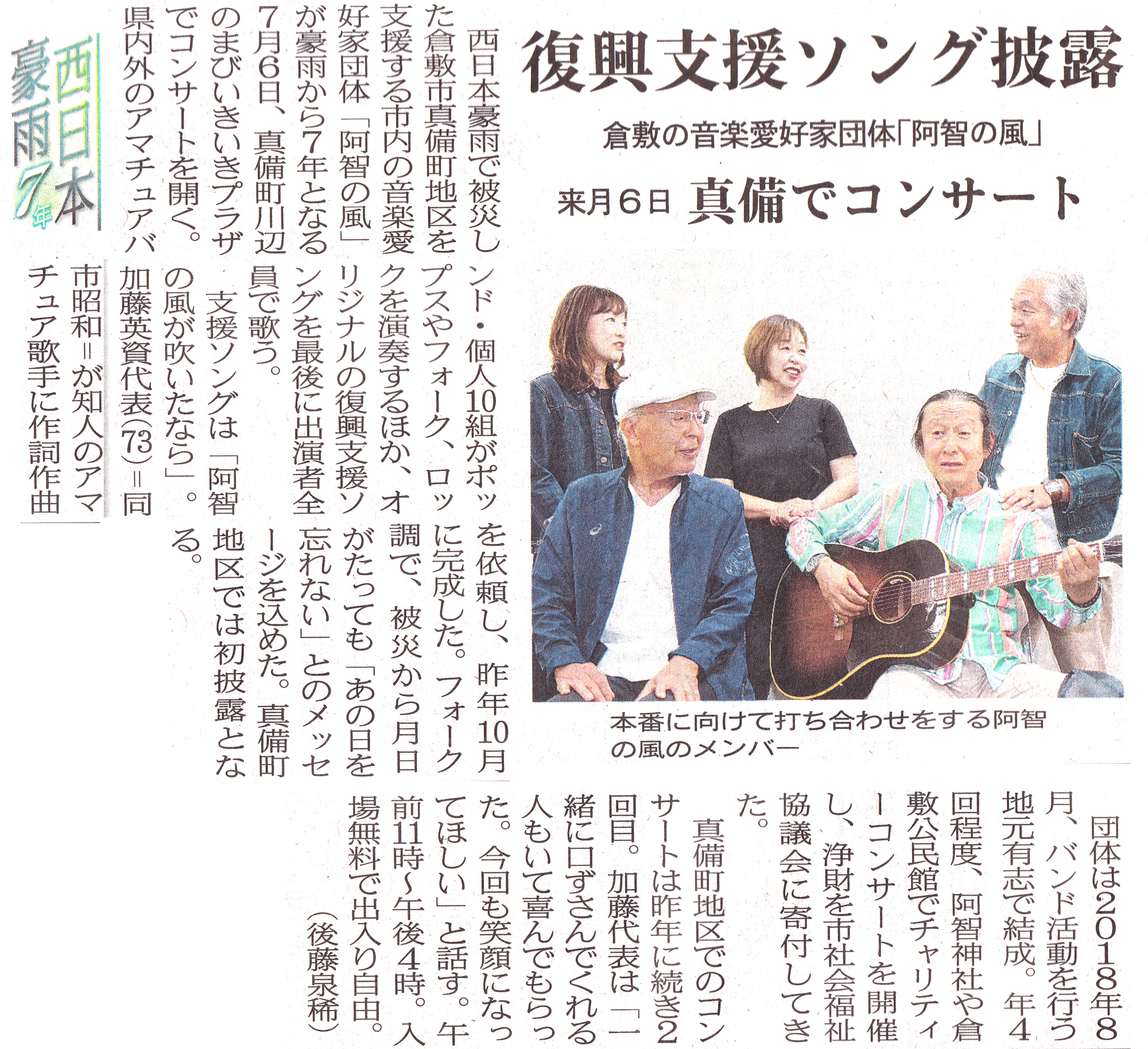 山陽新聞の朝刊・備前版で、今度の阿智の風音楽祭の7月6日の記事が.