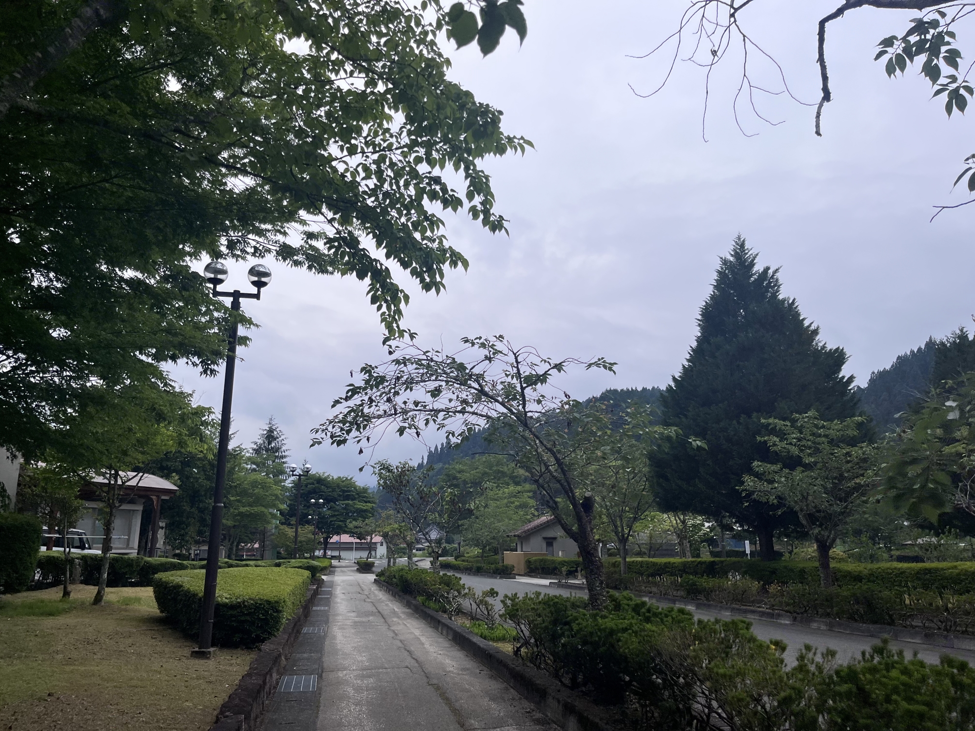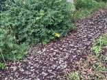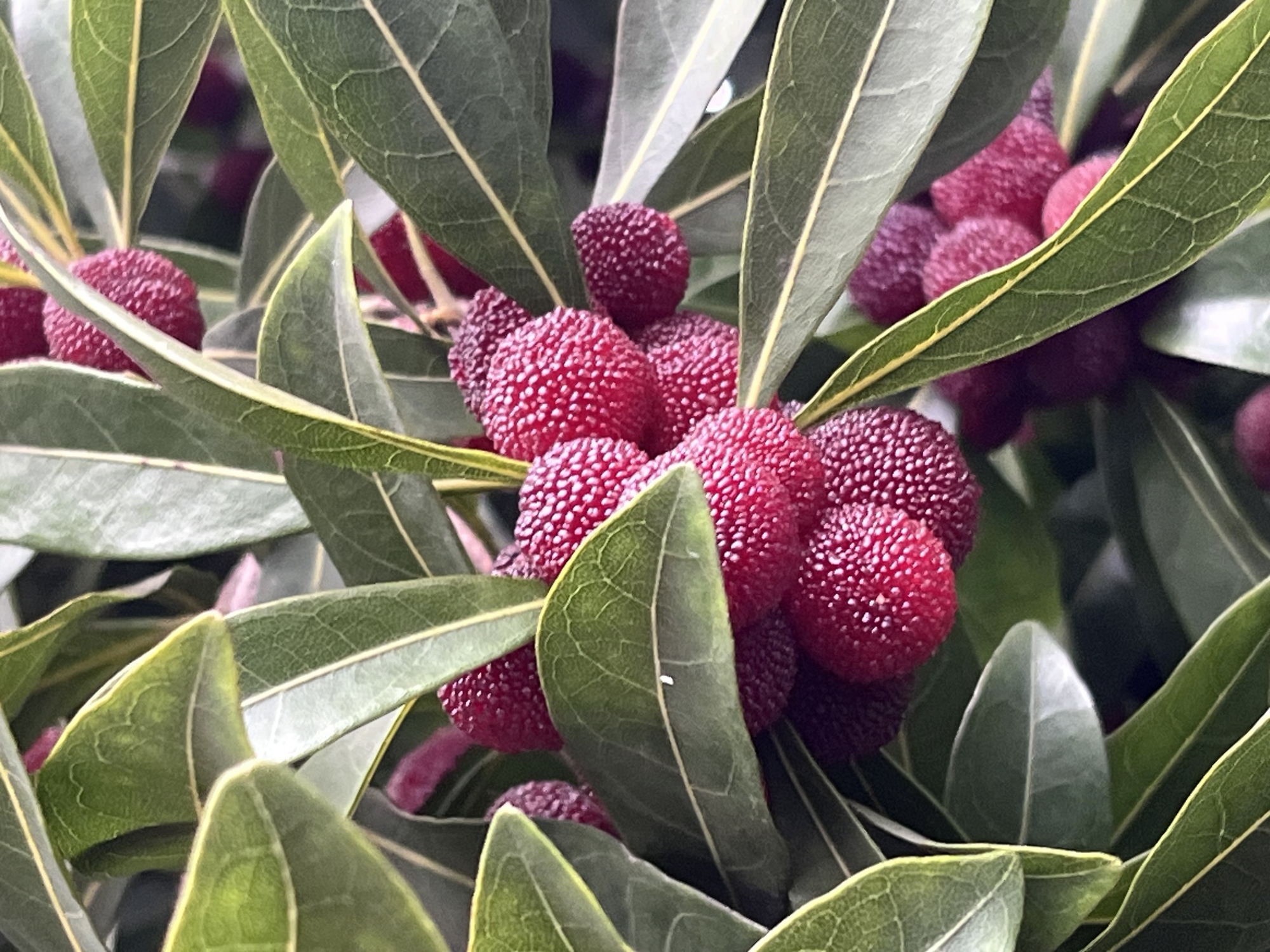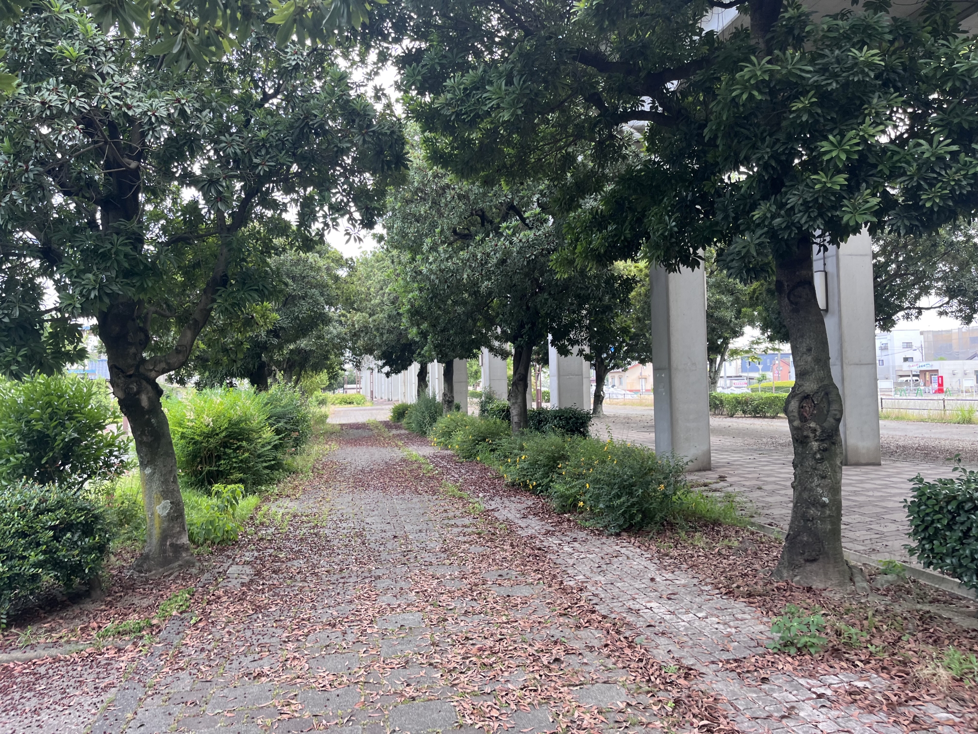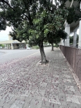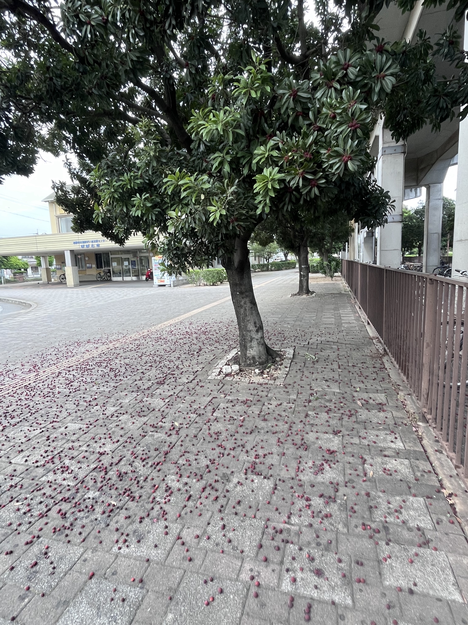 ここは、ヤマモモ並木で……なんていうか、実がすごく落ちています.踏み切れない.