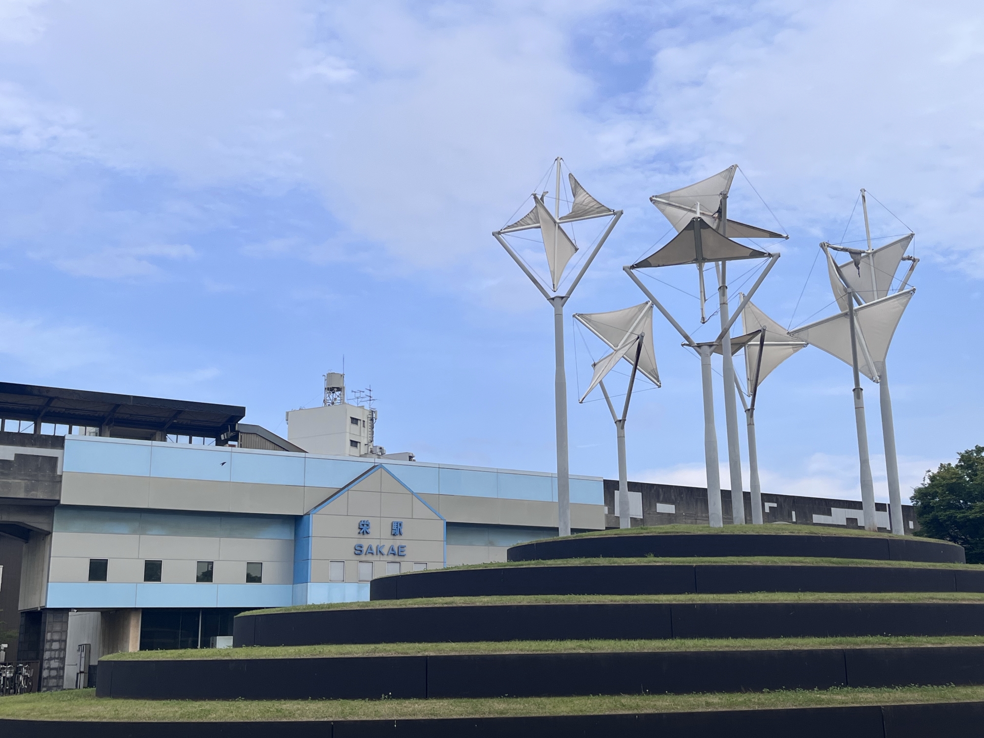 近くはピーポー(水島臨海鉄道)の栄駅.水島地区は、当初、名古屋の航空機製造工場が移転して来たので、栄とか弥生なんて地名も.