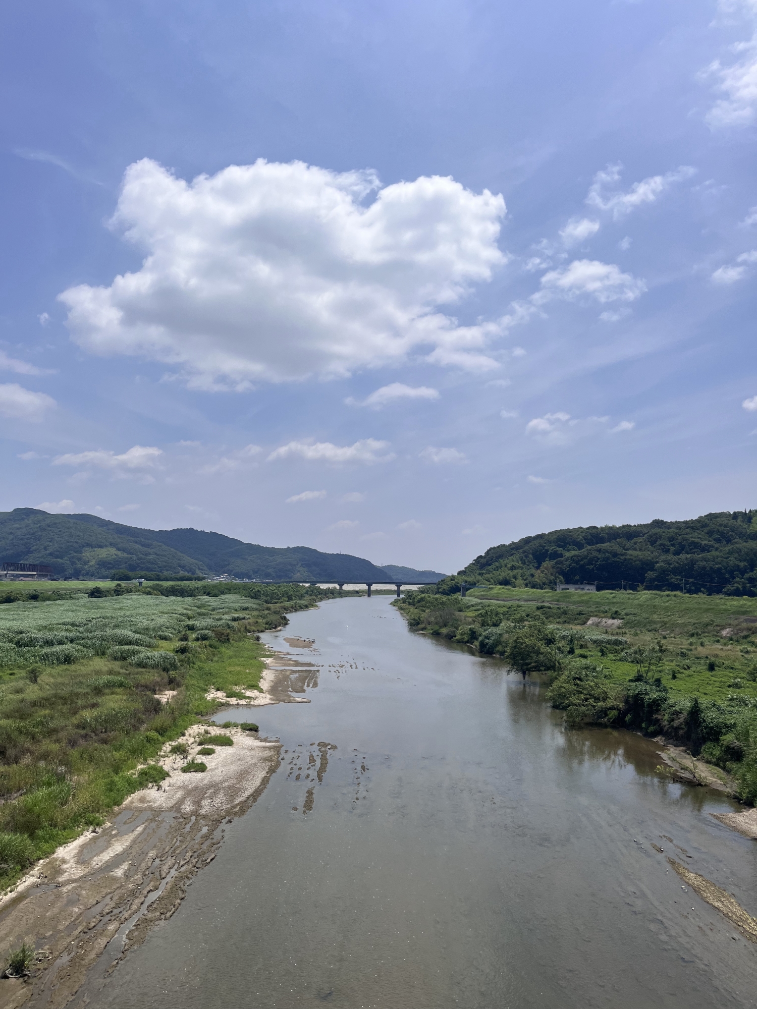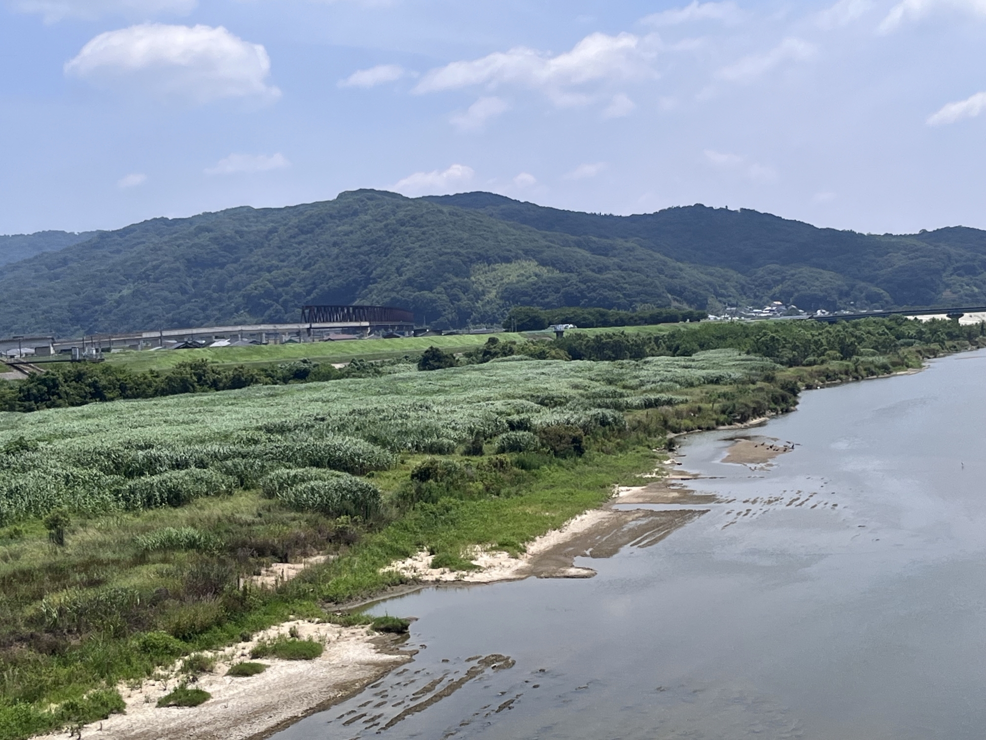 今日は、水量も少ないけれど……7年前には堤防を越えて……逆流して…….