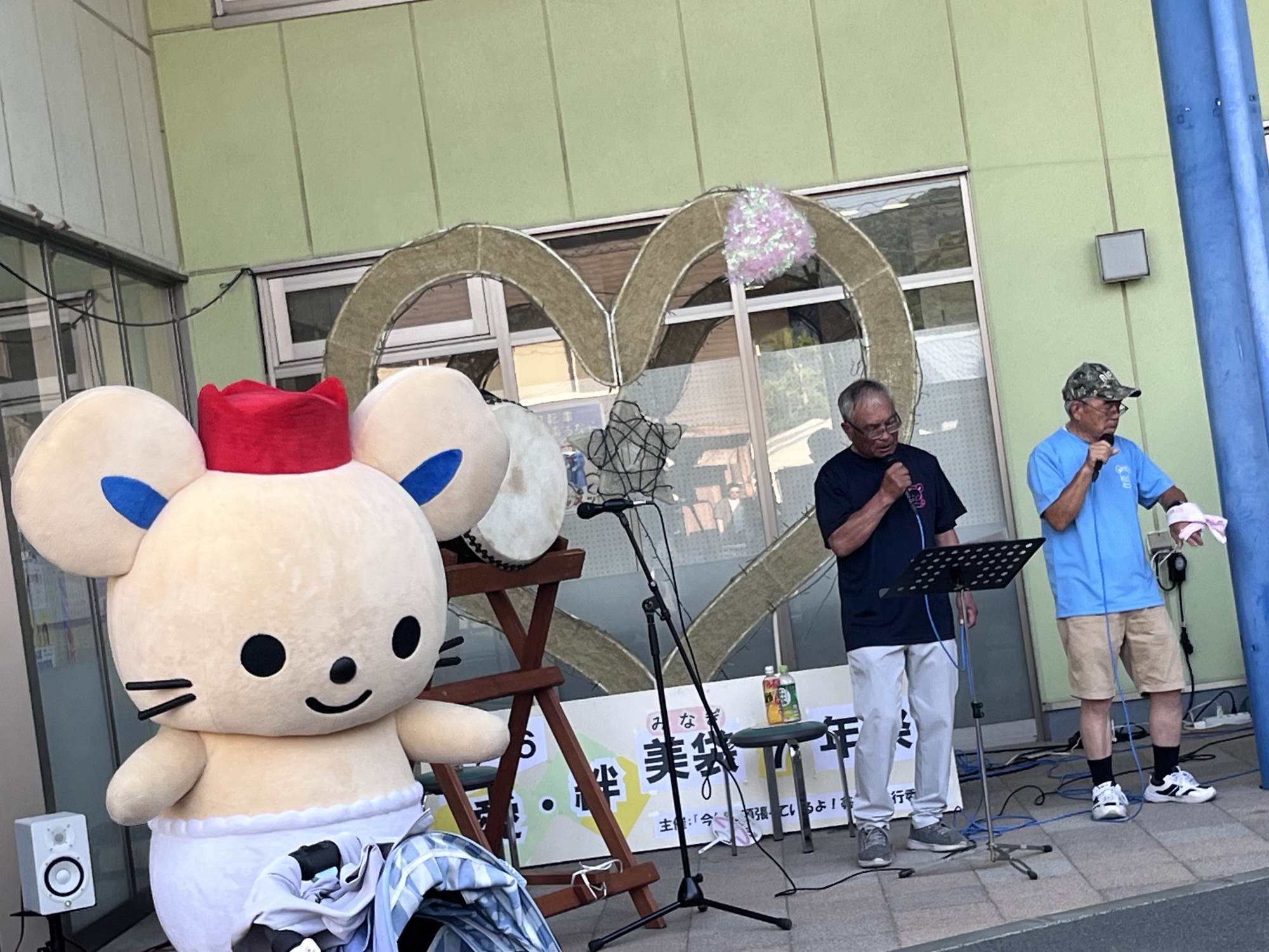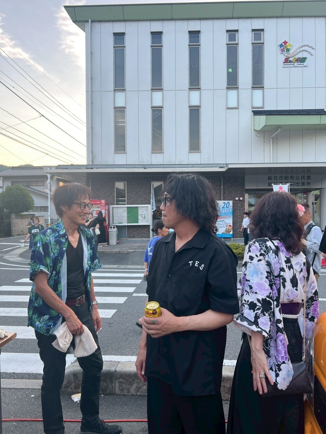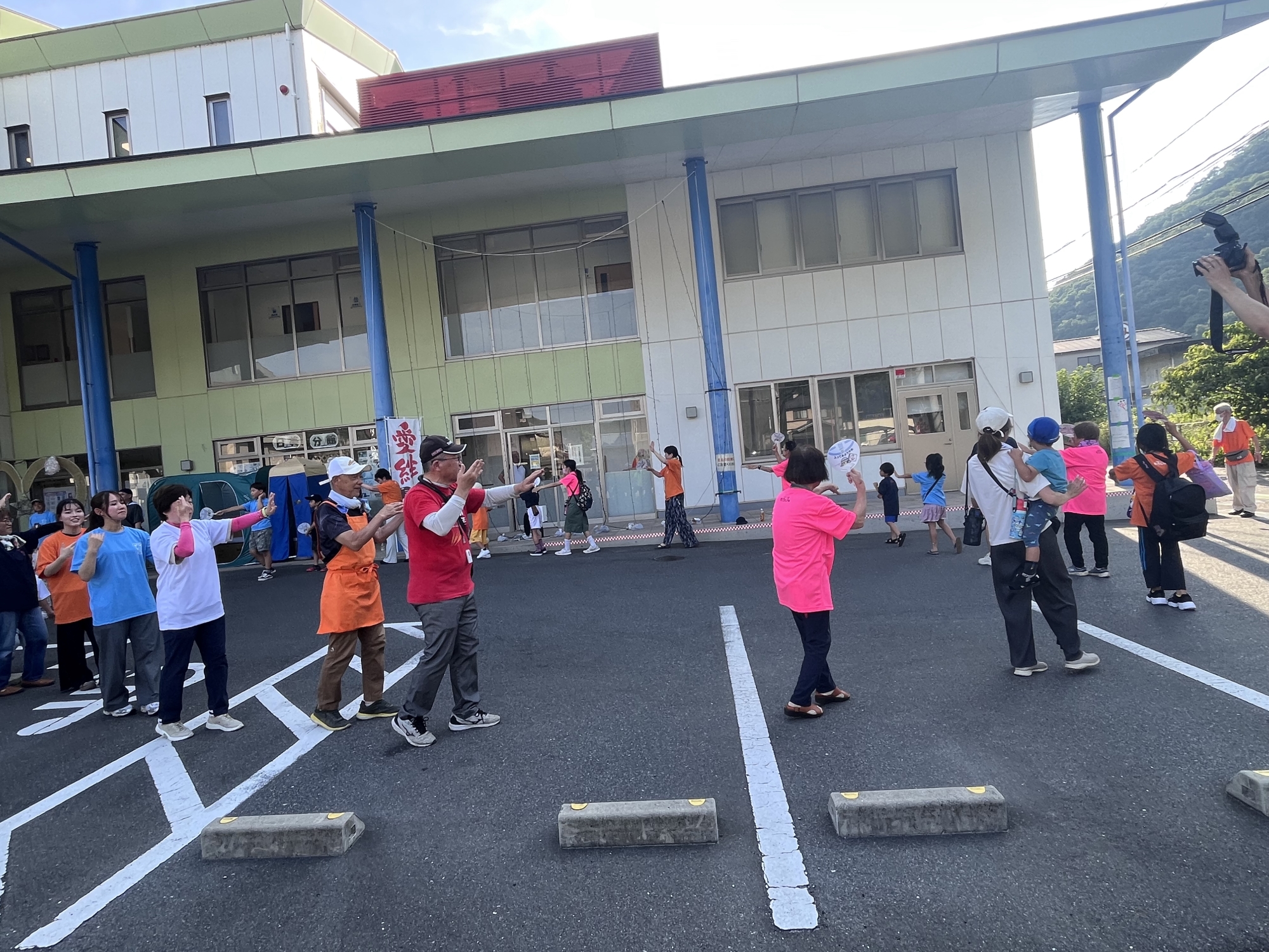 おおお、公民館の前で、チュッピーも居て、総社市の方が、盆踊り!!