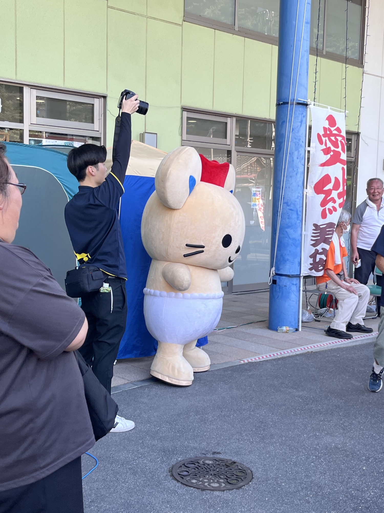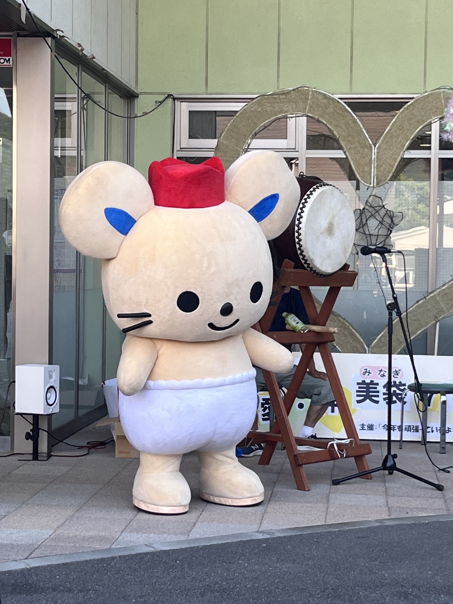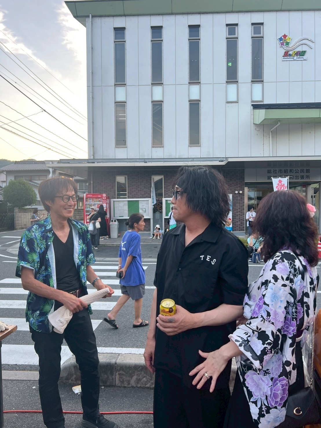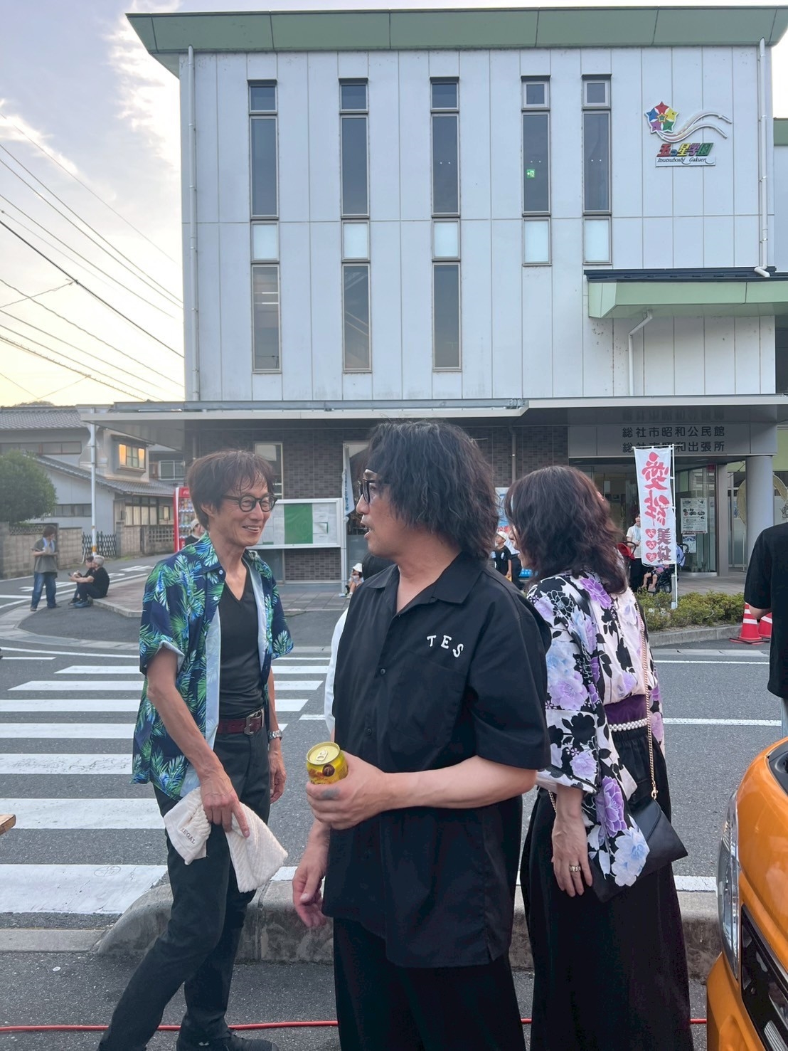 おおお、公民館の前で、チュッピーも居て、総社市の方が、盆踊り!!