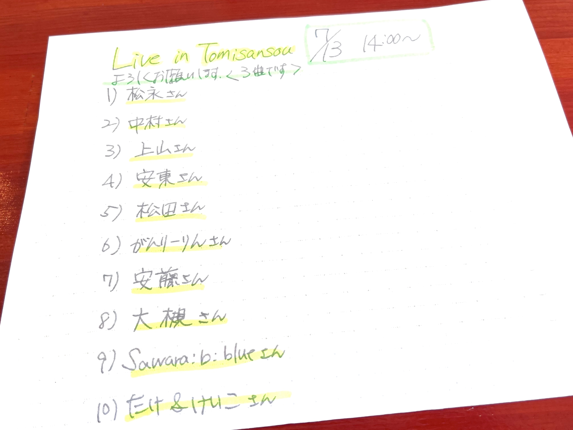 今日はとみ山荘での、Summer LIve in Tomi_Sansou です.