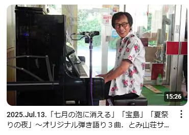 そして、セットリストは、いずれも作詞作曲で、3曲 ①「七月の泡に消える」 ②「宝島」 ③「夏祭りの夜」.
