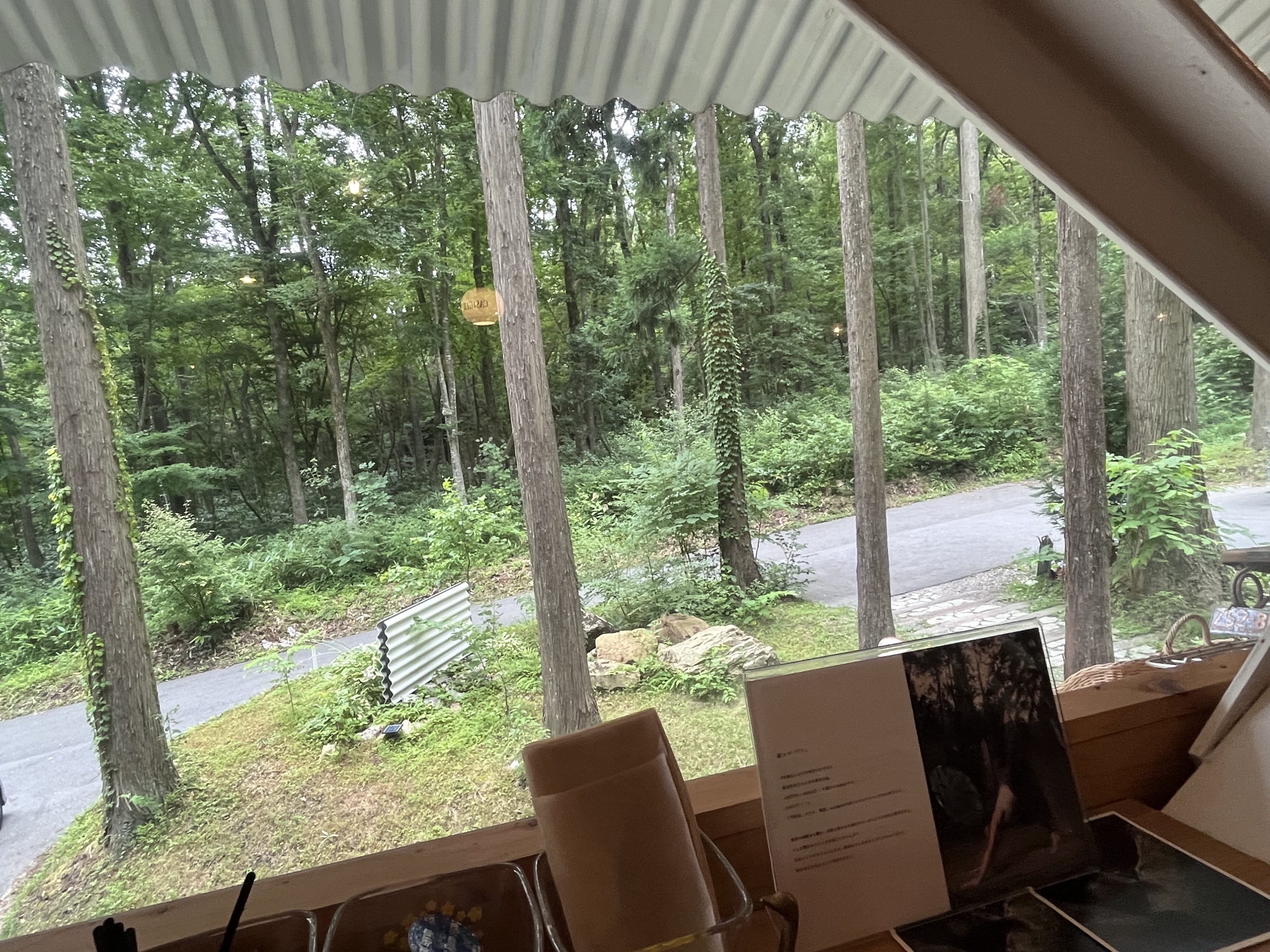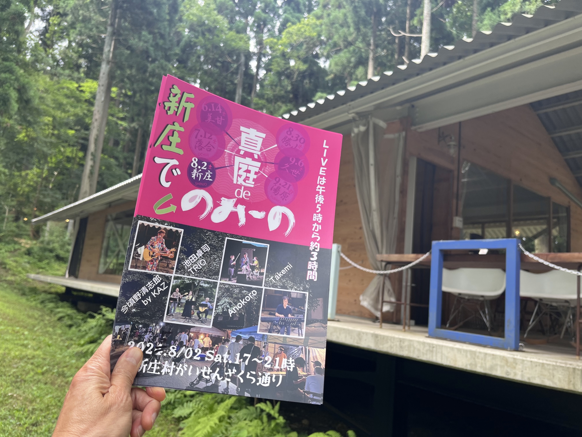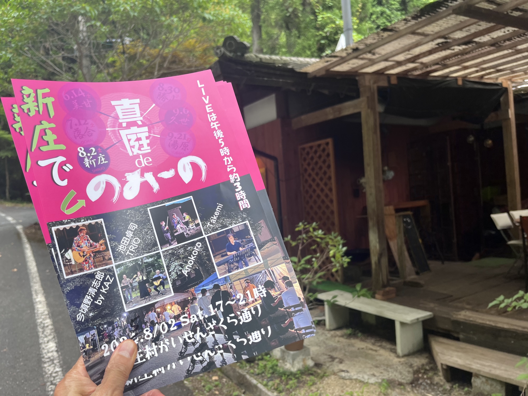8月2日の「新庄deのみ〜の」のLIVEのチラシ配布ツアー.先ずは“森の中の喫茶とお宿もりくらす”さん.ありがとうございます.