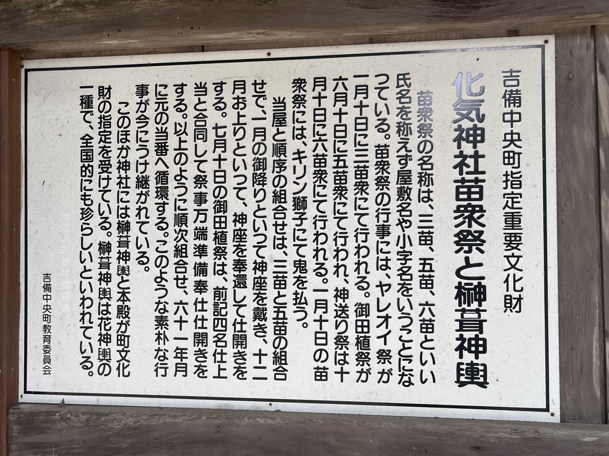 【化氣神社:由緒:当社は備前国津高郡上田村案田化気山鎮座。】