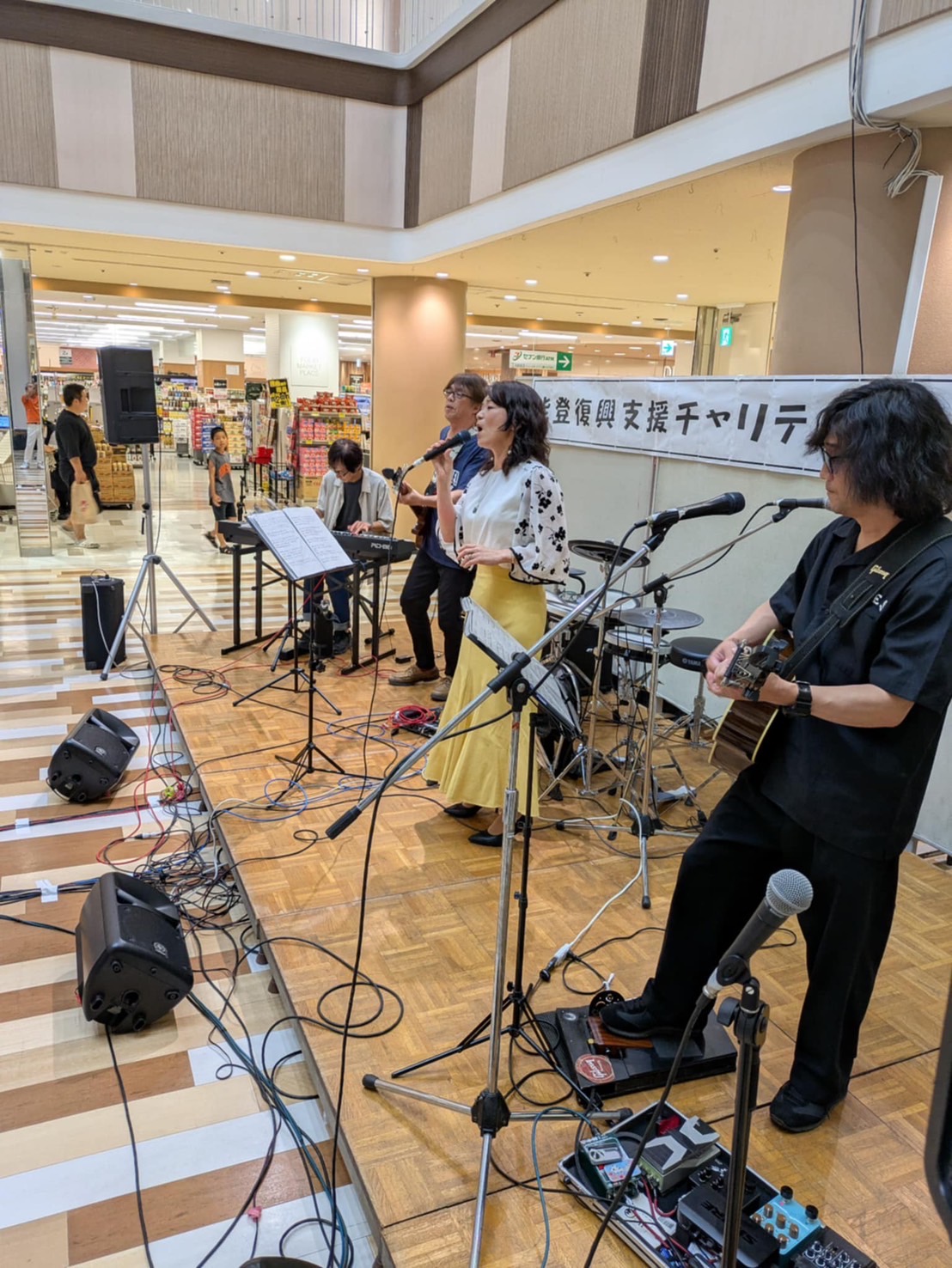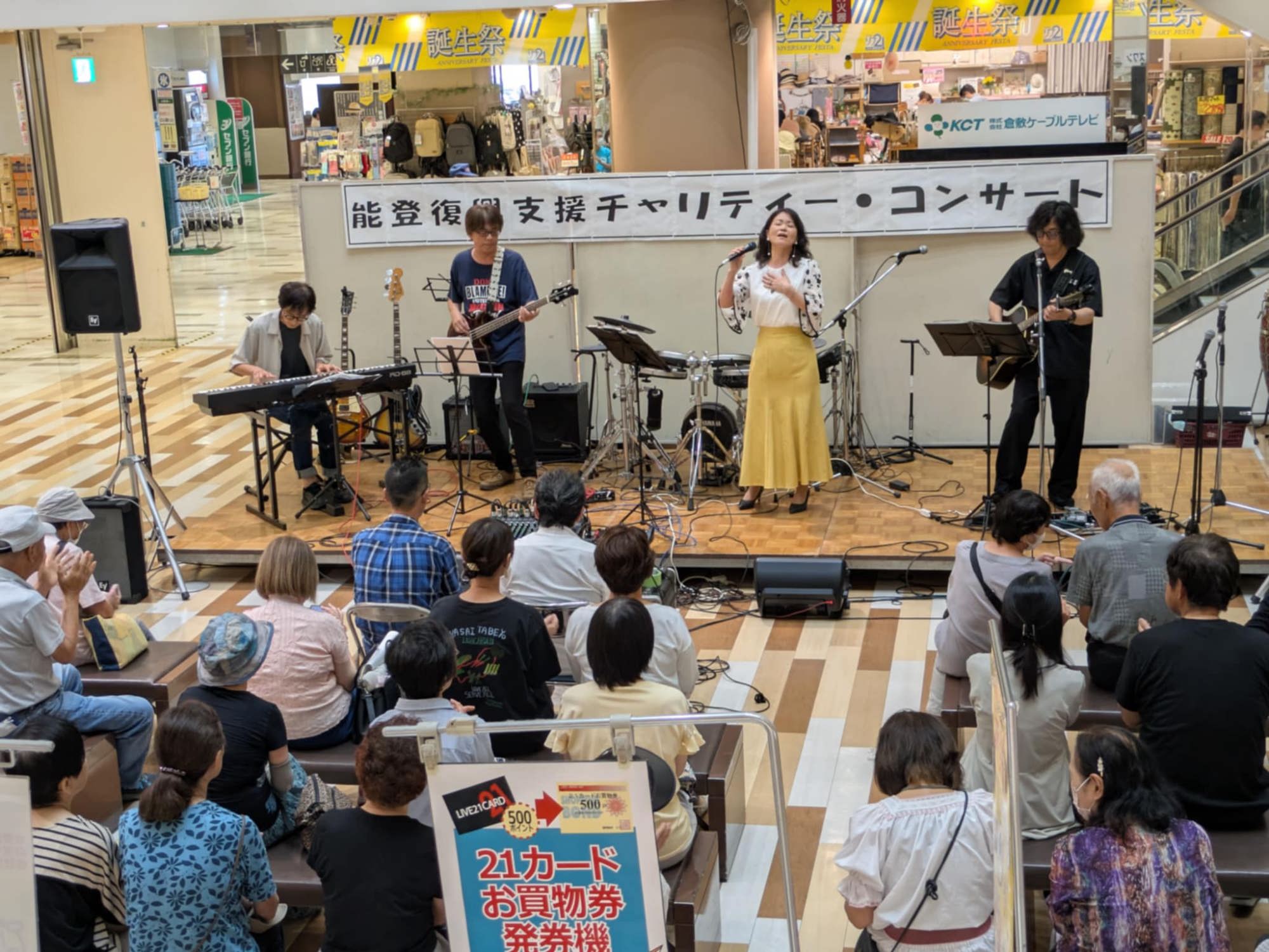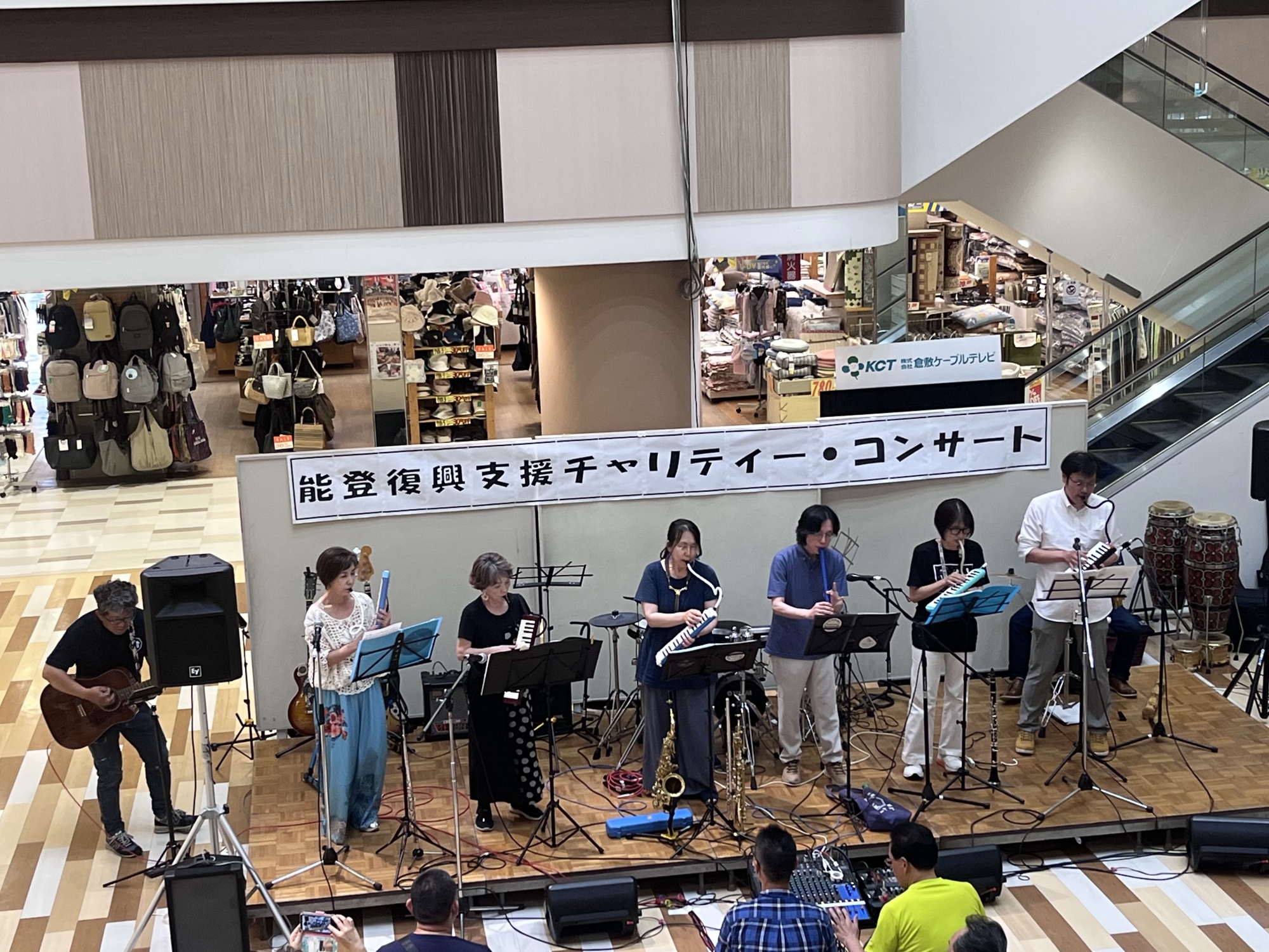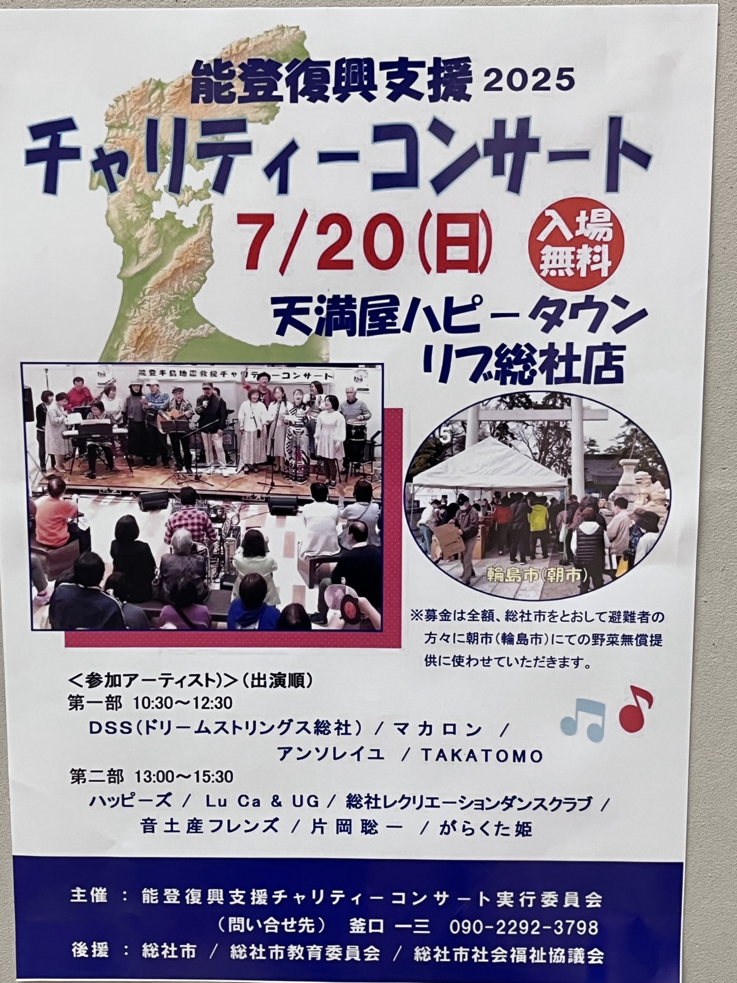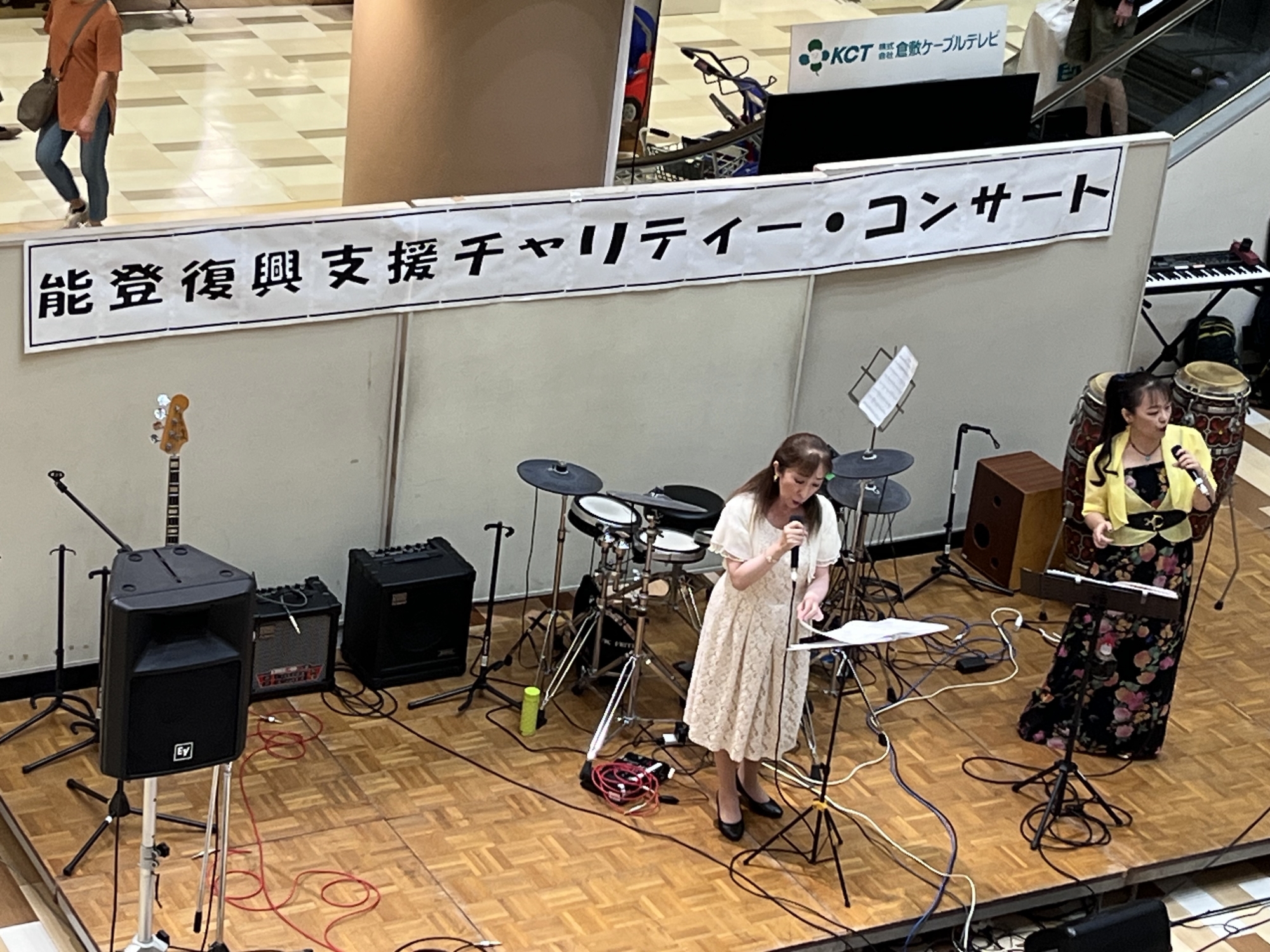 今日は総社市のハピータウン:リブ21で、能登復興支援チャリティーコンサートに Lu Ca & UG (+ Kuro-chan) で出演です.