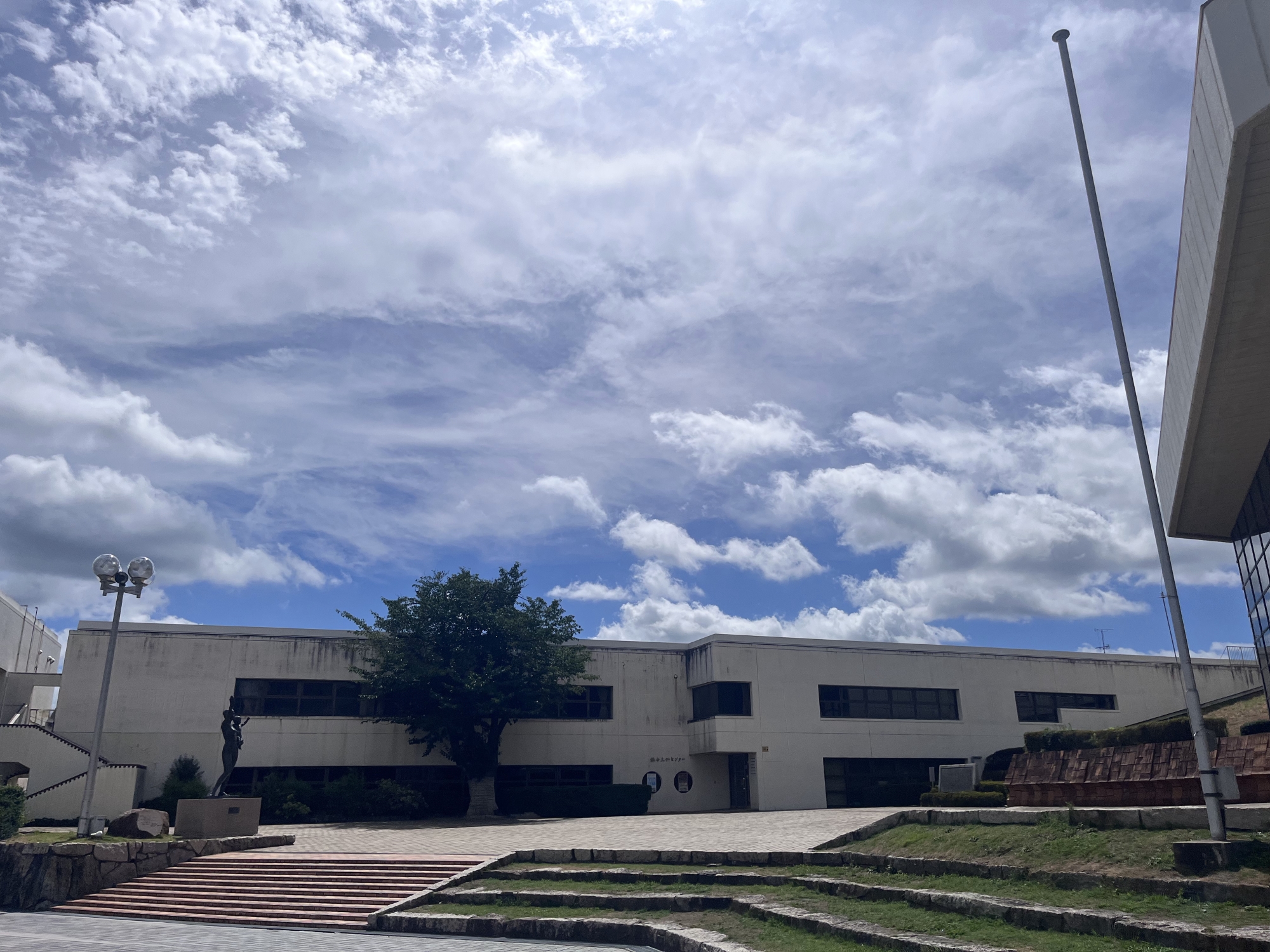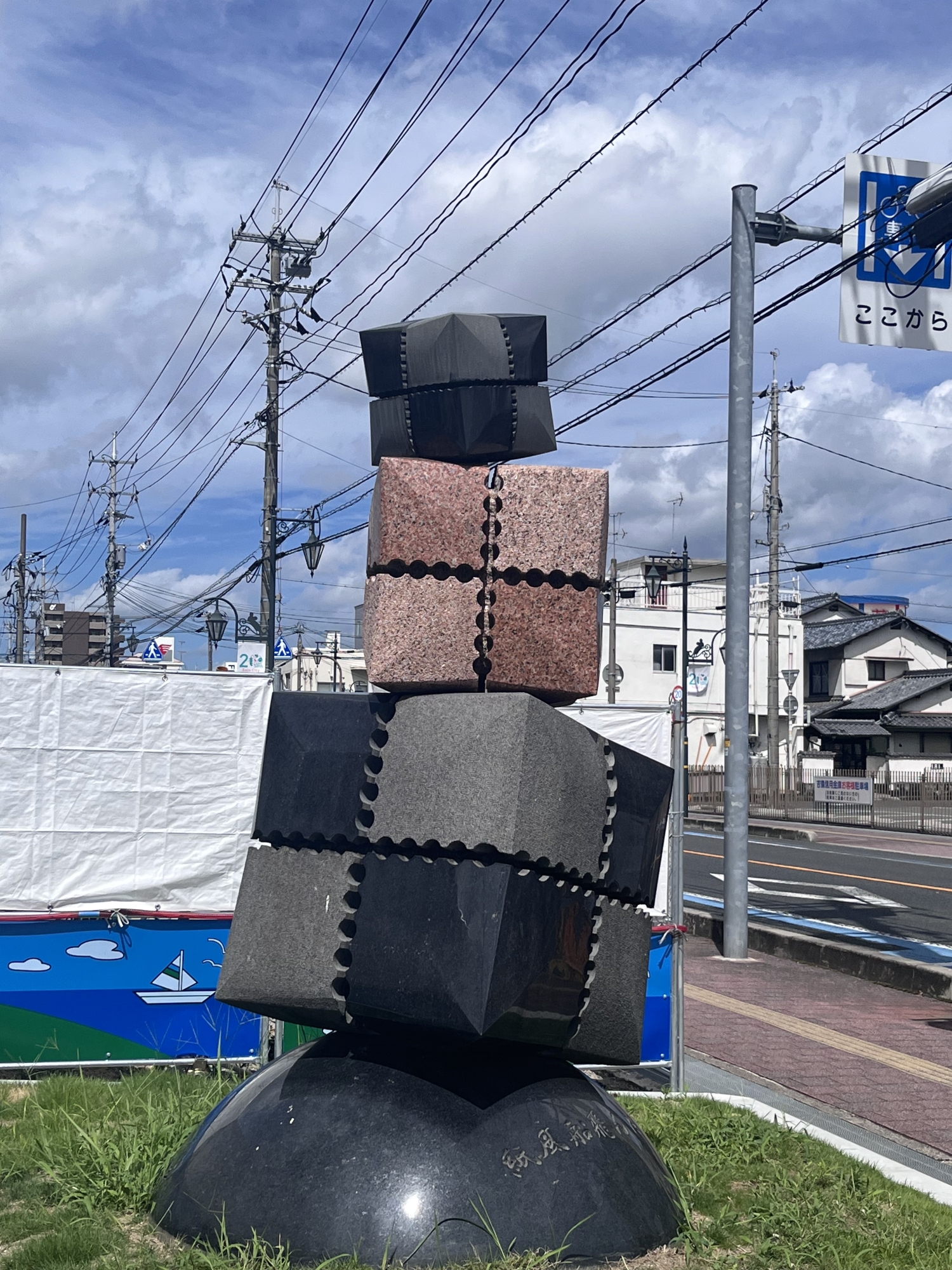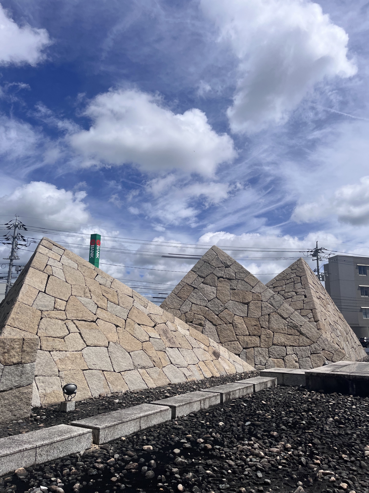 市役所の向かいの市民会館の所の三ツ山的なオブジェ.