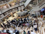 新庁舎と市役所前のオブジェ.→ 始まりました!!! 既に沢山のお客様.