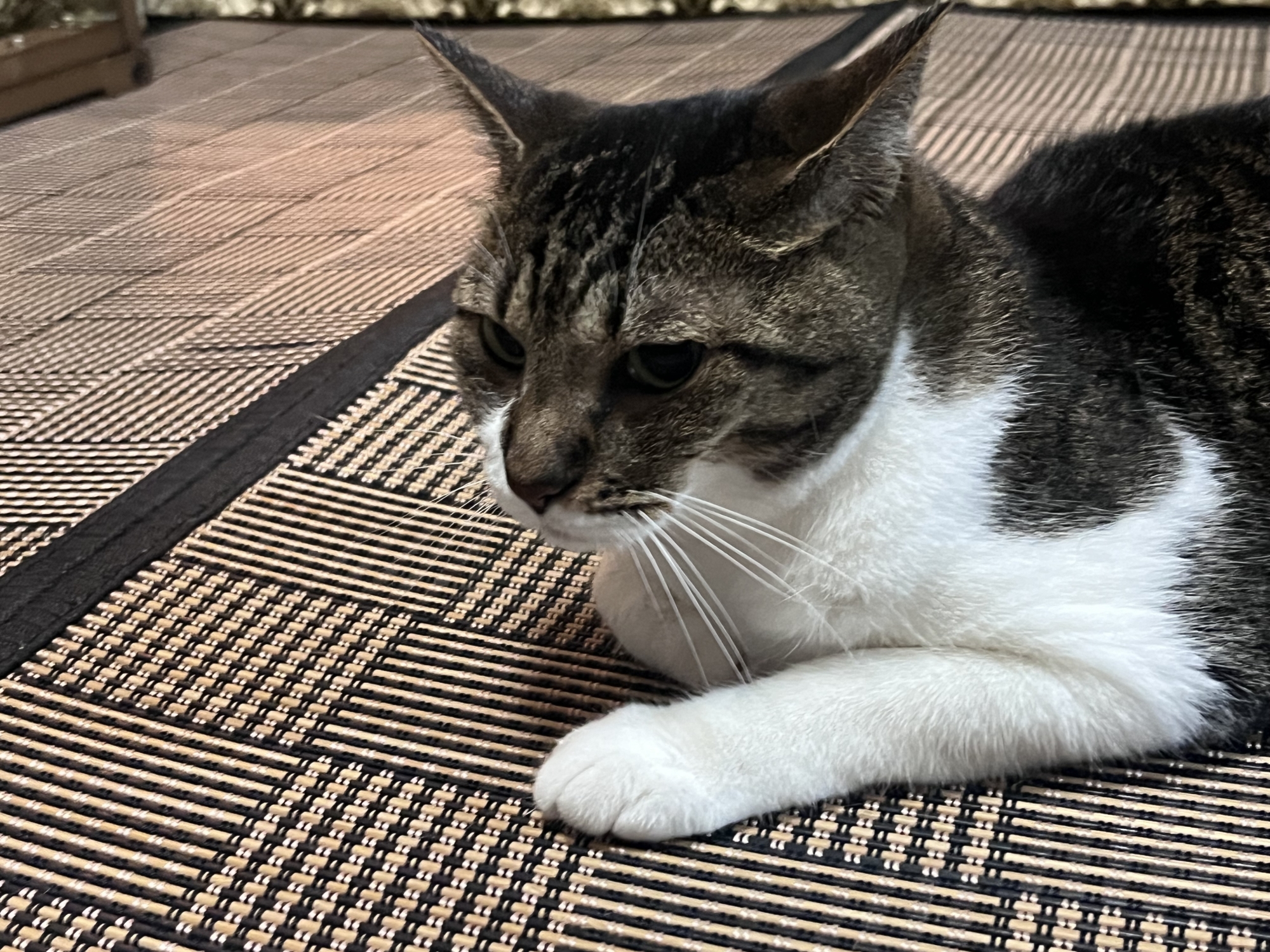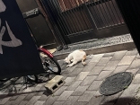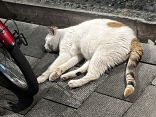帰り道の居酒屋の前に、ニャンコ、リラックス.