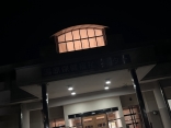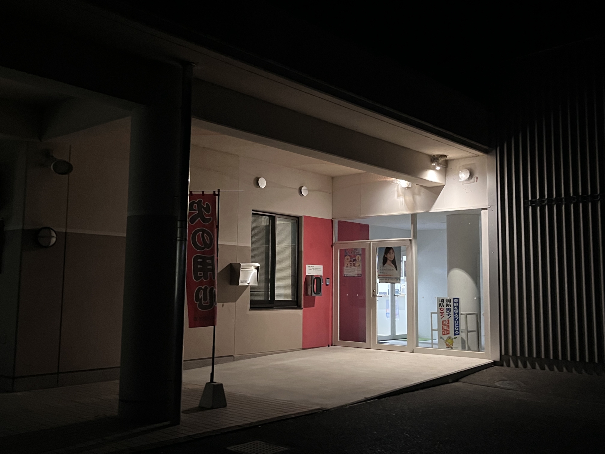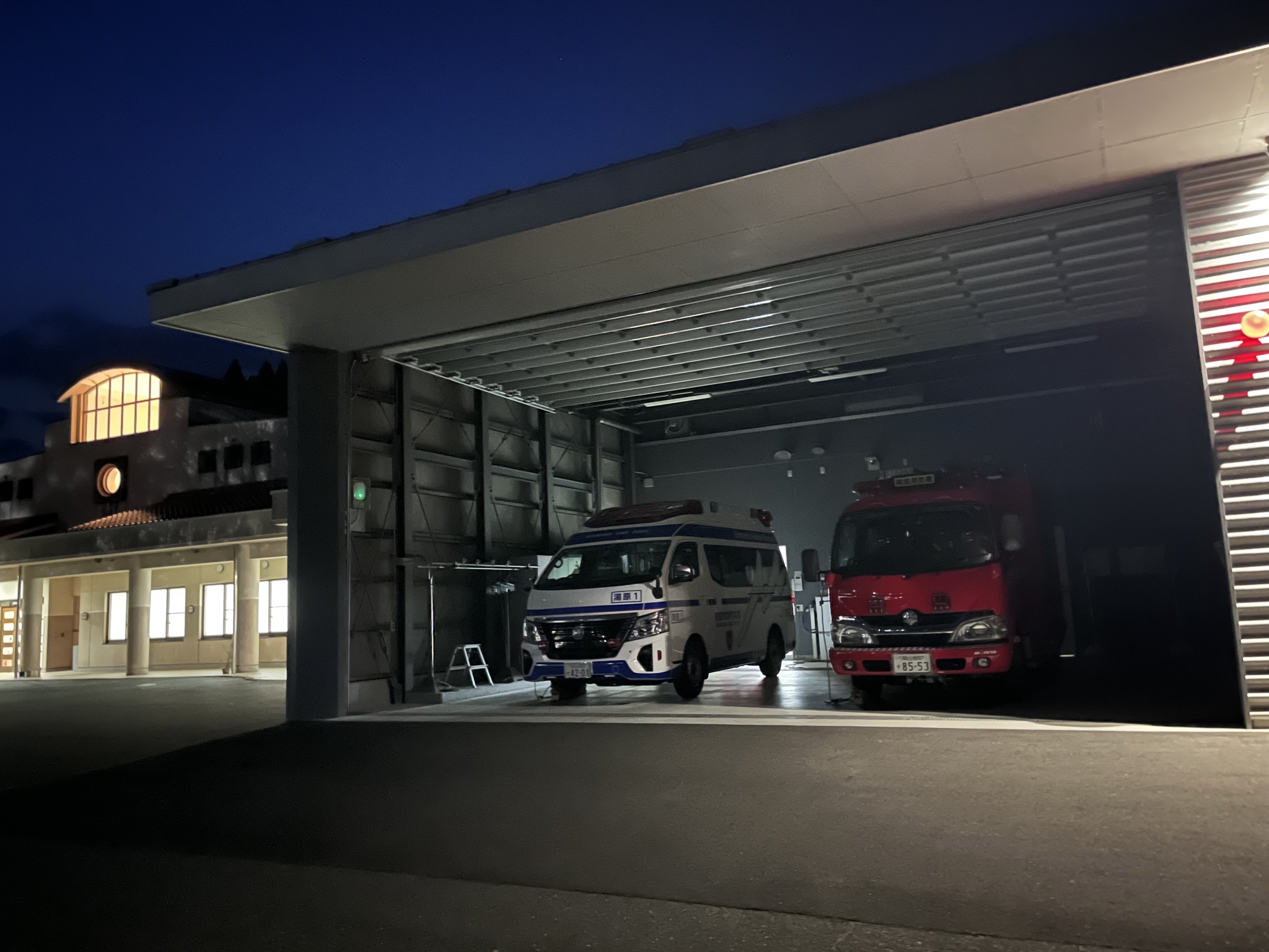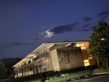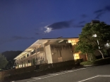 雲がちょっと掛かっている三日月でした.隣は消防署、ひまわり館. |