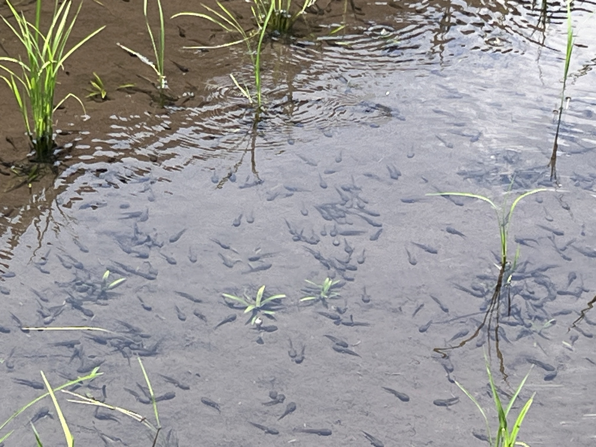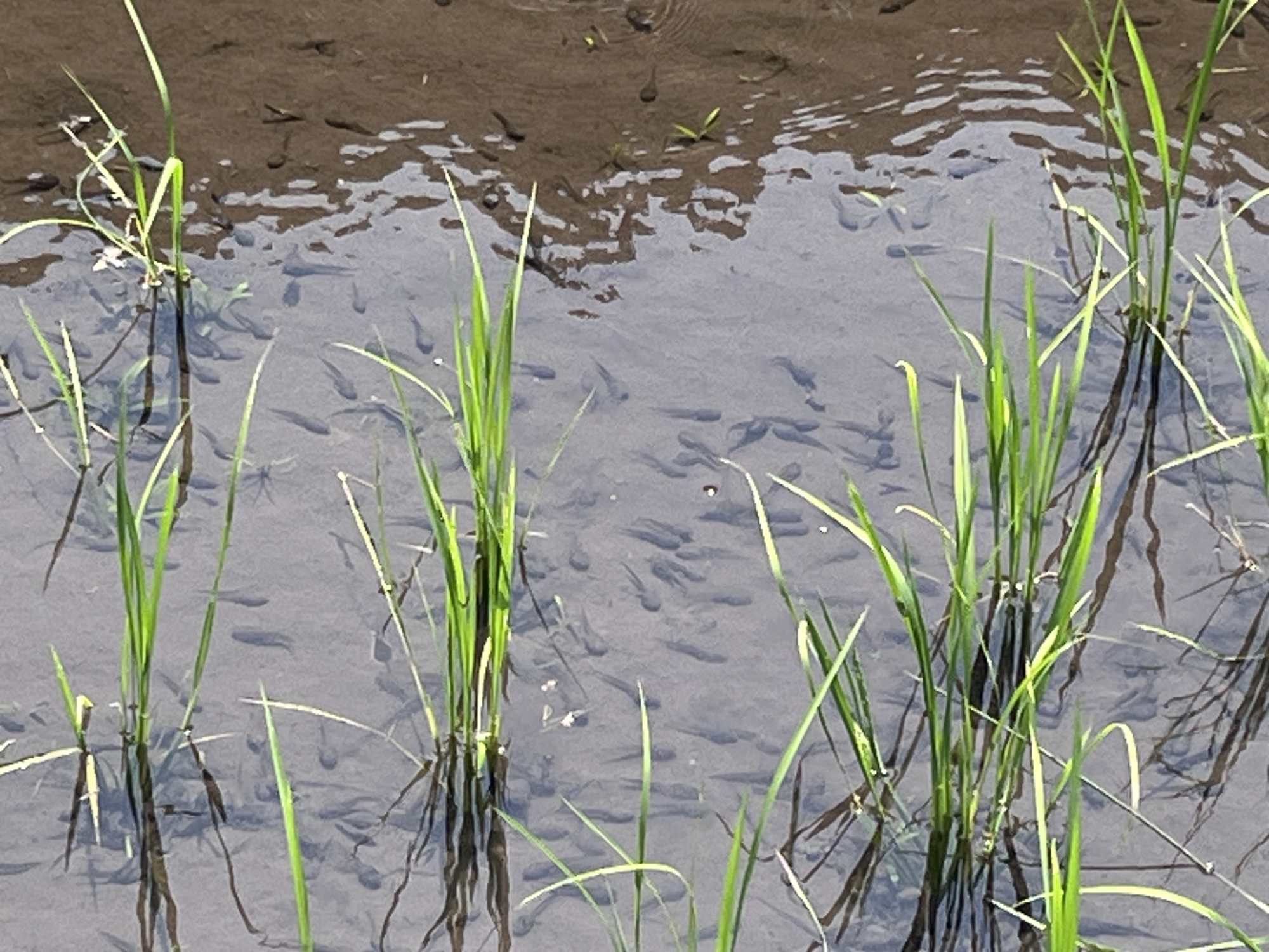 そして、オタマジャクシ~大きくなってきたなぁって思ってたら、なんだか、オタマジャクシが加えているのが、ちょっとシュールで…….