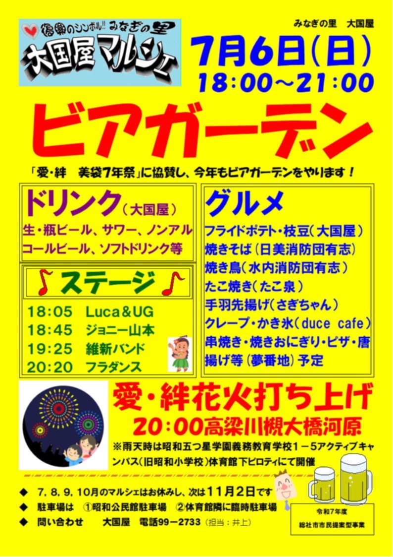 7/06:美袋大国屋マルシェ+花火・Lu Ca & UGで