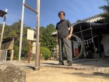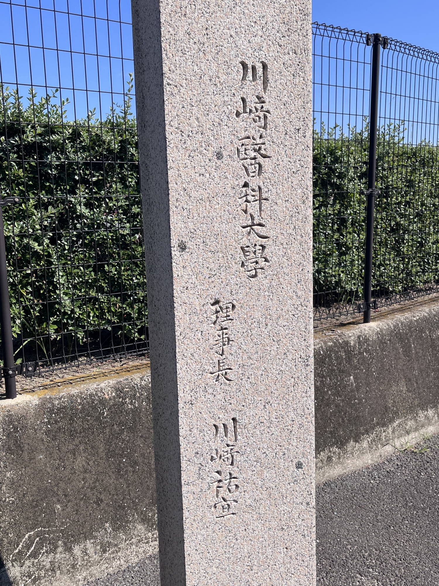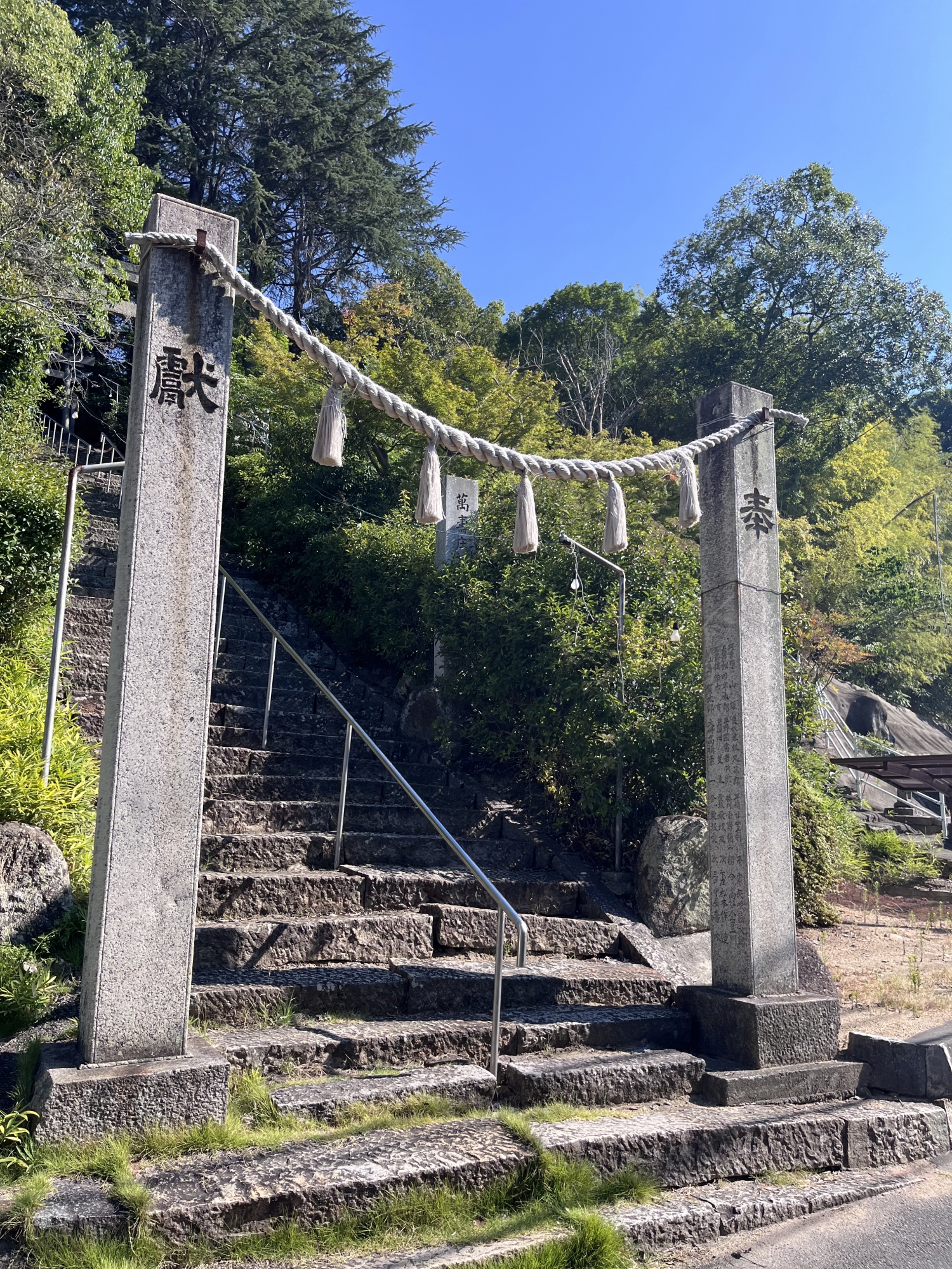 岡(その昔は「松島」という島、吉備の穴海の頃)の南側から、兩児神社.車の道から降りていくと、市道かな、入り口の社号票.なんと、川崎祐宣先生(創設者)が、建てられた様です.
