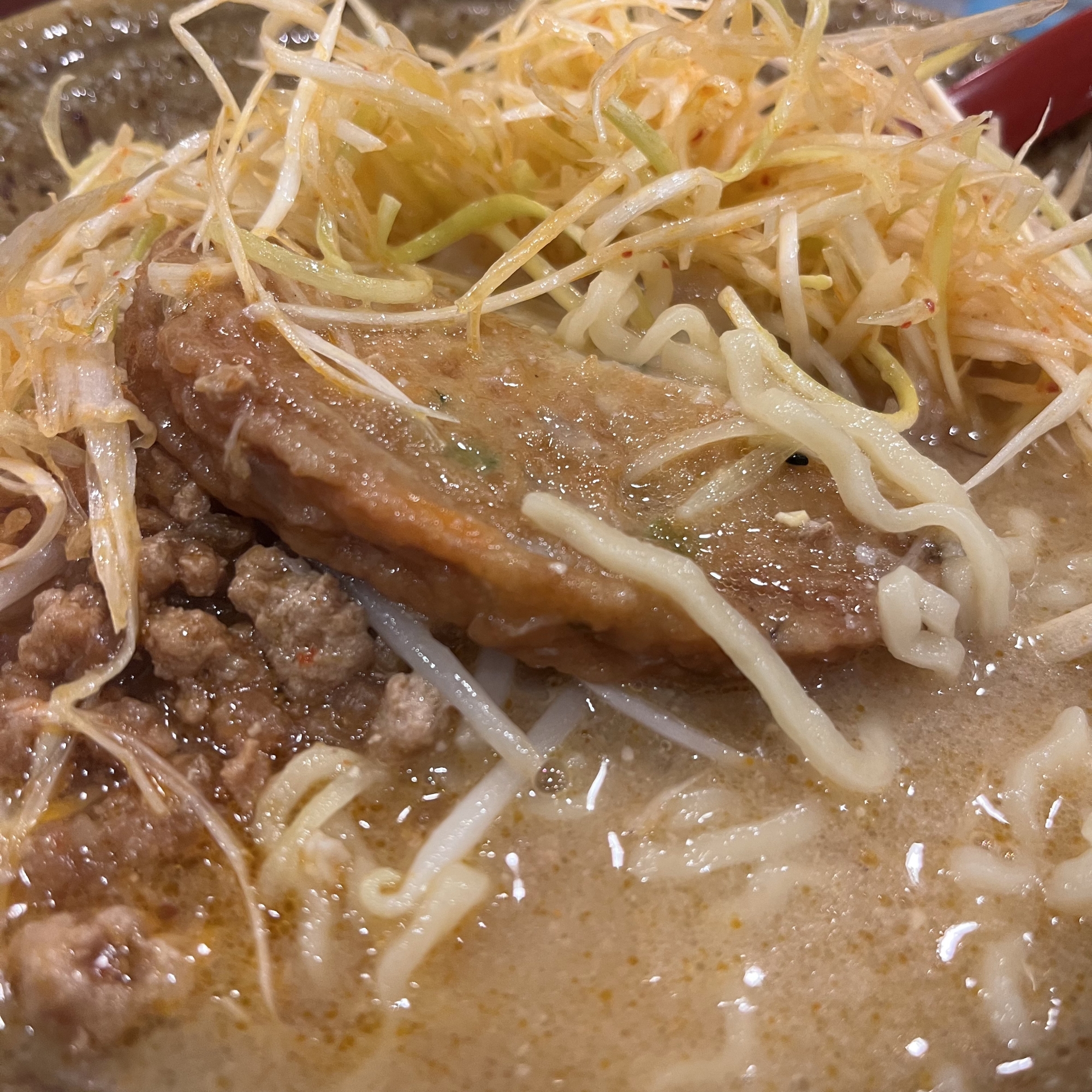 庭瀬の田所商店で、九州甘味噌~肉ネギ拉麺です.