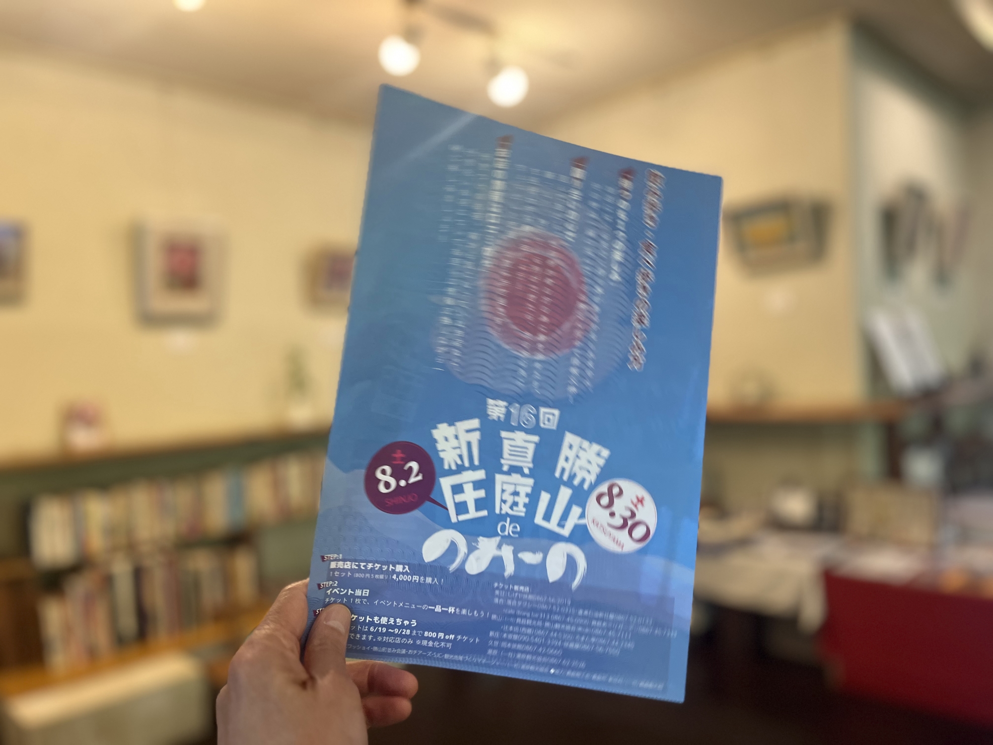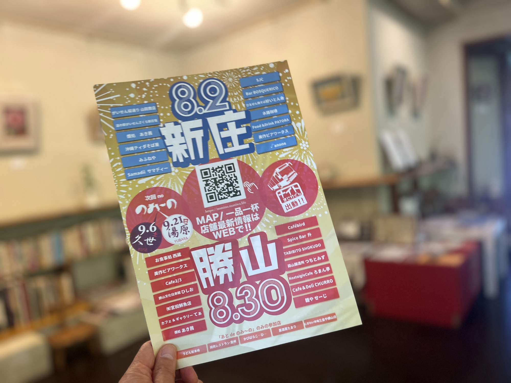 ついでに、「のみ〜の」の八月分(二日の新庄、三十日の勝山)のみのチラシがありました.新庄村での「のみ〜の」では、ゲストもたくさんお招きしてLIVEを実施しました.勝山では、参加店舗のひとつ「勝山文化往来館ひしお」で、音楽担当します.ジャズ・スタンドや和洋のポップスなどのピアノサウンドと、少しだけ、オリジナル中心のオシャレっぽい(つもりの)弾き語りも、予定しています.是非、足をお運び下さい.