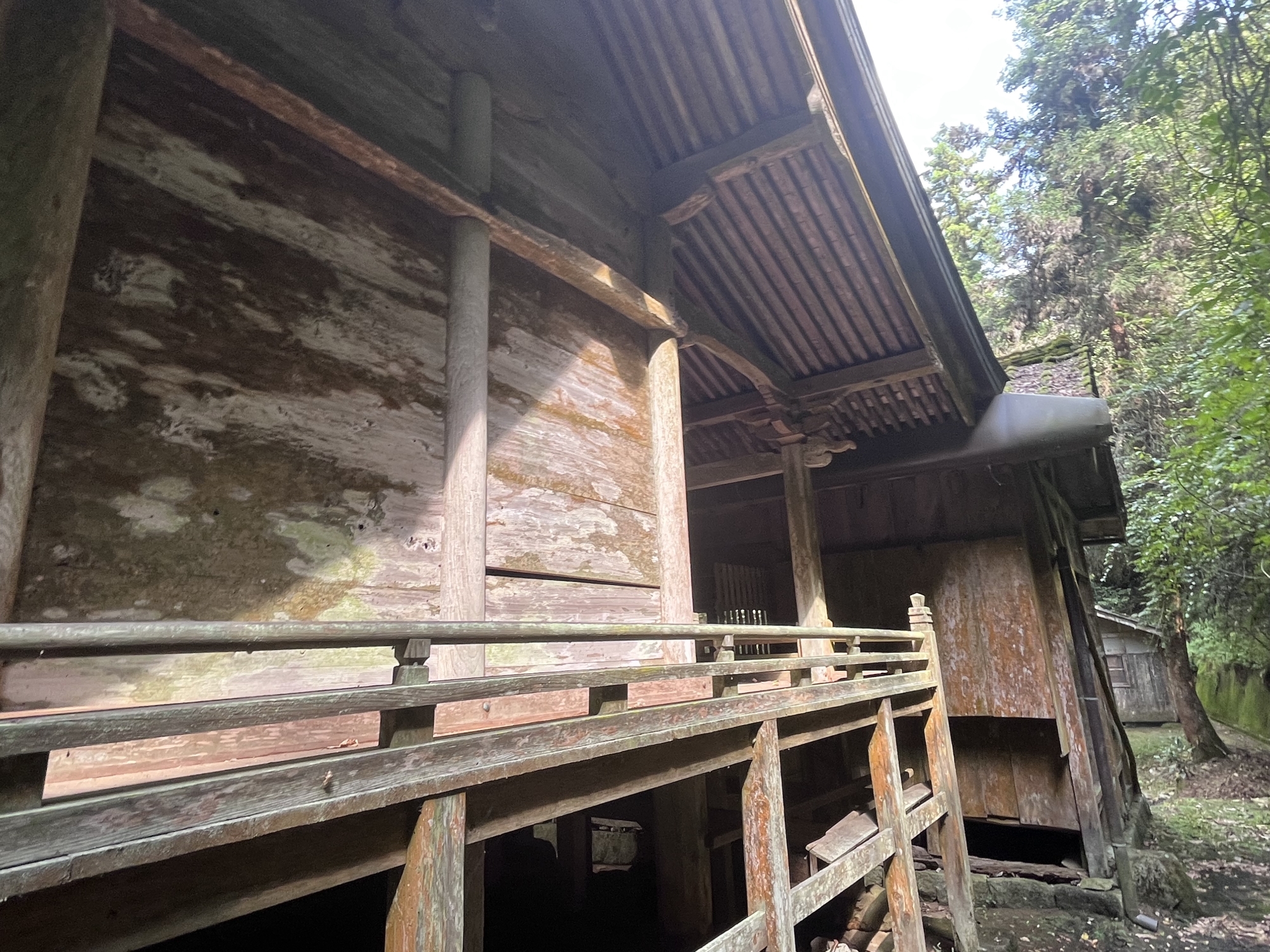 苔むして、叢になっている参道から藪の中に入り込むような所に、古い拝殿・本殿がありました.