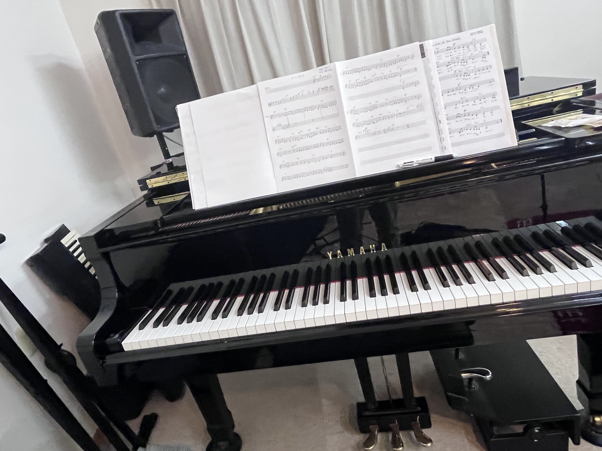 【来たるOct.13. = スポーツの日に岡山県南部健康づくりセンター『健康フェスタ2025』イベント”Bonne Femme” (女性ソロ&コーラスのグループ)が出演.そのピアノサポートをする予定.かつ、一曲、ソロを頂いてカバーで「蘇州夜曲」今日(8/17)は2回目の練習日でした.】