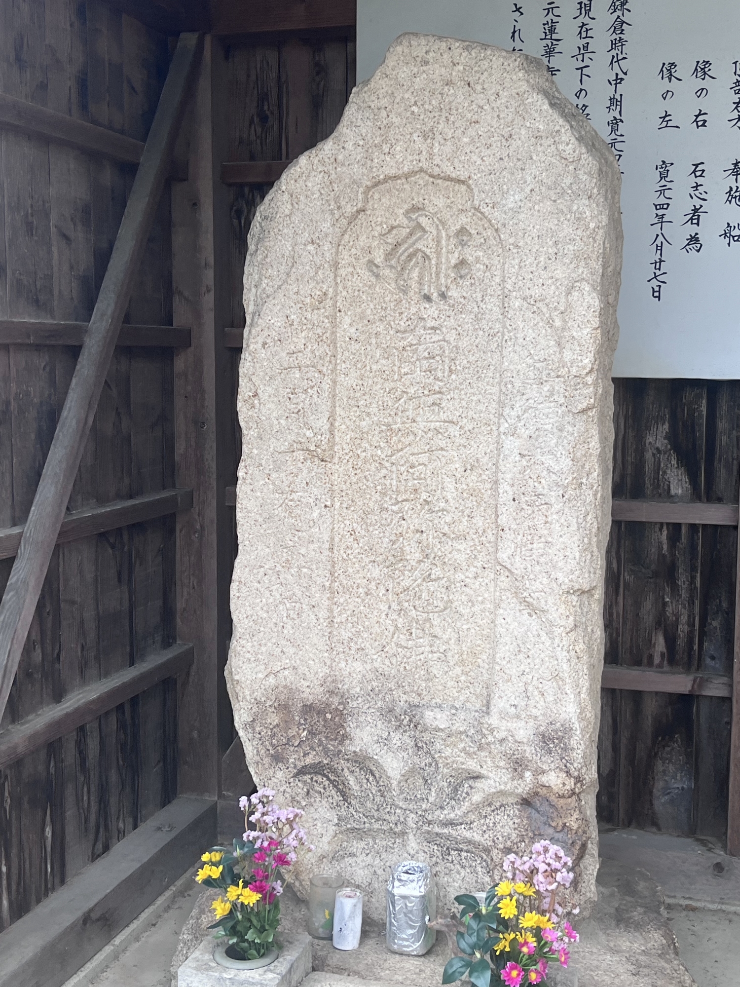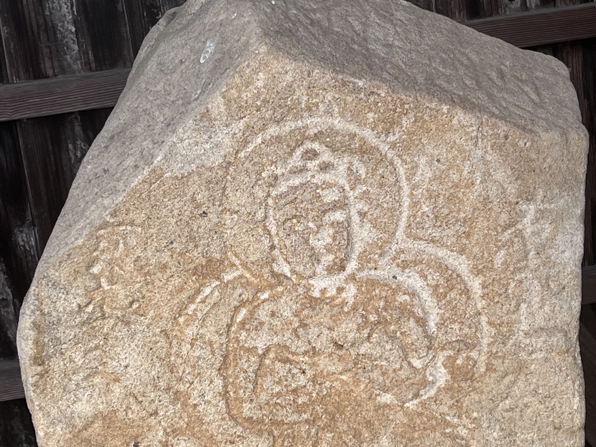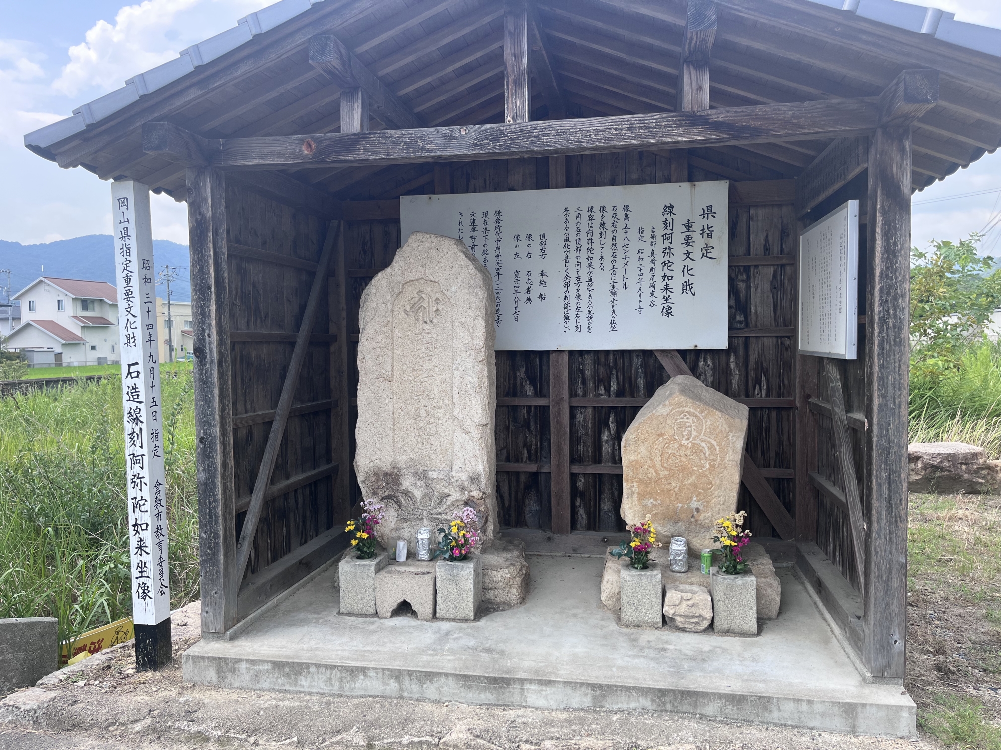 ただ、その細い道の所に石造線刻阿弥陀如来坐像.県の重要文化財とのこと.
