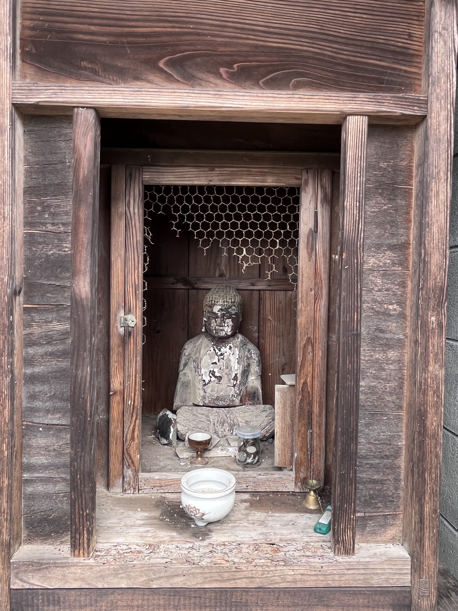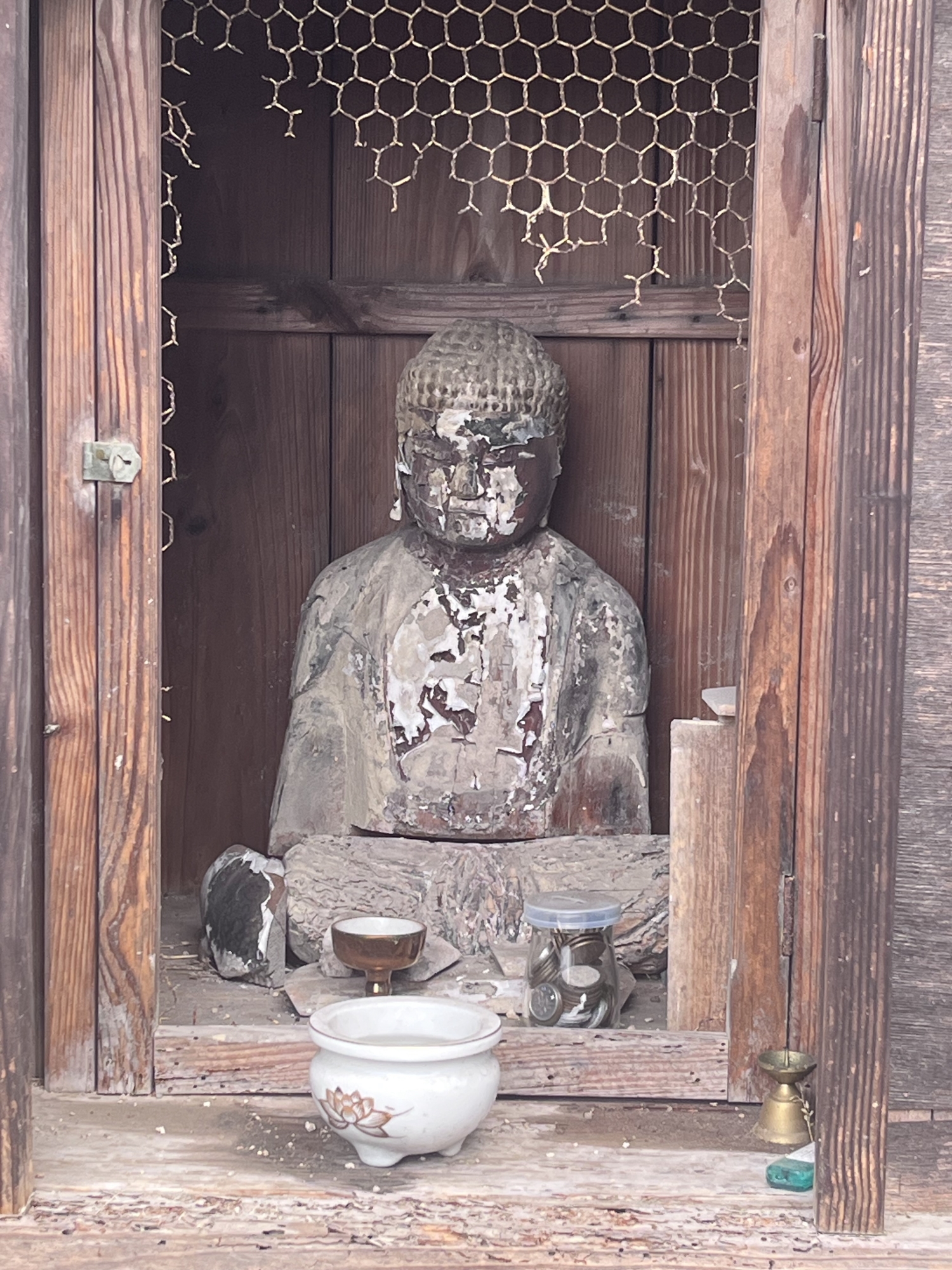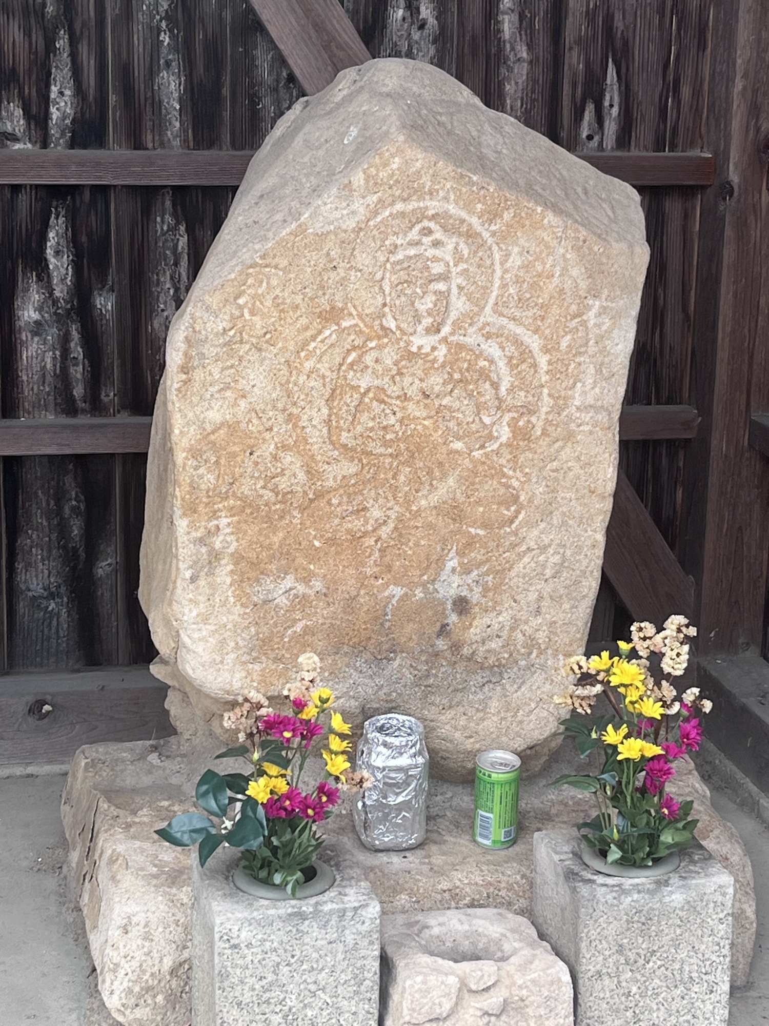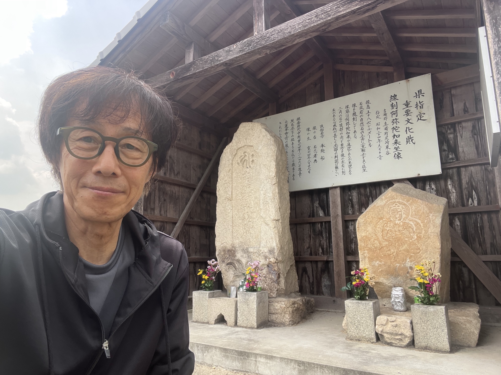 ただ、その細い道の所に石造線刻阿弥陀如来坐像.県の重要文化財とのこと.